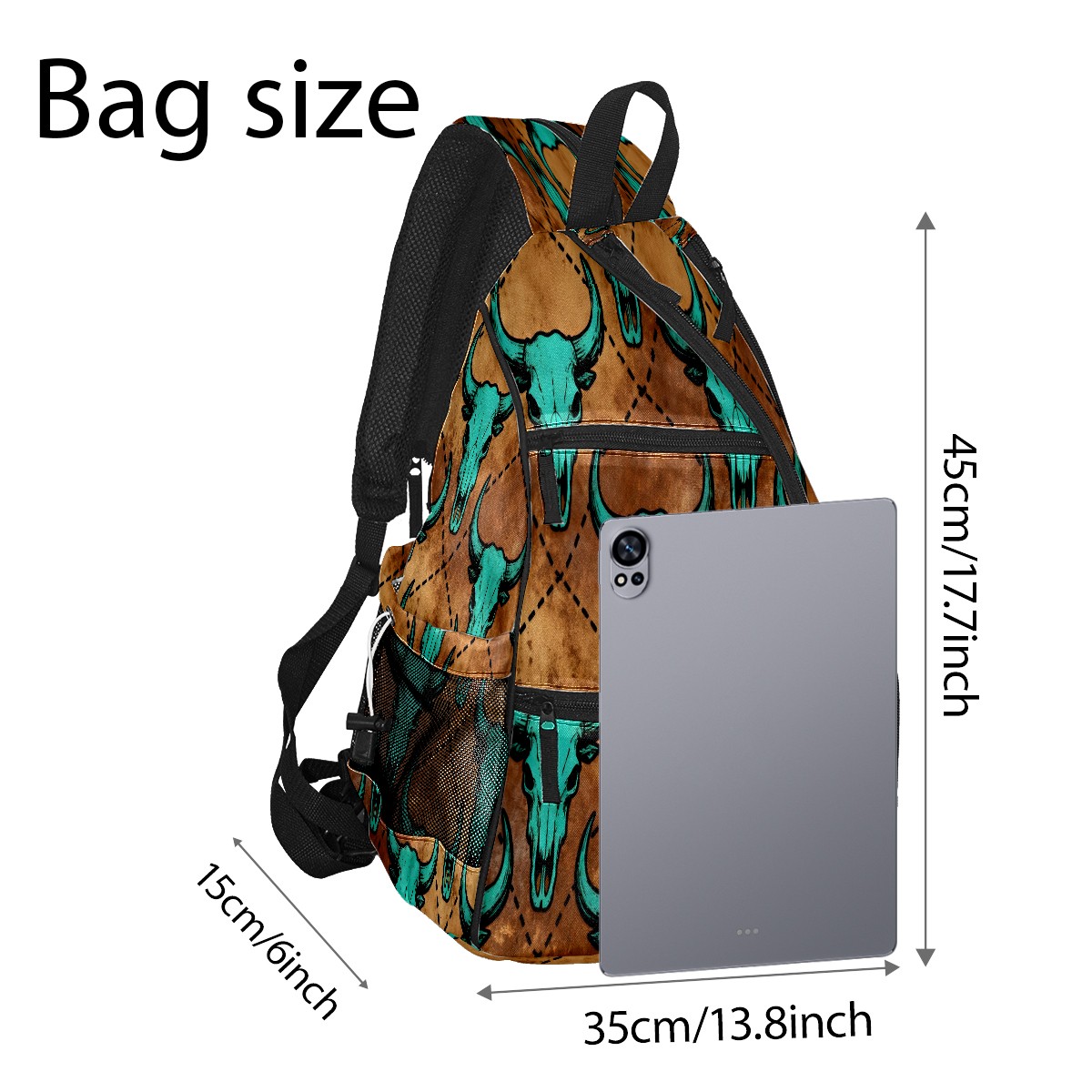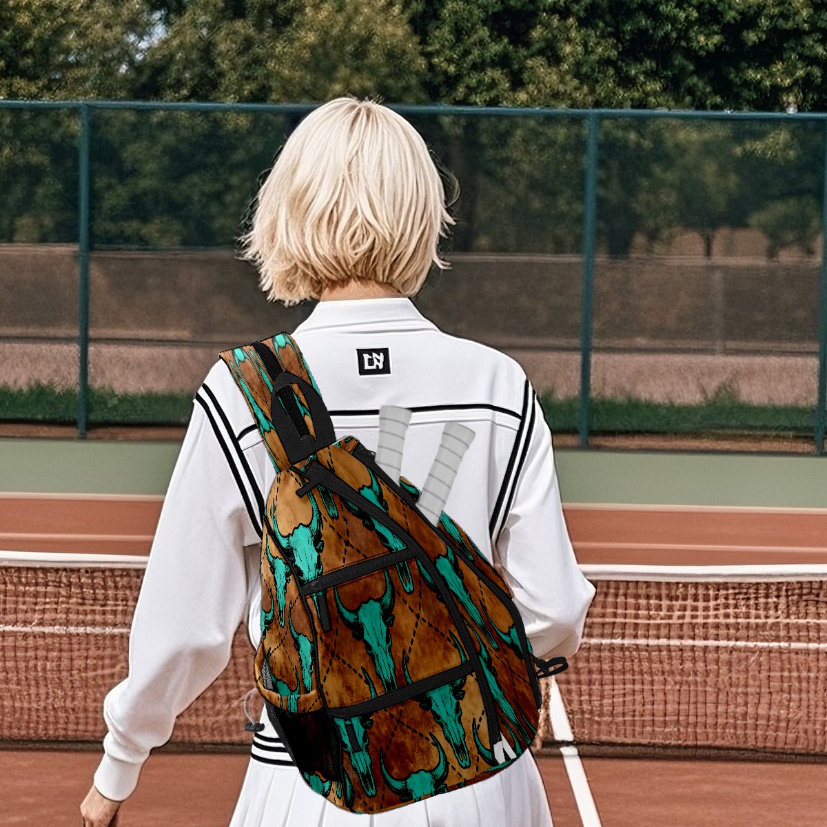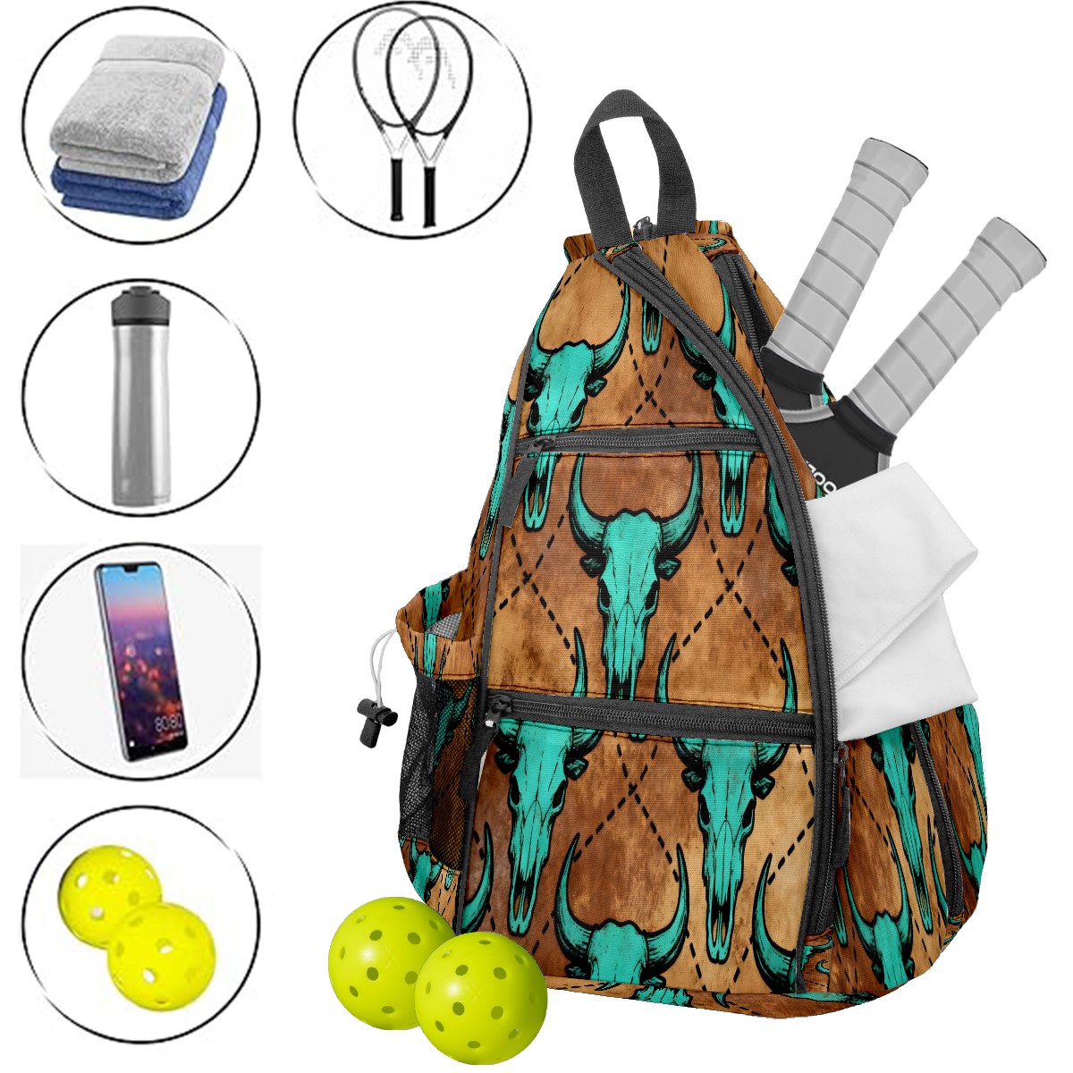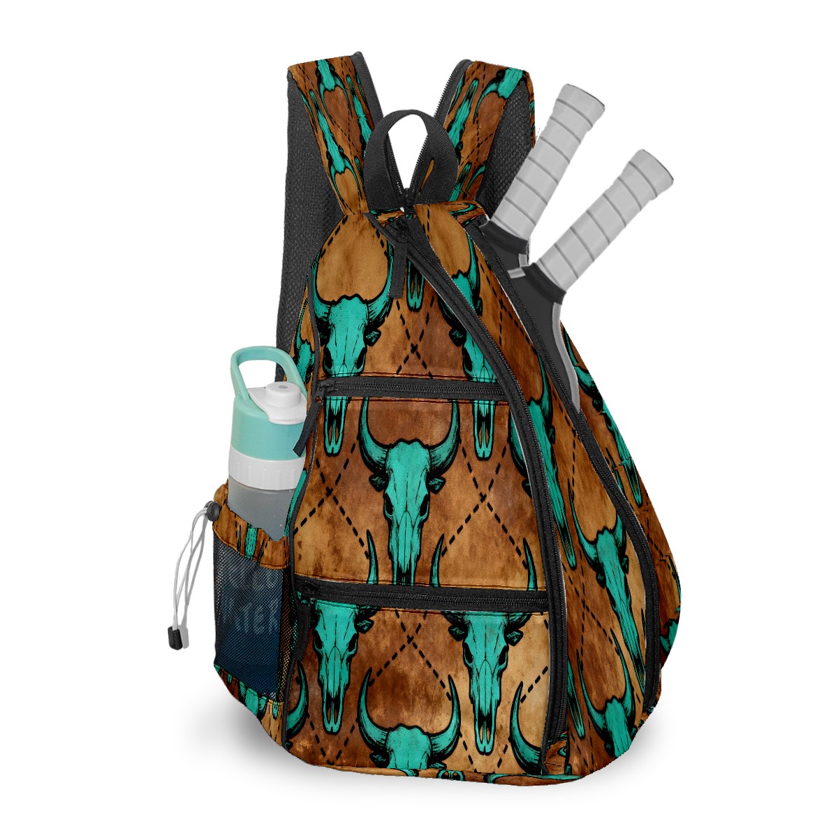 Print Pickleball Backpack Brown Bull Skulls | Padded 6-Paddle Compartment & Separate Shoe Bag | Multi-Pocket Sports & Gym Backpack for Tennis, Travel, Commute