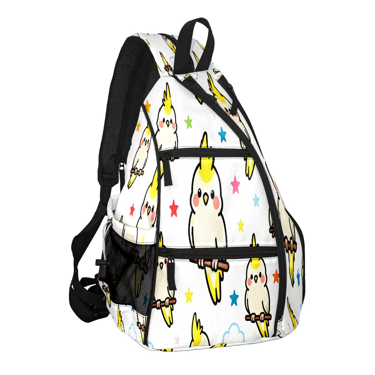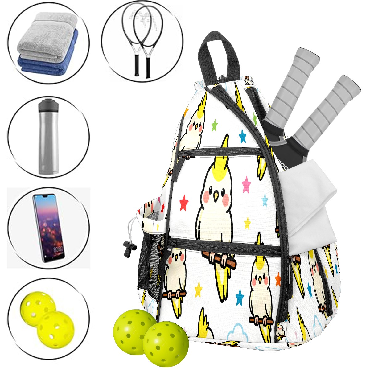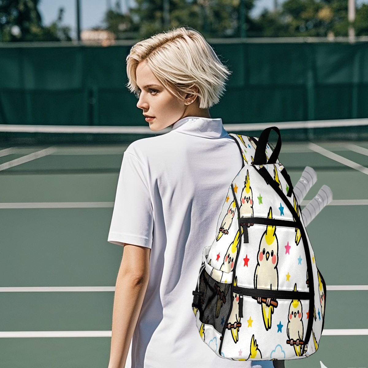 Print Pickleball Backpack White Parrots | Padded 6-Paddle Compartment & Separate Shoe Bag | Multi-Pocket Sports & Gym Backpack for Tennis, Travel, Commute