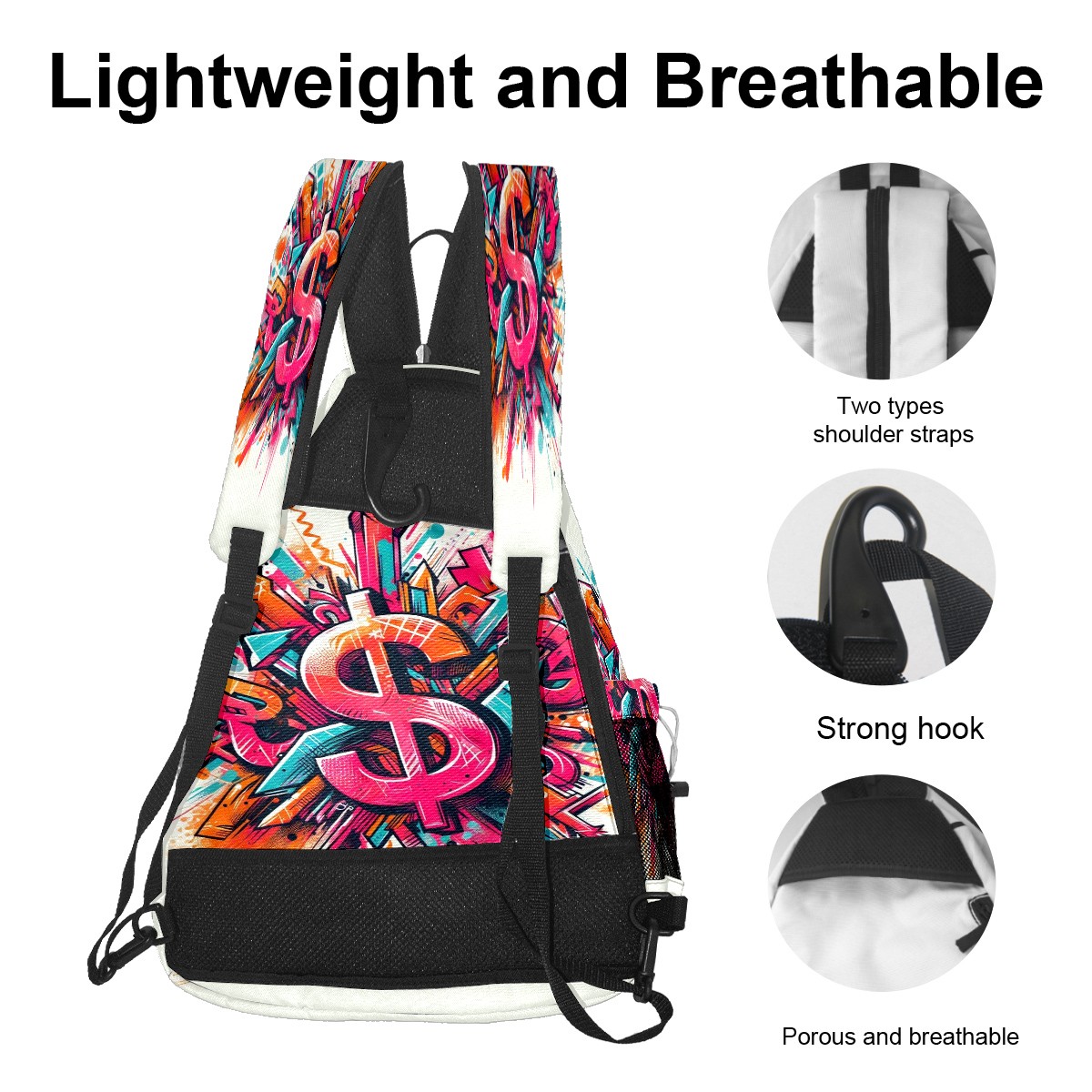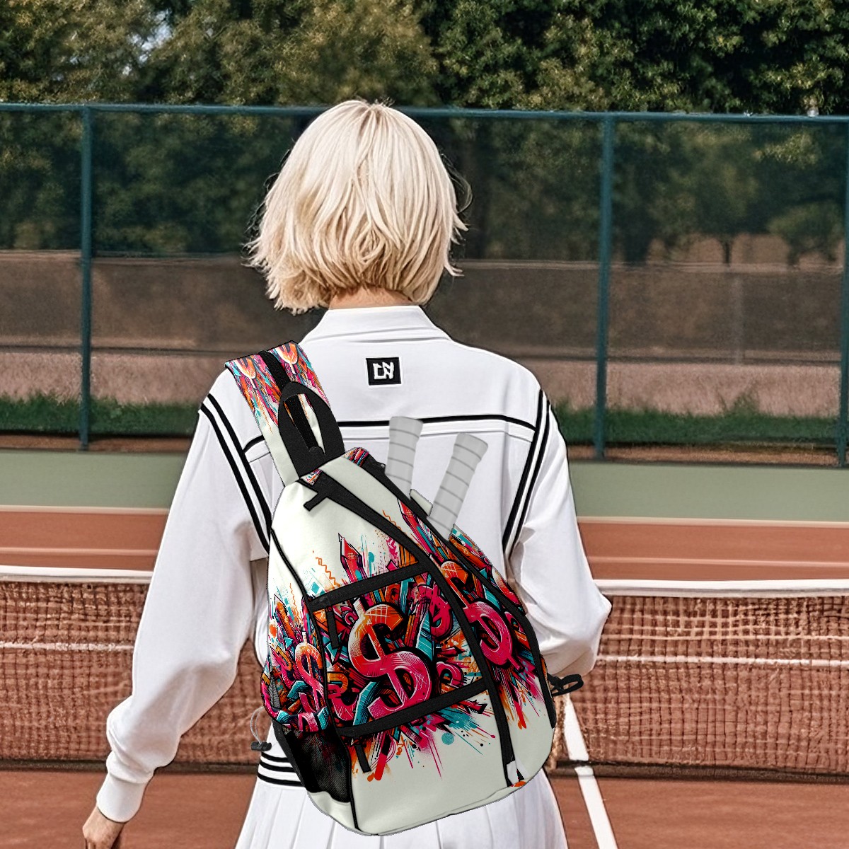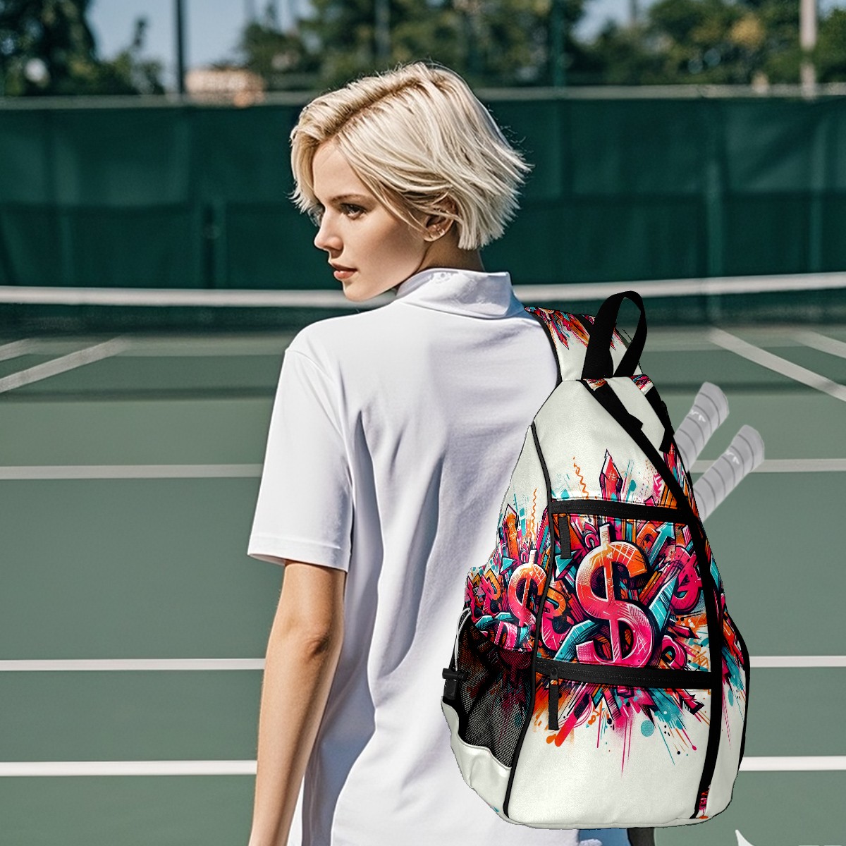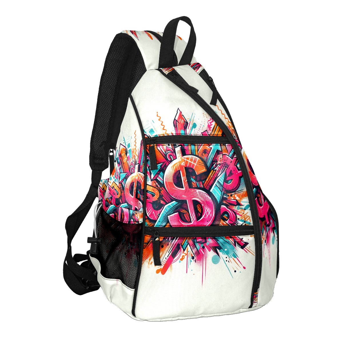 Print Pickleball Backpack Multicolor Dollar Signs | Padded 6-Paddle Compartment & Separate Shoe Bag | Multi-Pocket Sports & Gym Backpack for Tennis, Travel, Commute