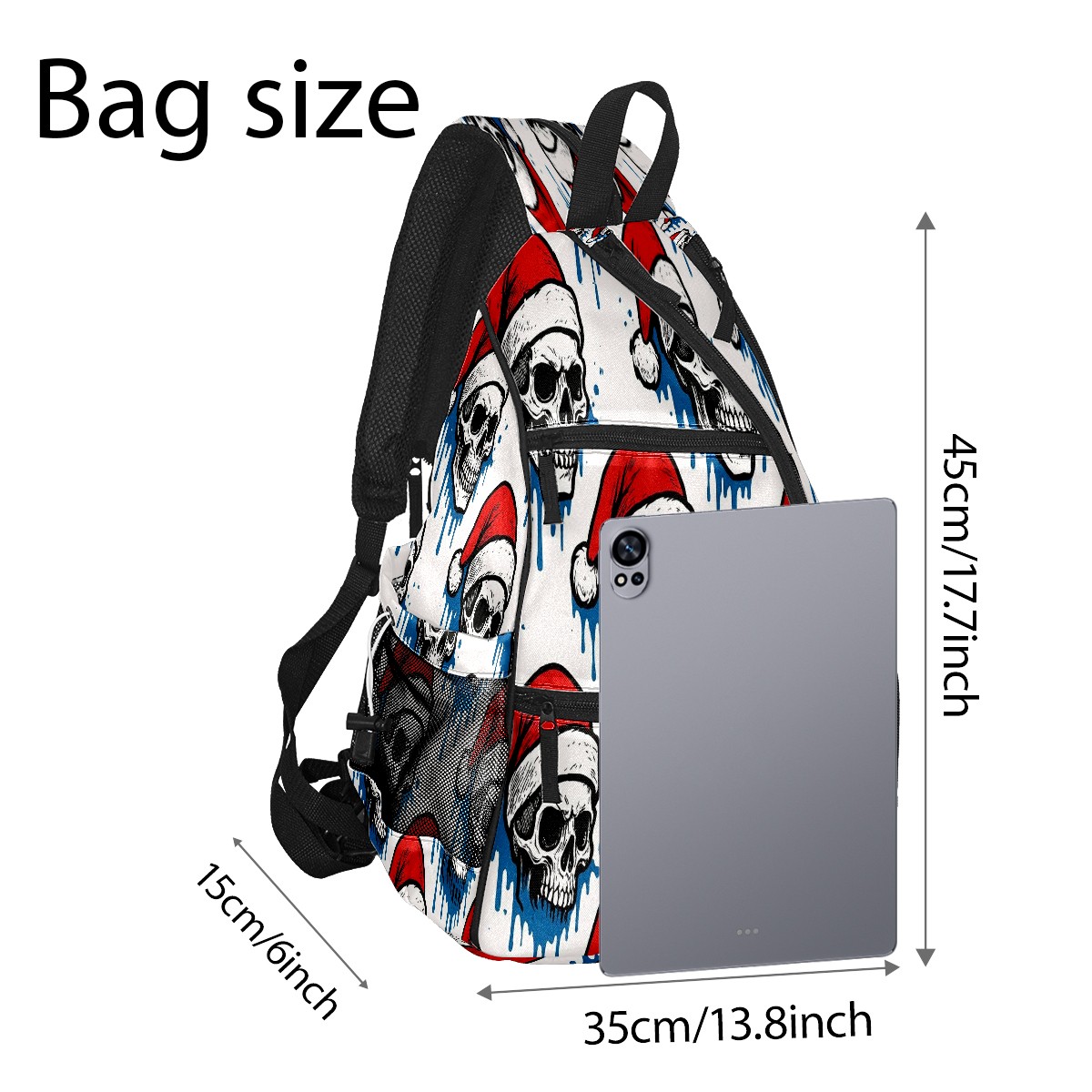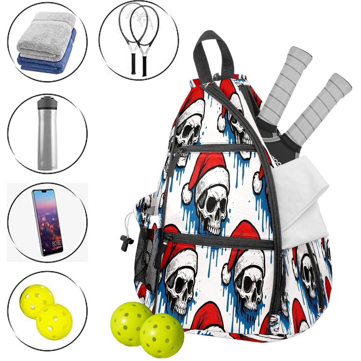Print Pickleball Backpack White Christmas Skulls | Padded 6-Paddle Compartment & Separate Shoe Bag | Multi-Pocket Sports & Gym Backpack for Tennis, Travel, Commute