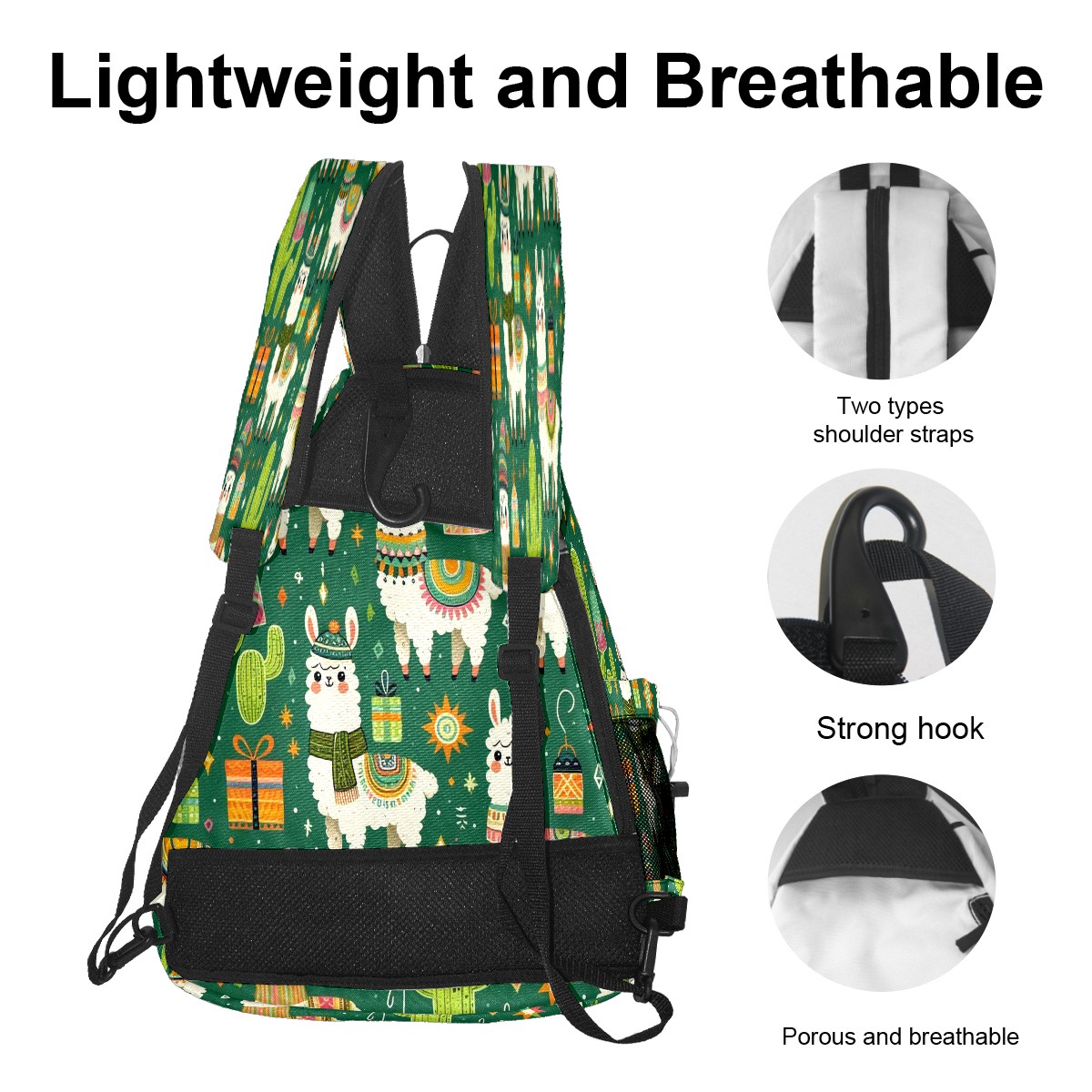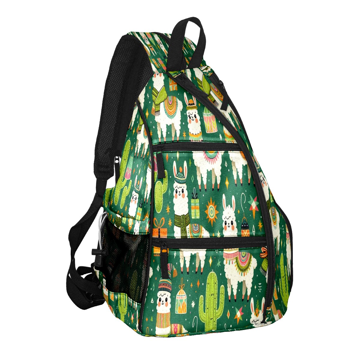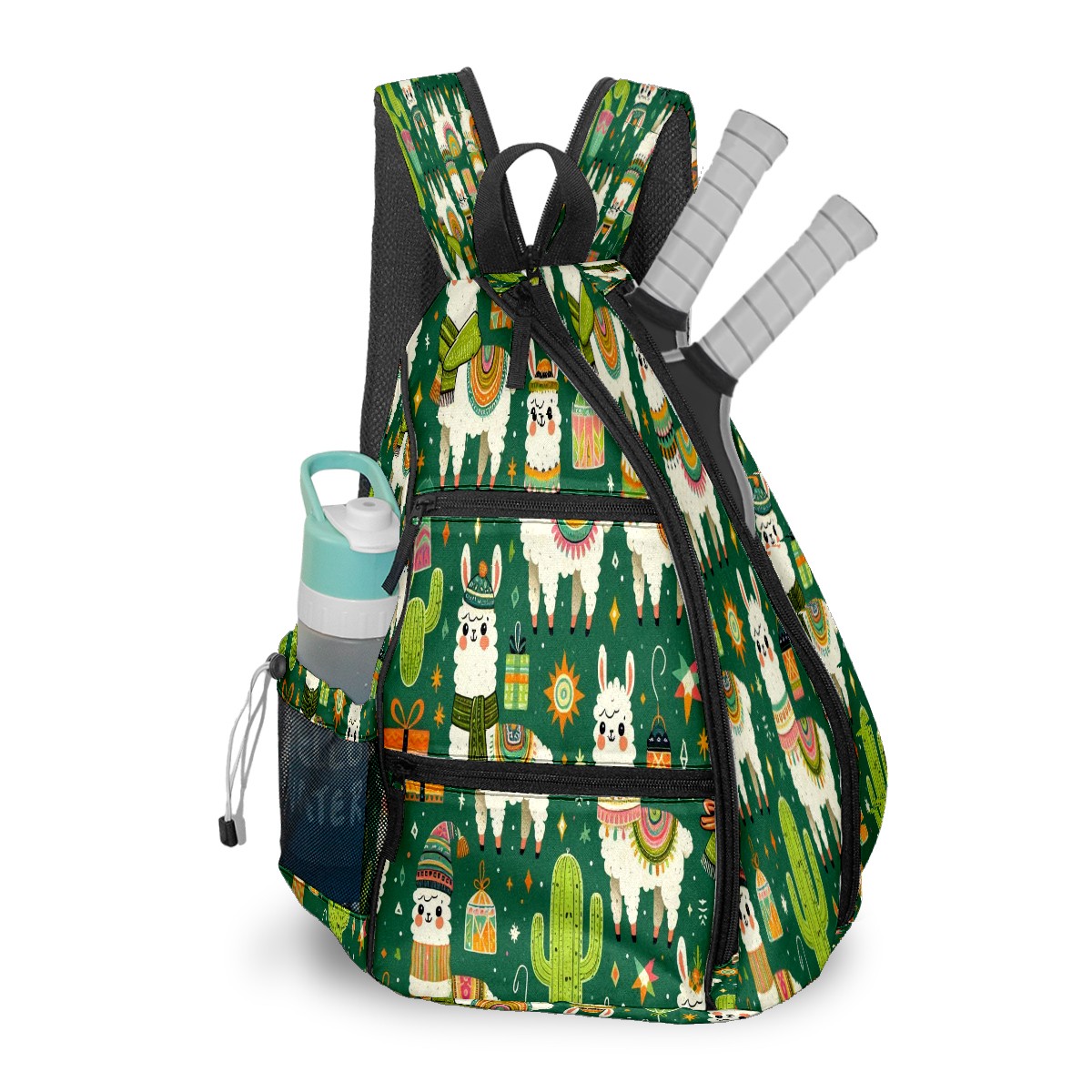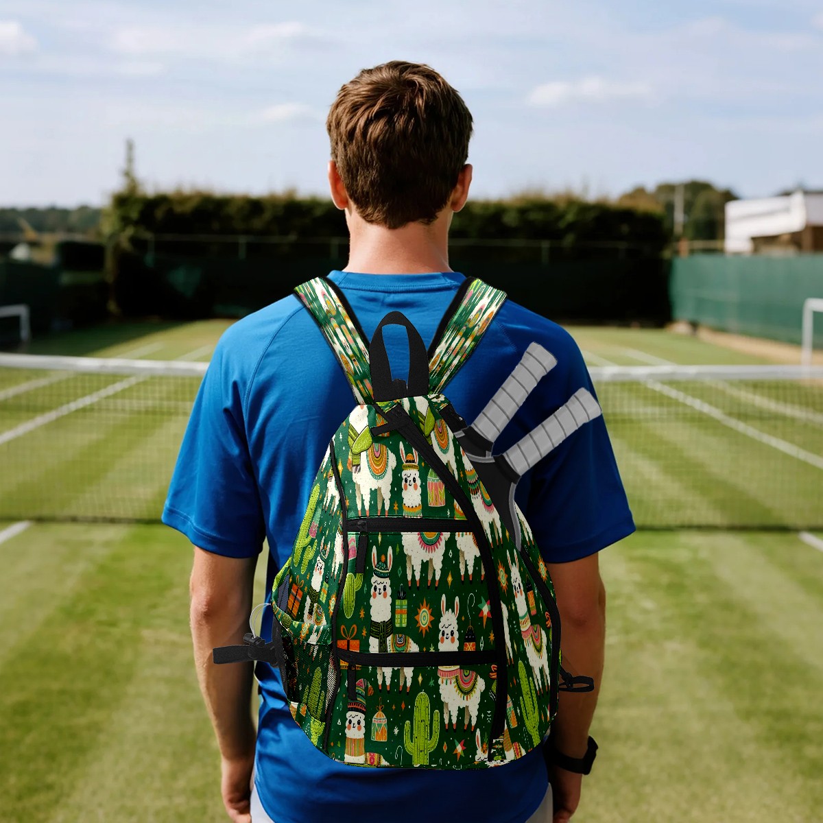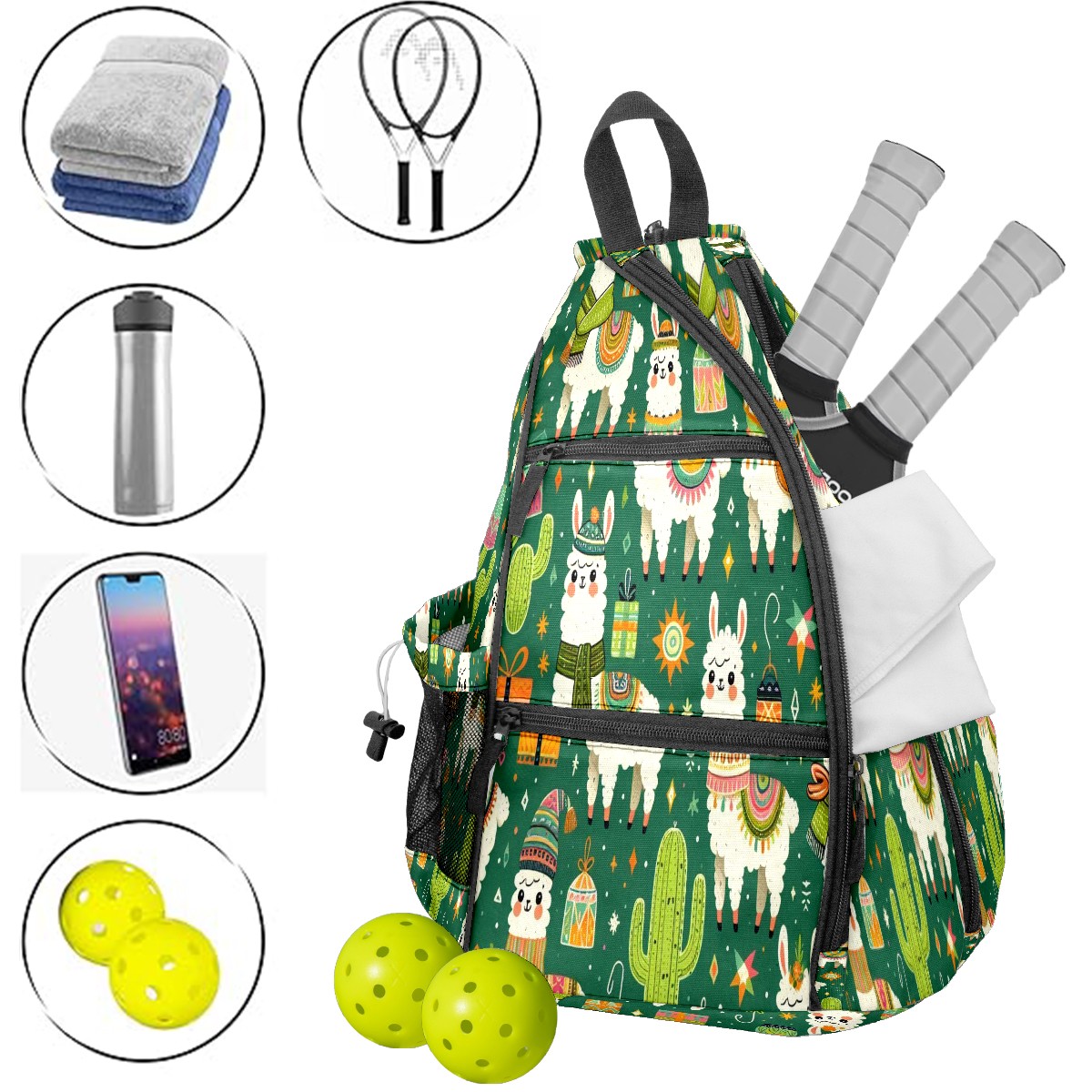 Print Pickleball Backpack Green Llamas Cactus | Padded 6-Paddle Compartment & Separate Shoe Bag | Multi-Pocket Sports & Gym Backpack for Tennis, Travel, Commute