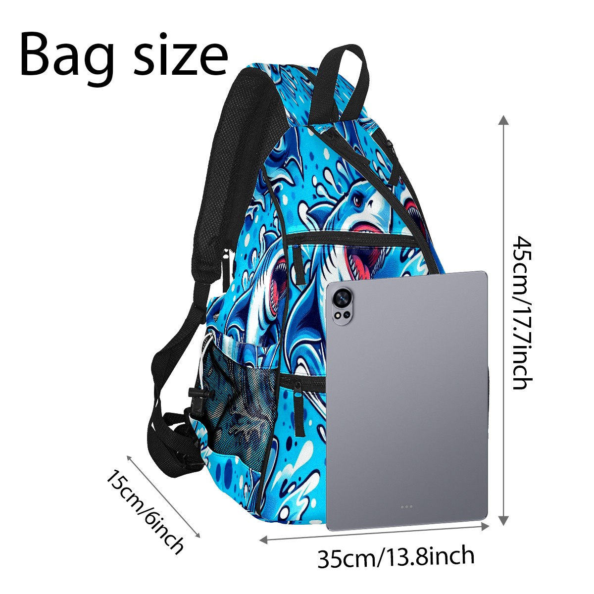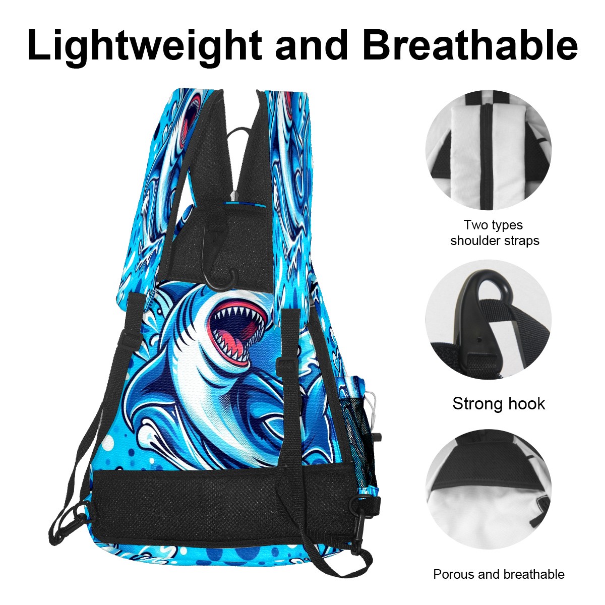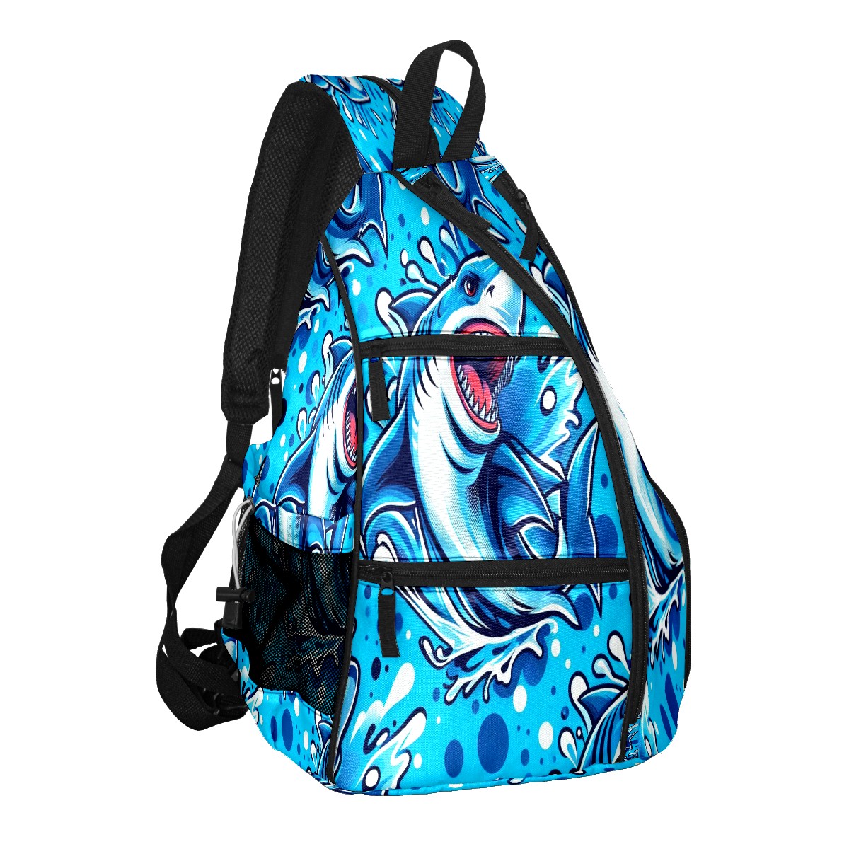 Print Pickleball Backpack Blue Sharks | Padded 6-Paddle Compartment & Separate Shoe Bag | Multi-Pocket Sports & Gym Backpack for Tennis, Travel, Commute
