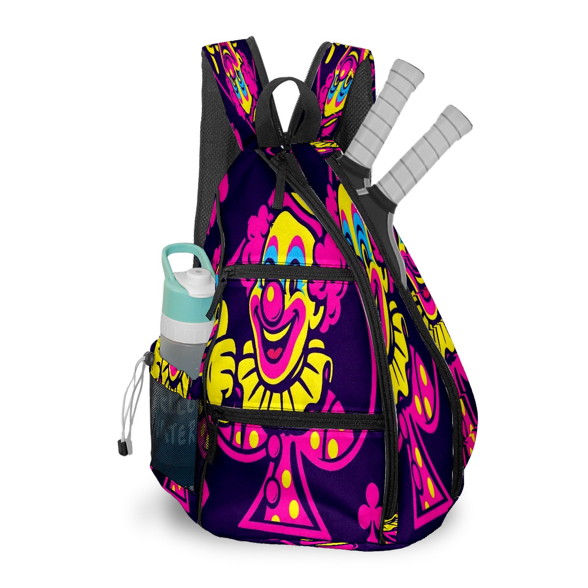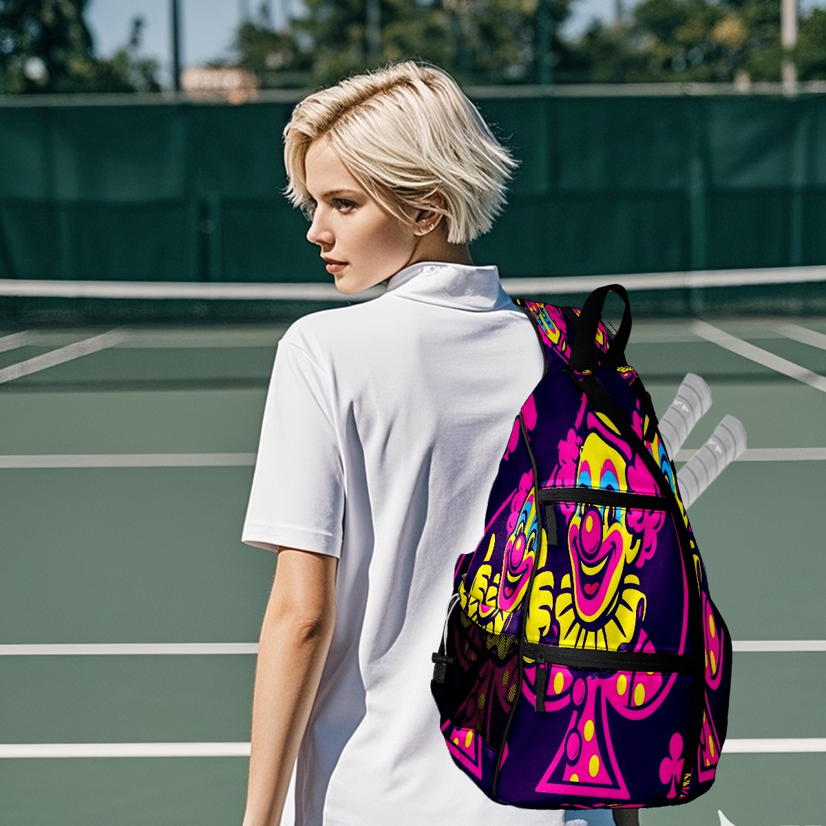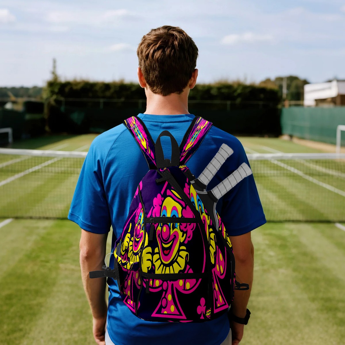 Print Pickleball Backpack Purple Poker Clown | Padded 6-Paddle Compartment & Separate Shoe Bag | Multi-Pocket Sports & Gym Backpack for Tennis, Travel, Commute