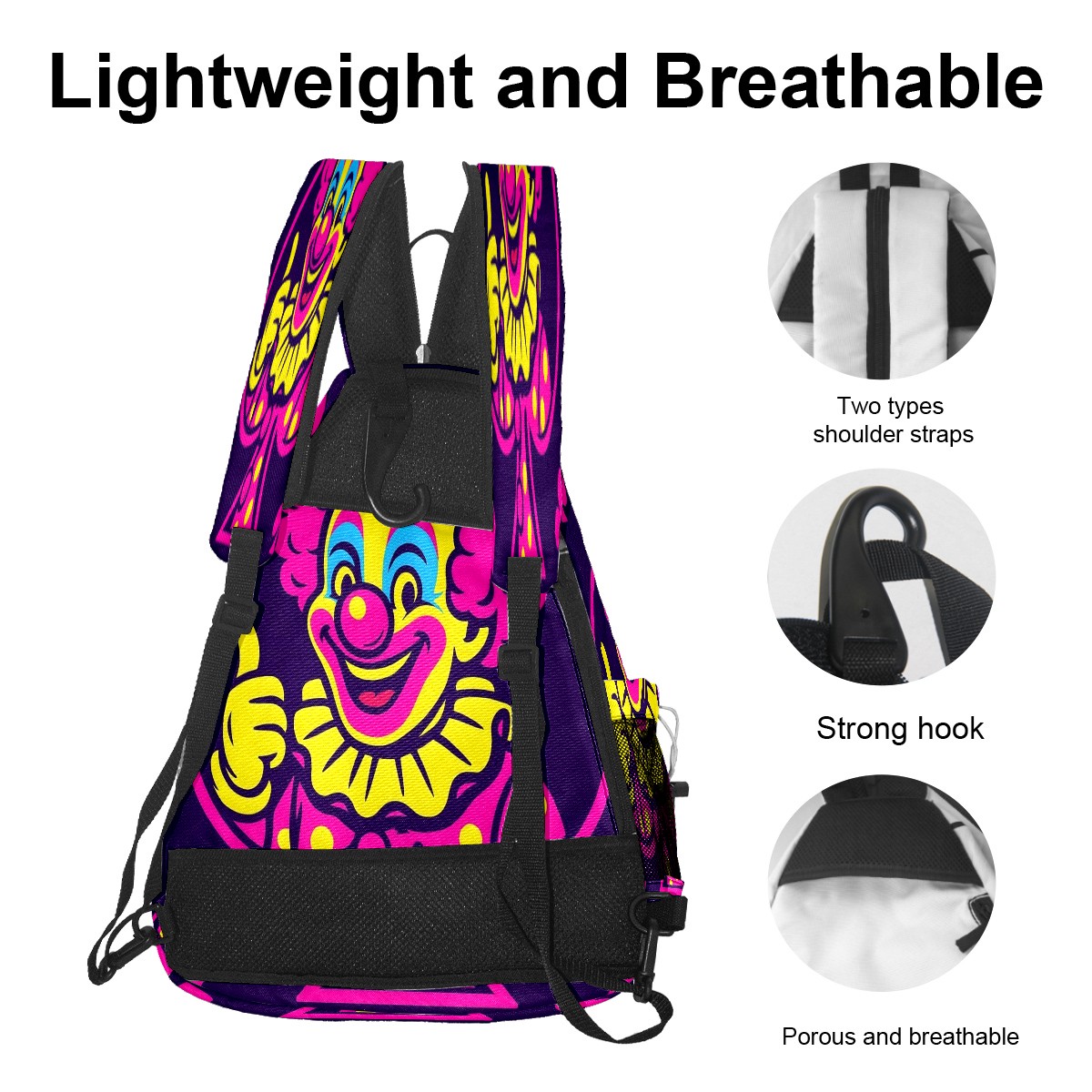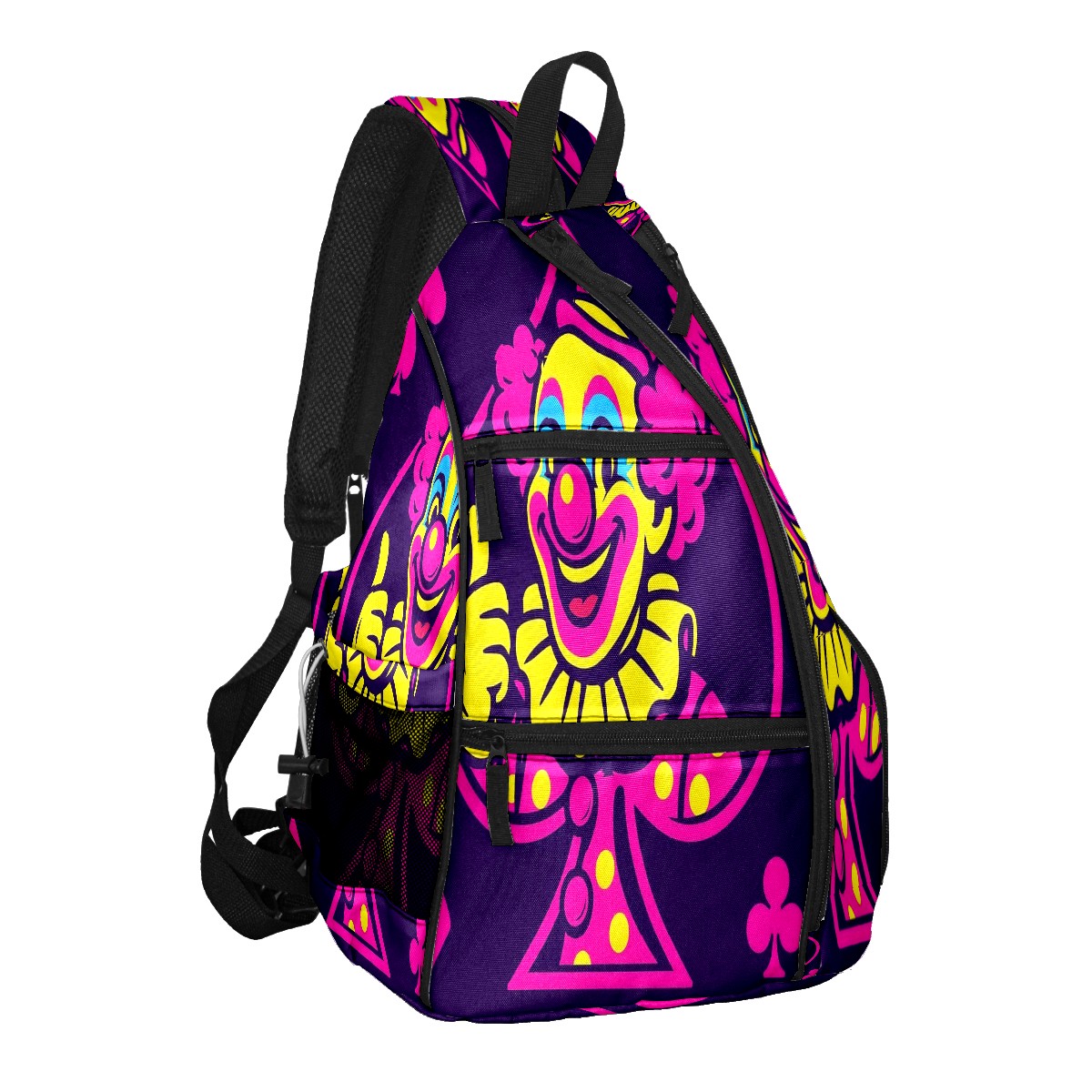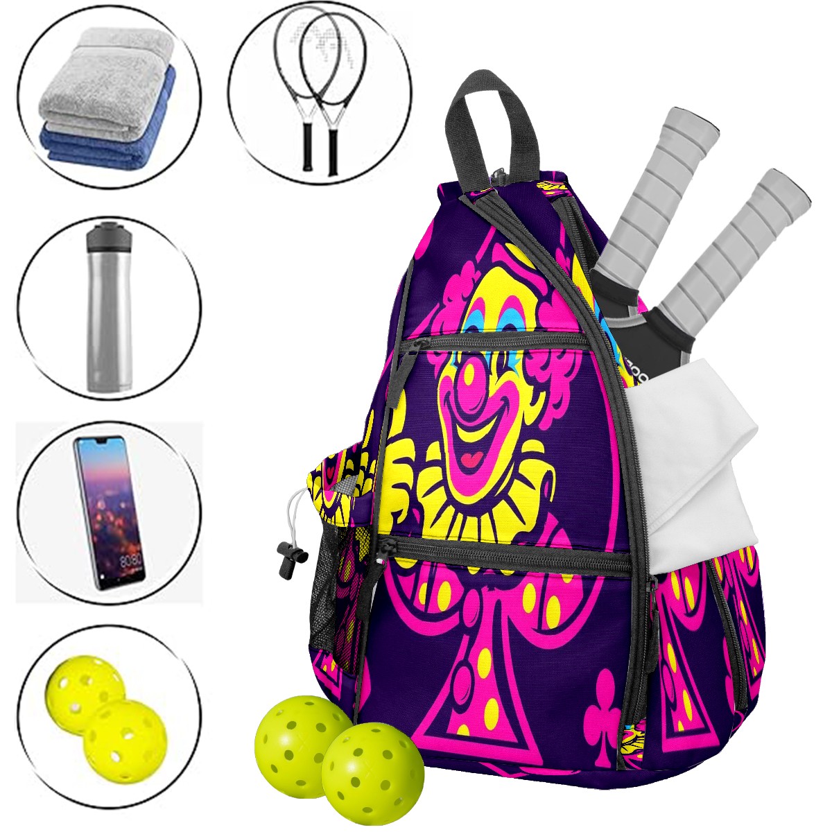 Print Pickleball Backpack Purple Poker Clown | Padded 6-Paddle Compartment & Separate Shoe Bag | Multi-Pocket Sports & Gym Backpack for Tennis, Travel, Commute
