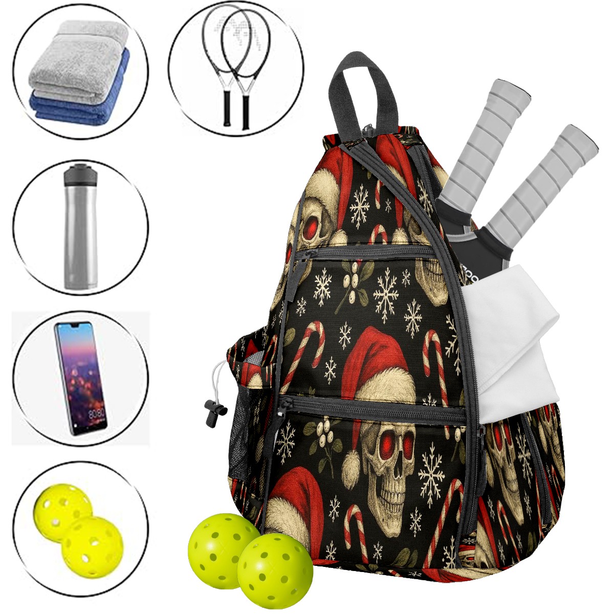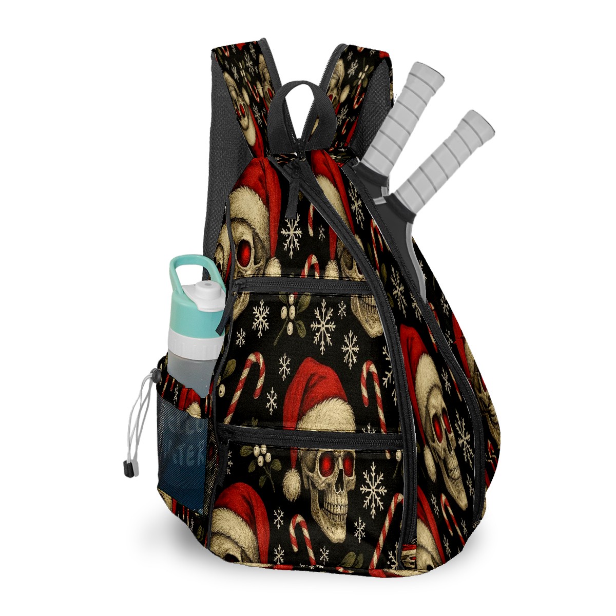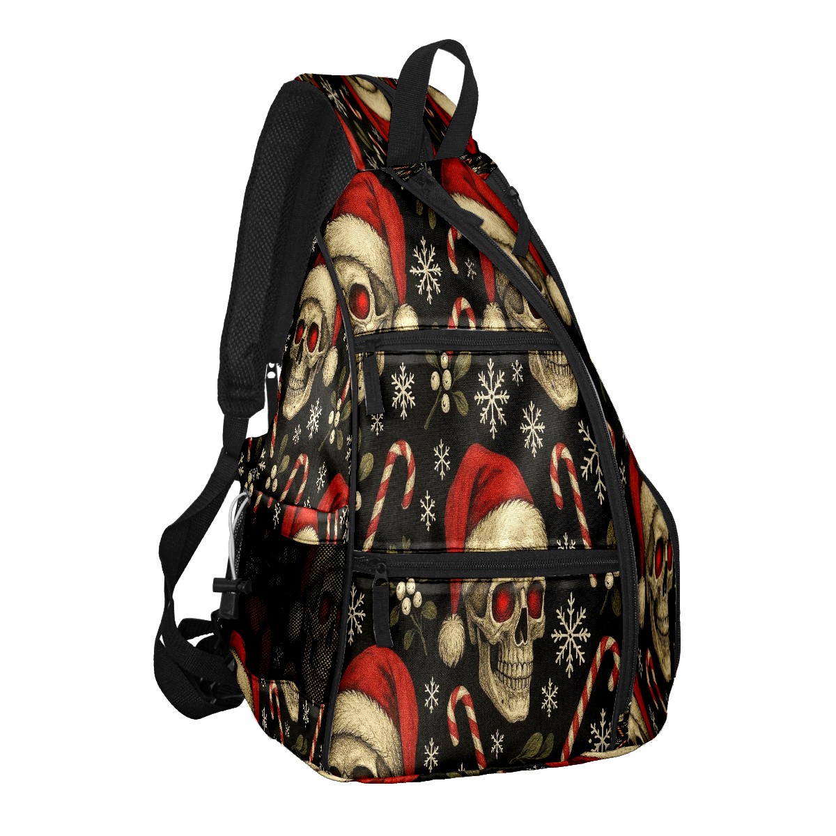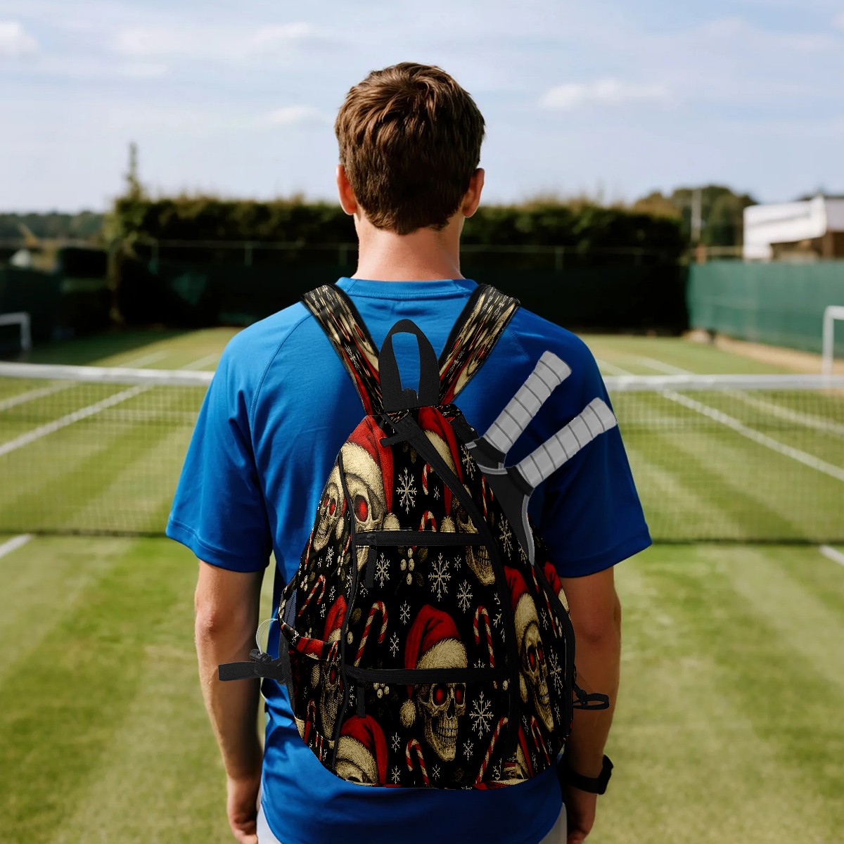 Print Pickleball Backpack Black Christmas Skulls | Padded 6-Paddle Compartment & Separate Shoe Bag | Multi-Pocket Sports & Gym Backpack for Tennis, Travel, Commute