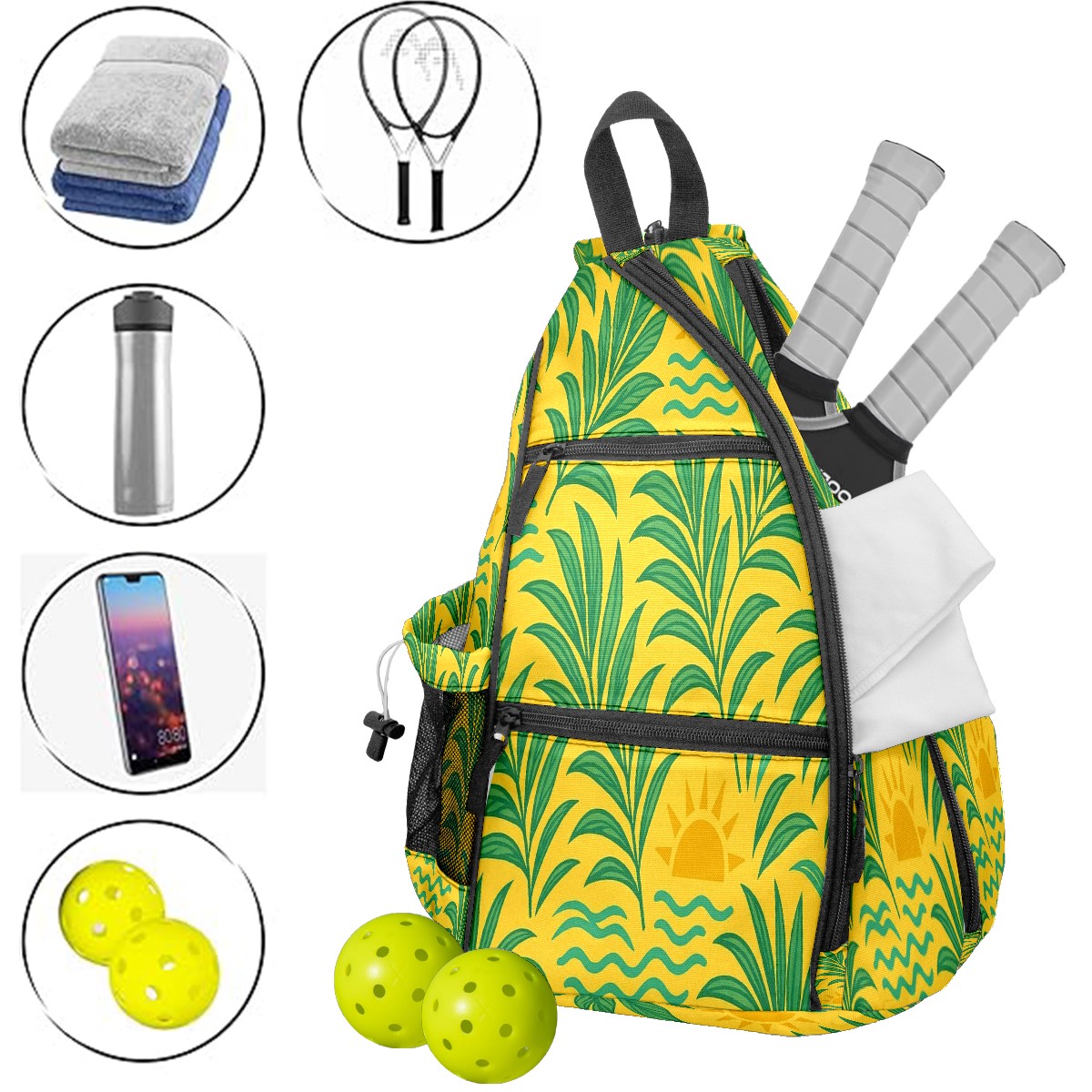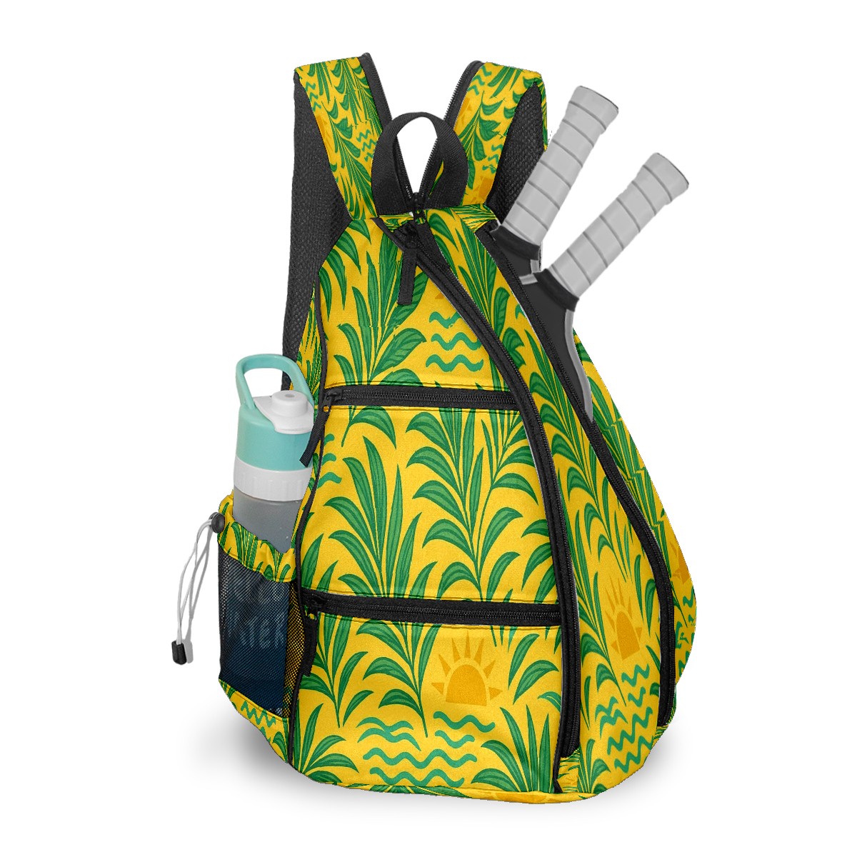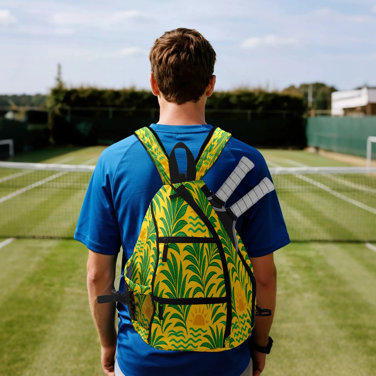 Print Pickleball Backpack Yellow Palm Leaves | Padded 6-Paddle Compartment & Separate Shoe Bag | Multi-Pocket Sports & Gym Backpack for Tennis, Travel, Commute