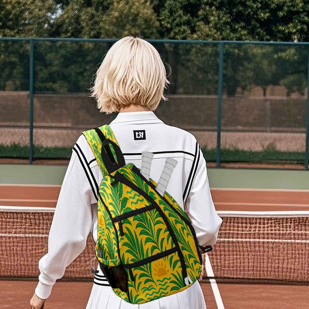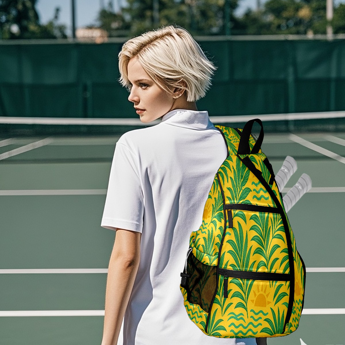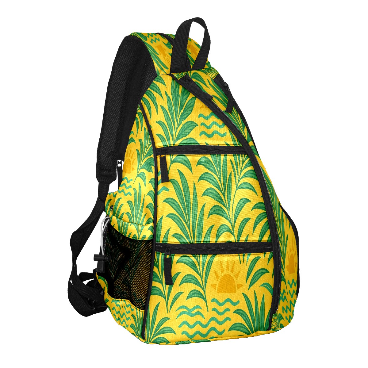 Print Pickleball Backpack Yellow Palm Leaves | Padded 6-Paddle Compartment & Separate Shoe Bag | Multi-Pocket Sports & Gym Backpack for Tennis, Travel, Commute