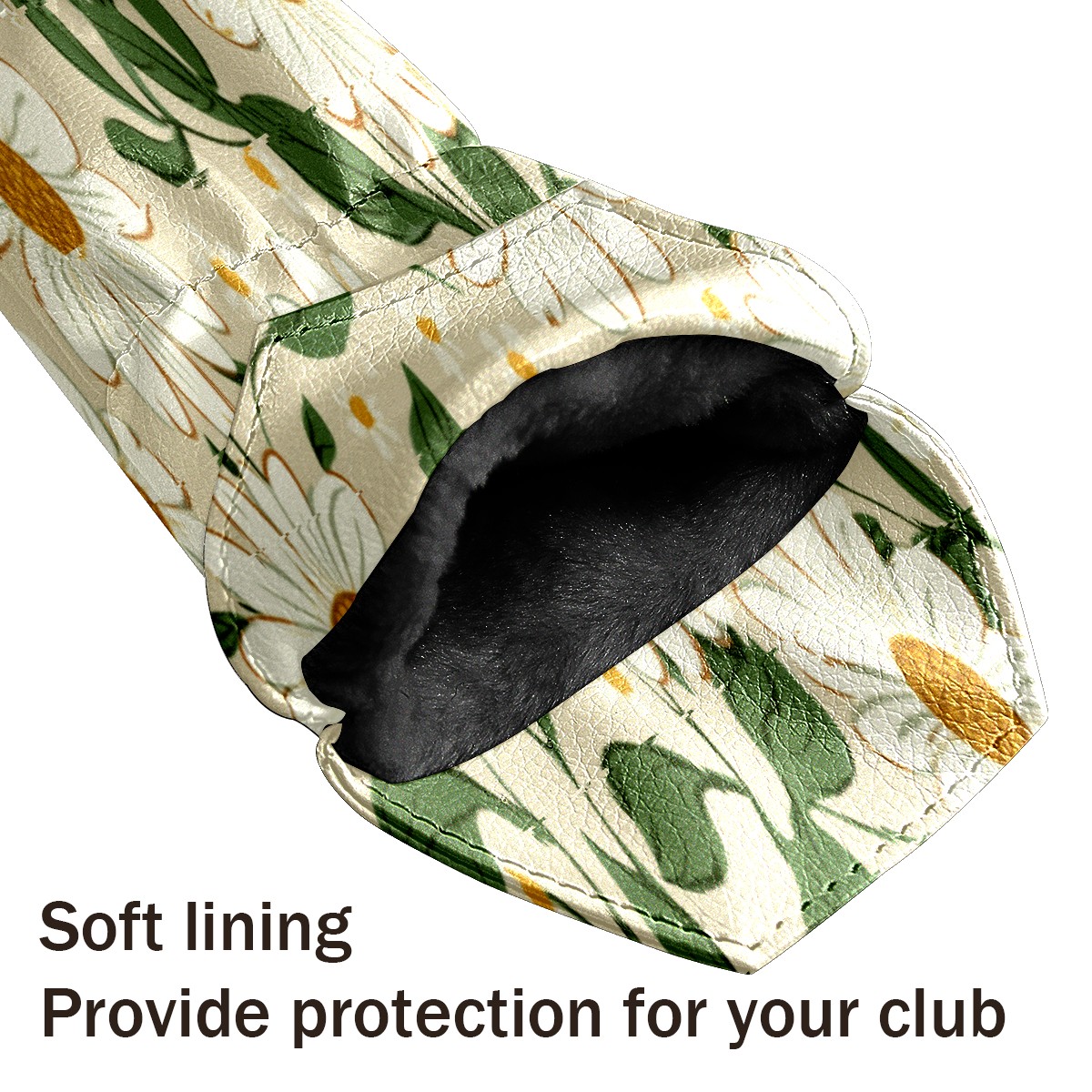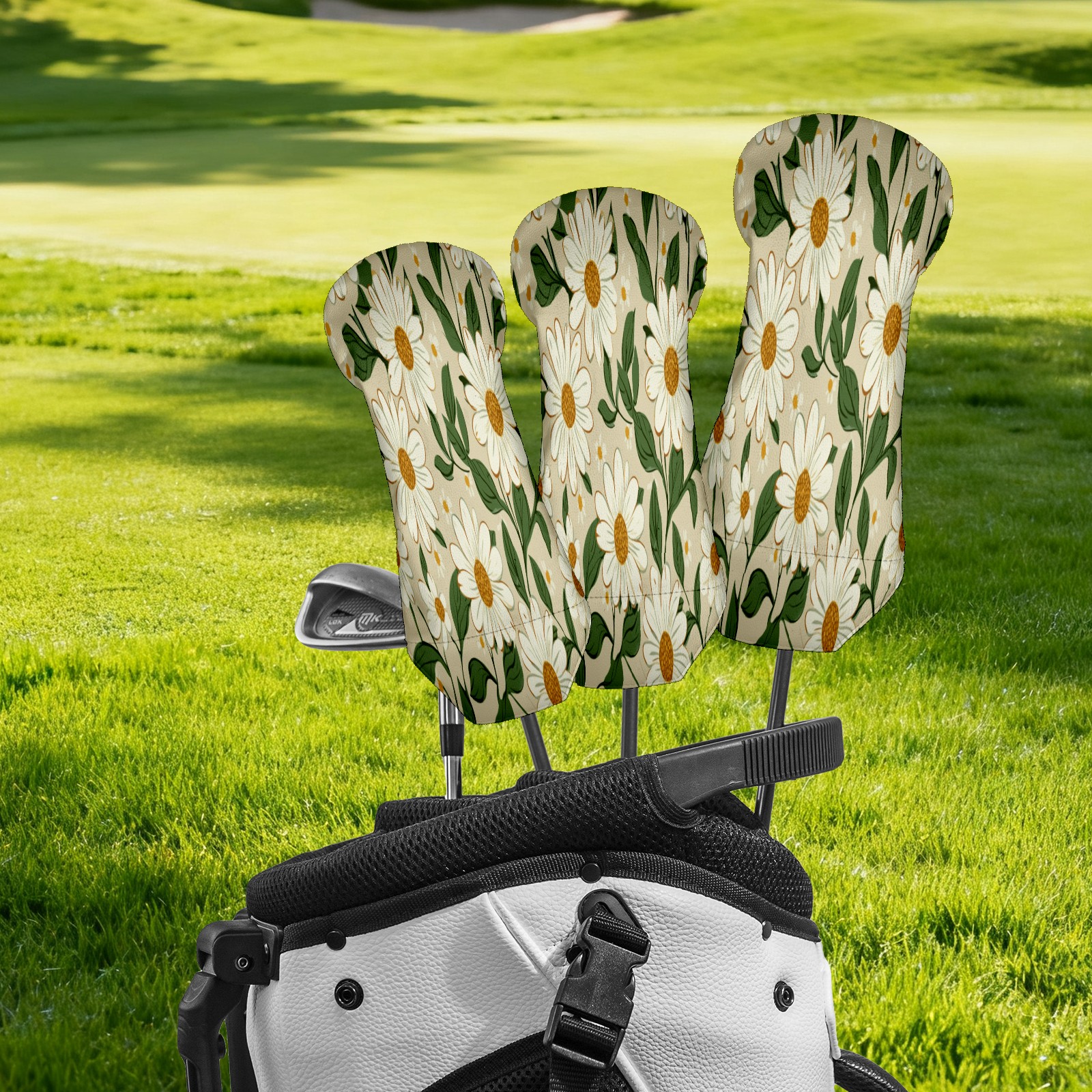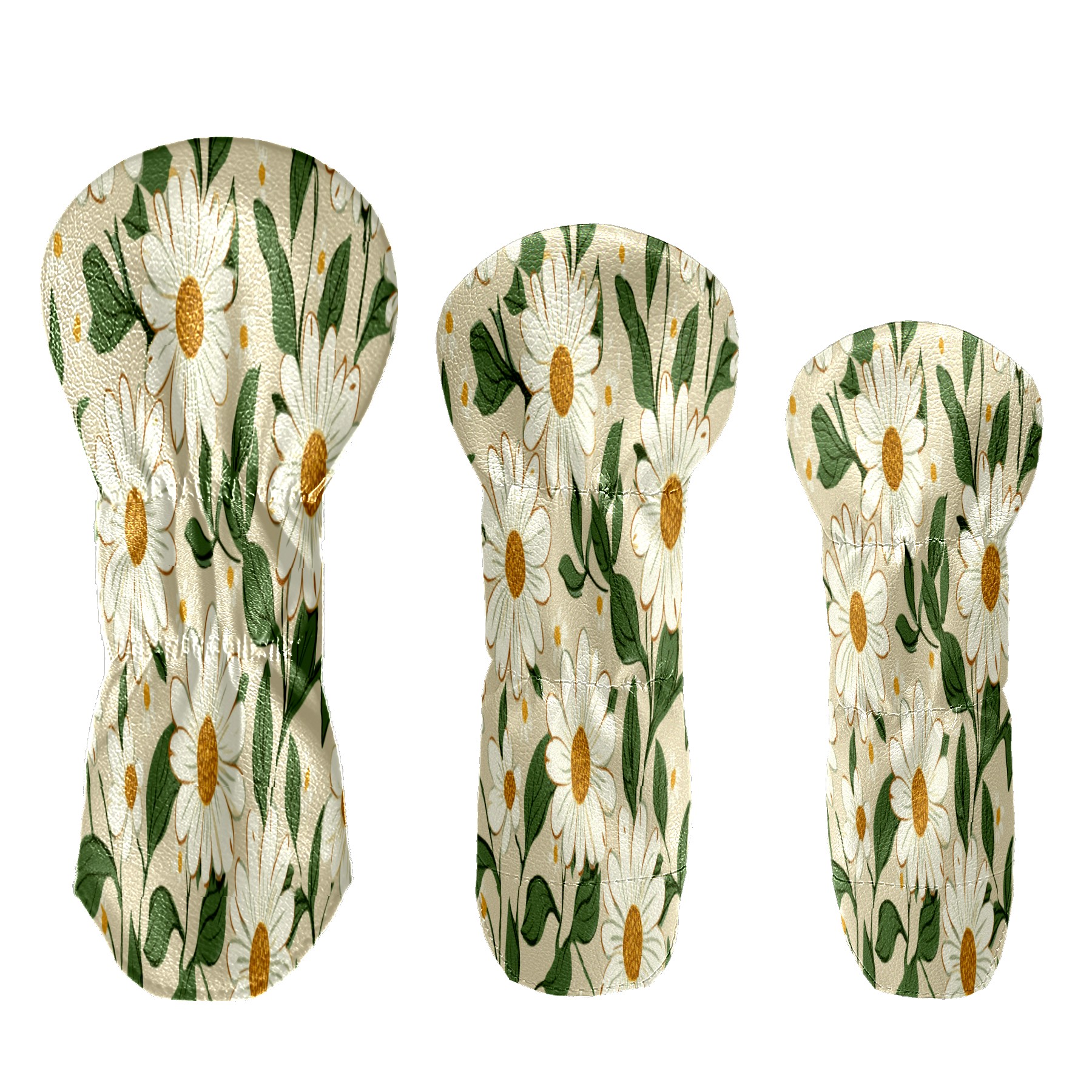 Golf Head Cover Waterproof Leather Headcovers for Driver Golf Accessories Golf Christmas Gift for Golfers 1/3/5 Hybrid Fairway Wood Cover White Daisy