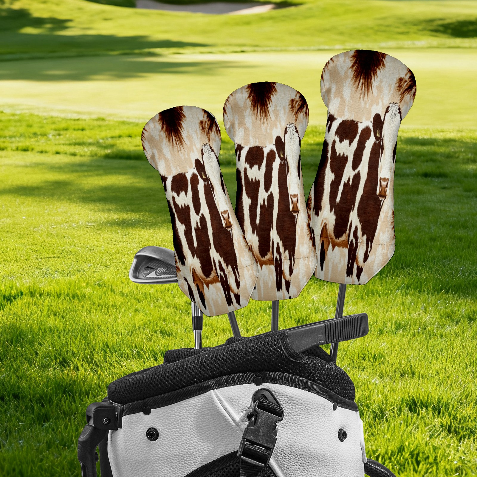 Golf Head Cover Waterproof Leather Headcovers for Driver Golf Accessories Golf Christmas Gift for Golfers 1/3/5 Hybrid Fairway Wood Cover Cow Pattern