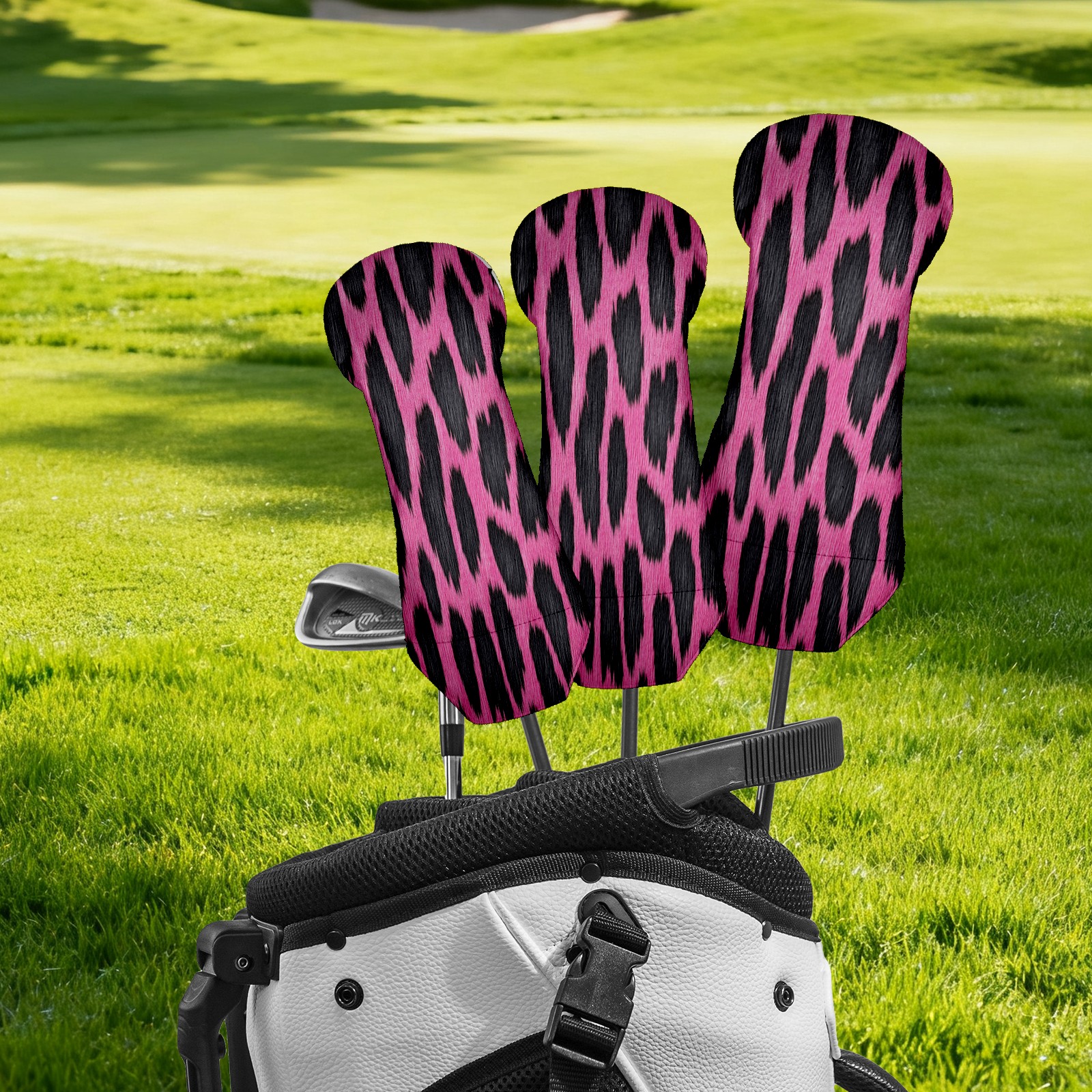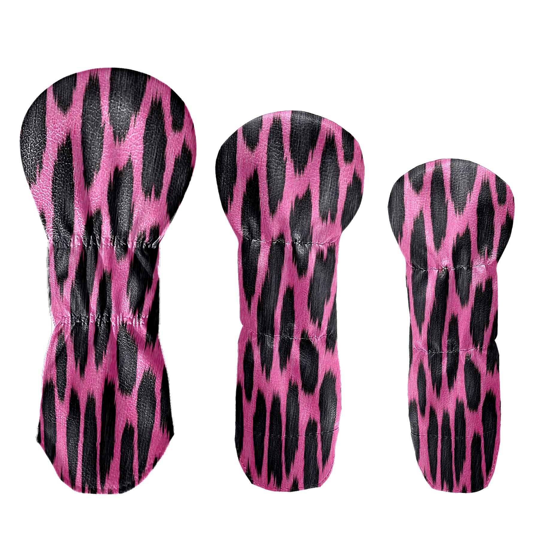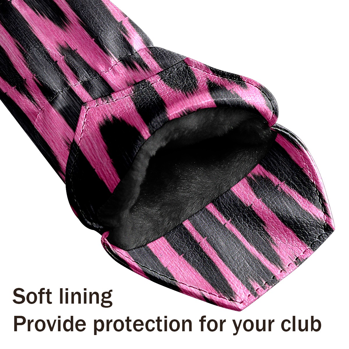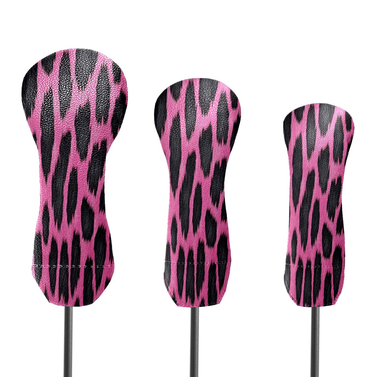 Golf Head Cover Waterproof Leather Headcovers for Driver Golf Accessories Golf Christmas Gift for Golfers 1/3/5 Hybrid Fairway Wood Cover Pink Leopard Pattern