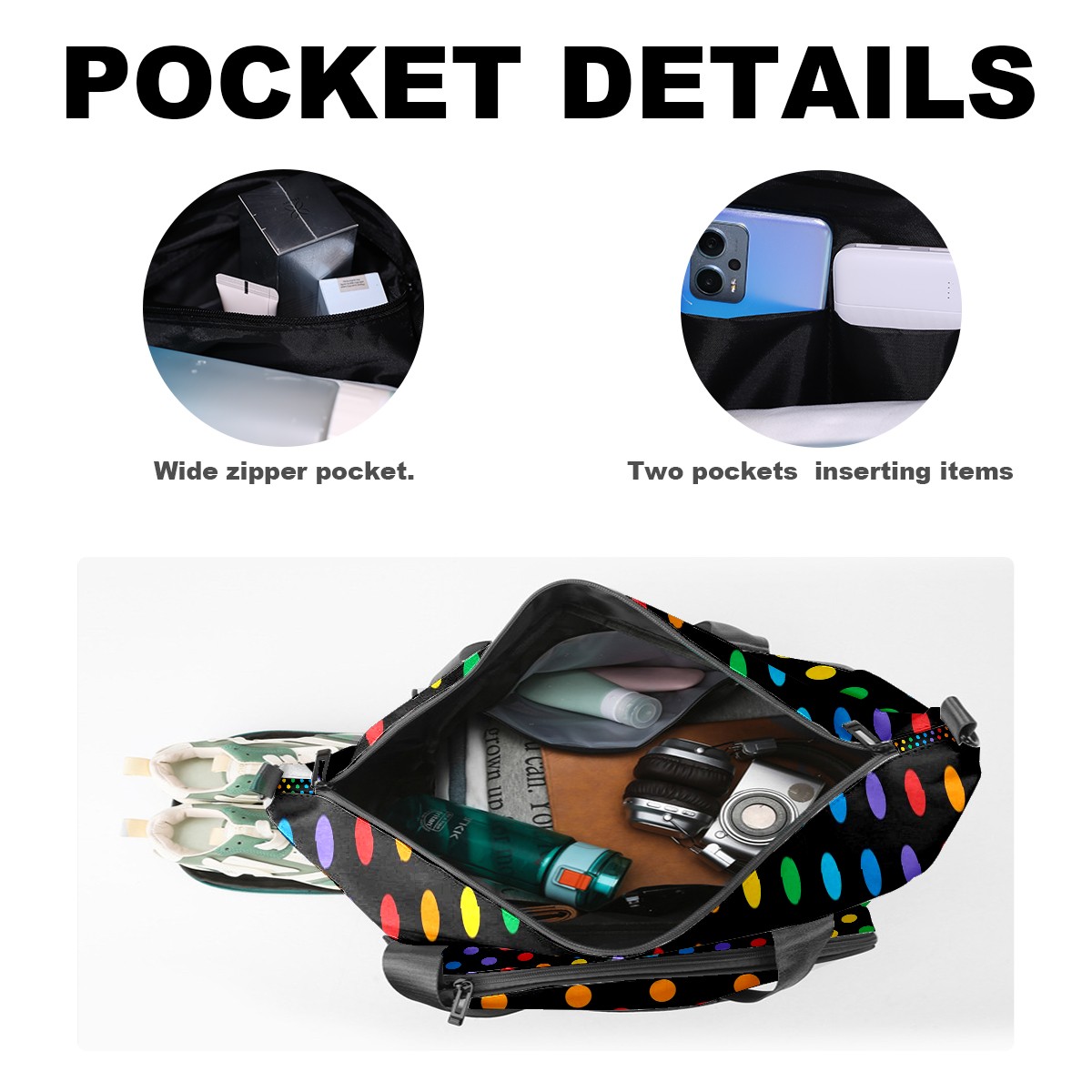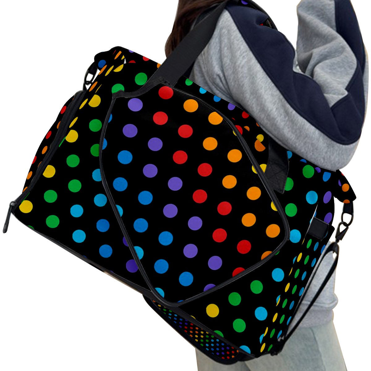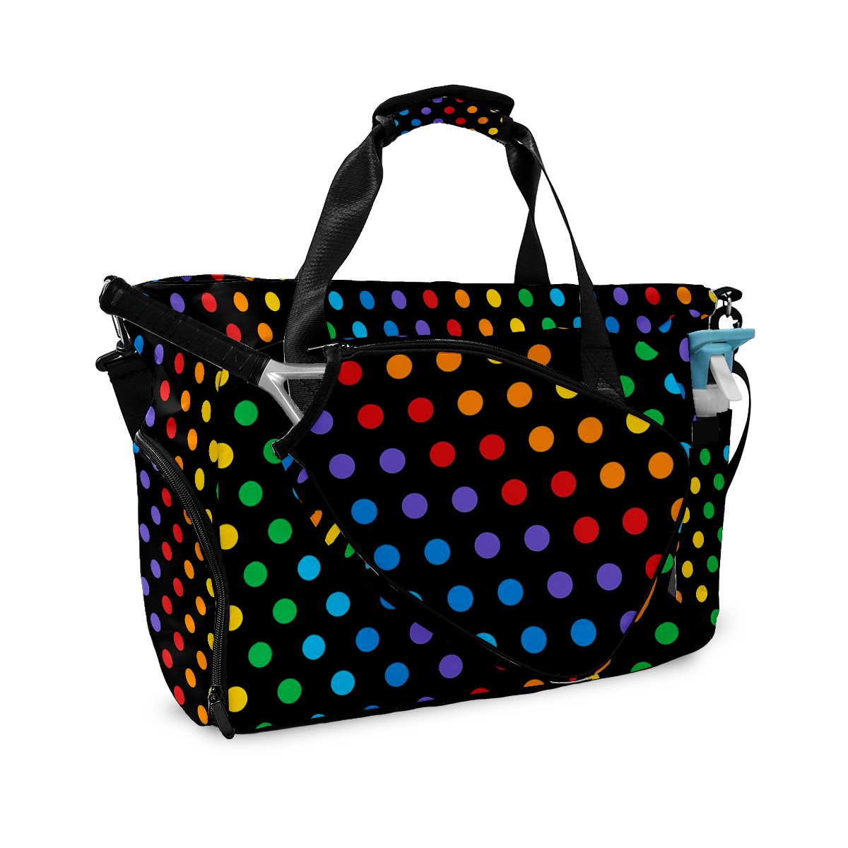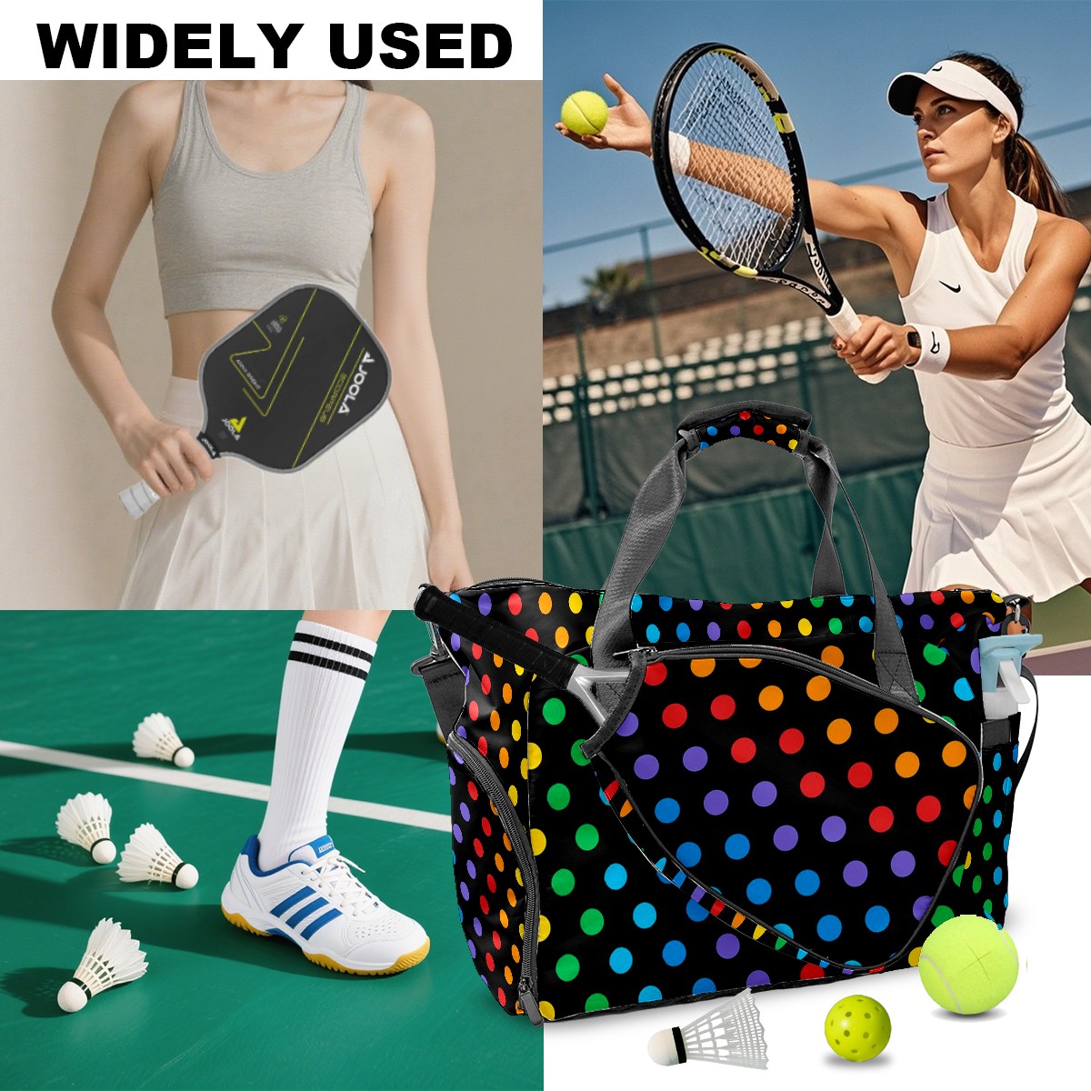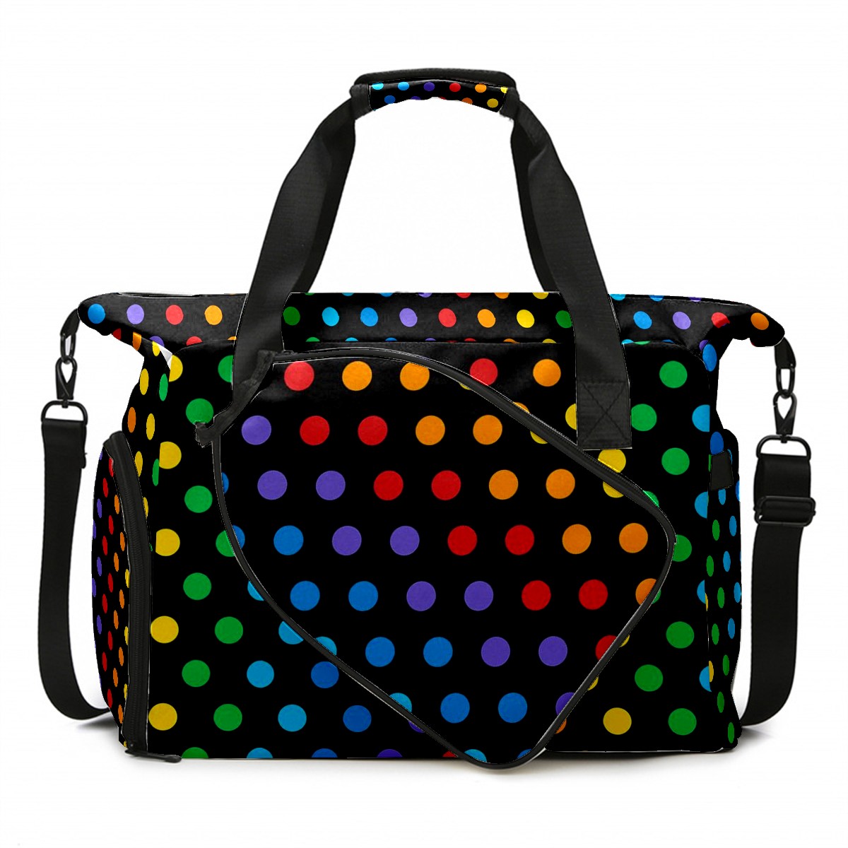 Pickleball Tote Bag Colorful Polka Dot Pickleball Bag with Paddle Storage for Women Men Large Sports Bag for Paddles Balls Tennis