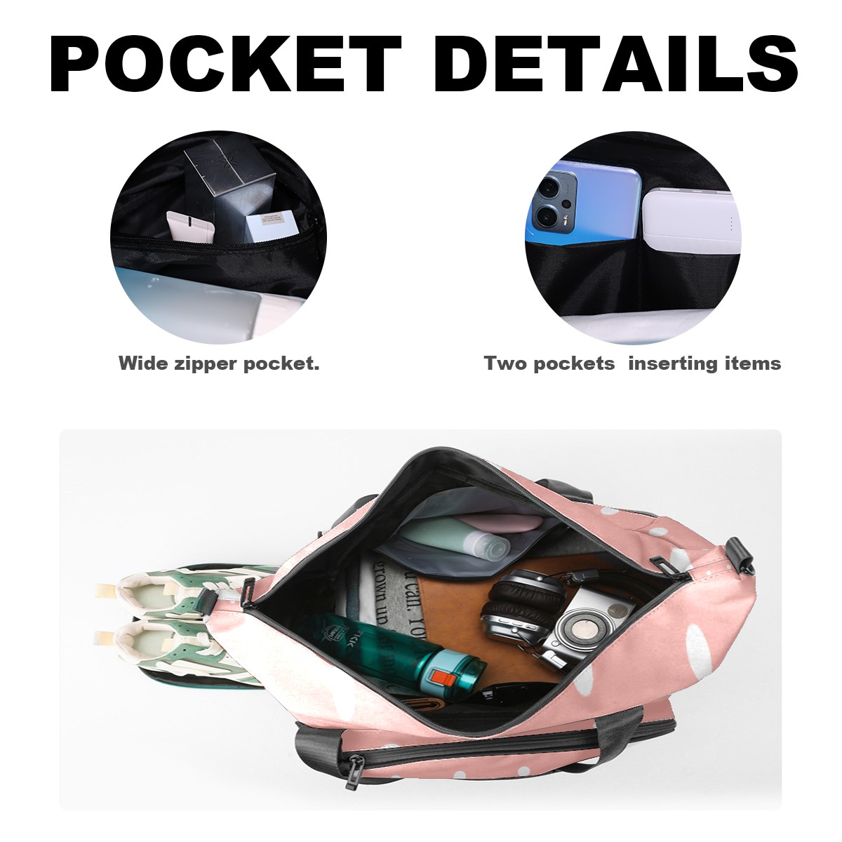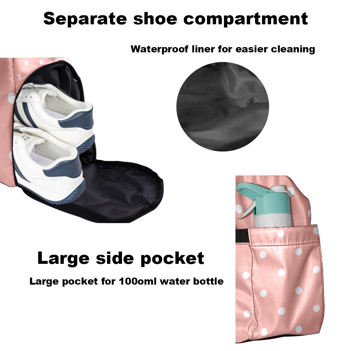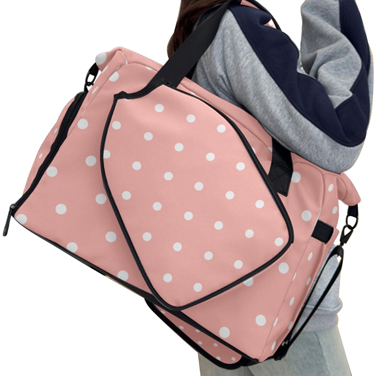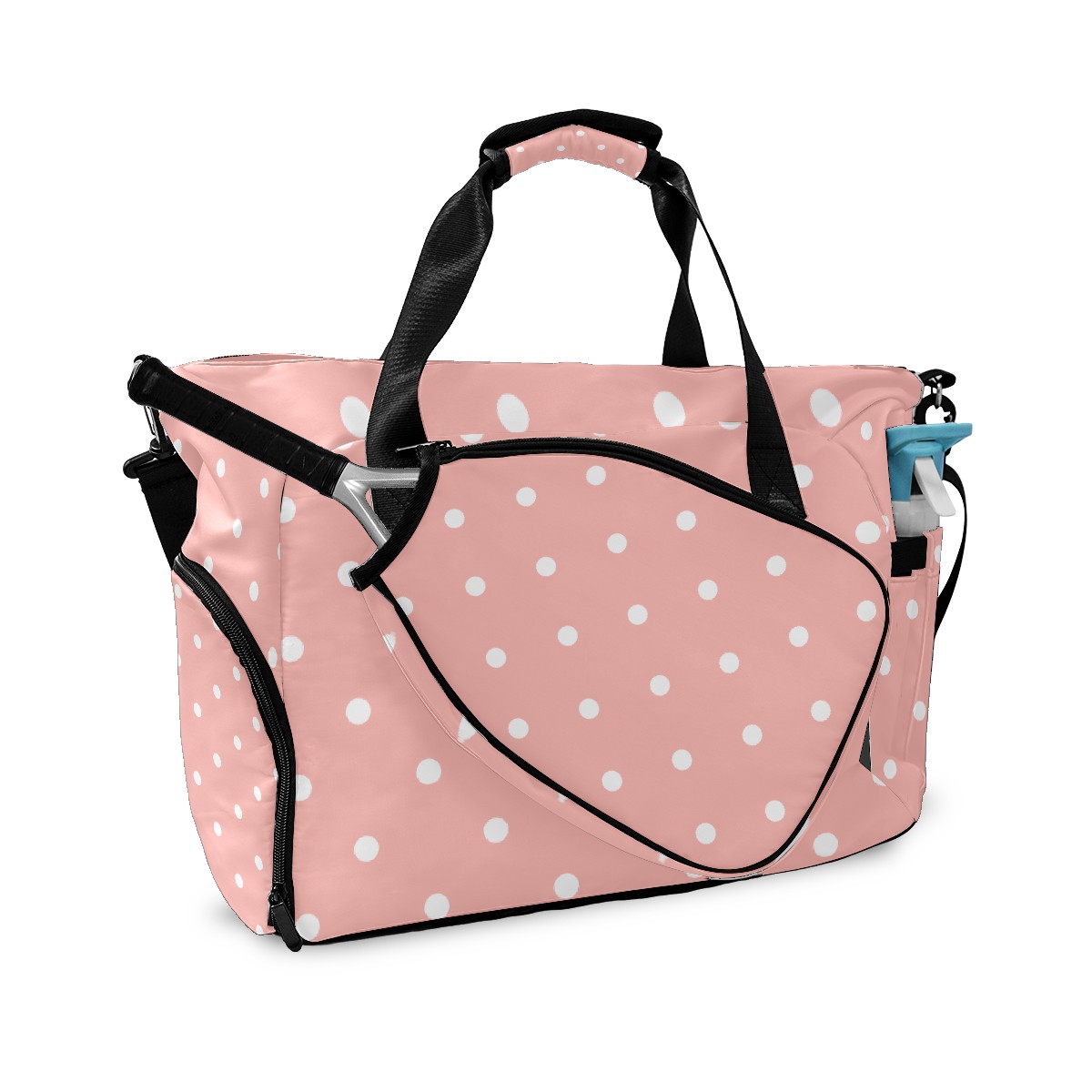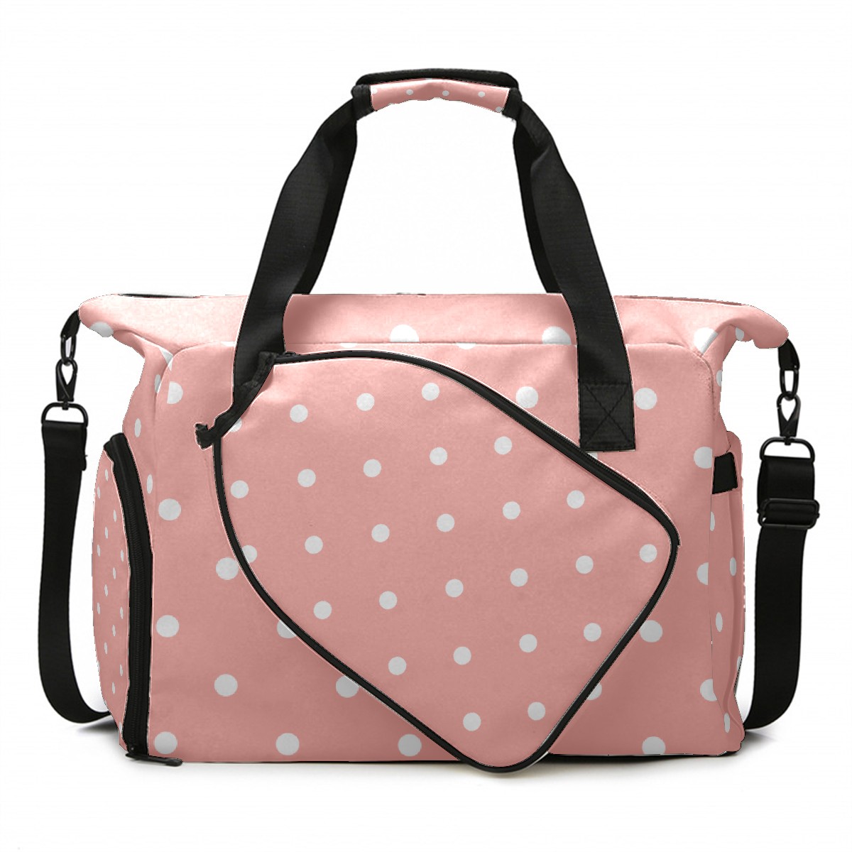 Pickleball Tote Bag Pastel Pink White Polka Dot Pickleball Bag with Paddle Storage for Women Men Large Sports Bag for Paddles Balls Tennis