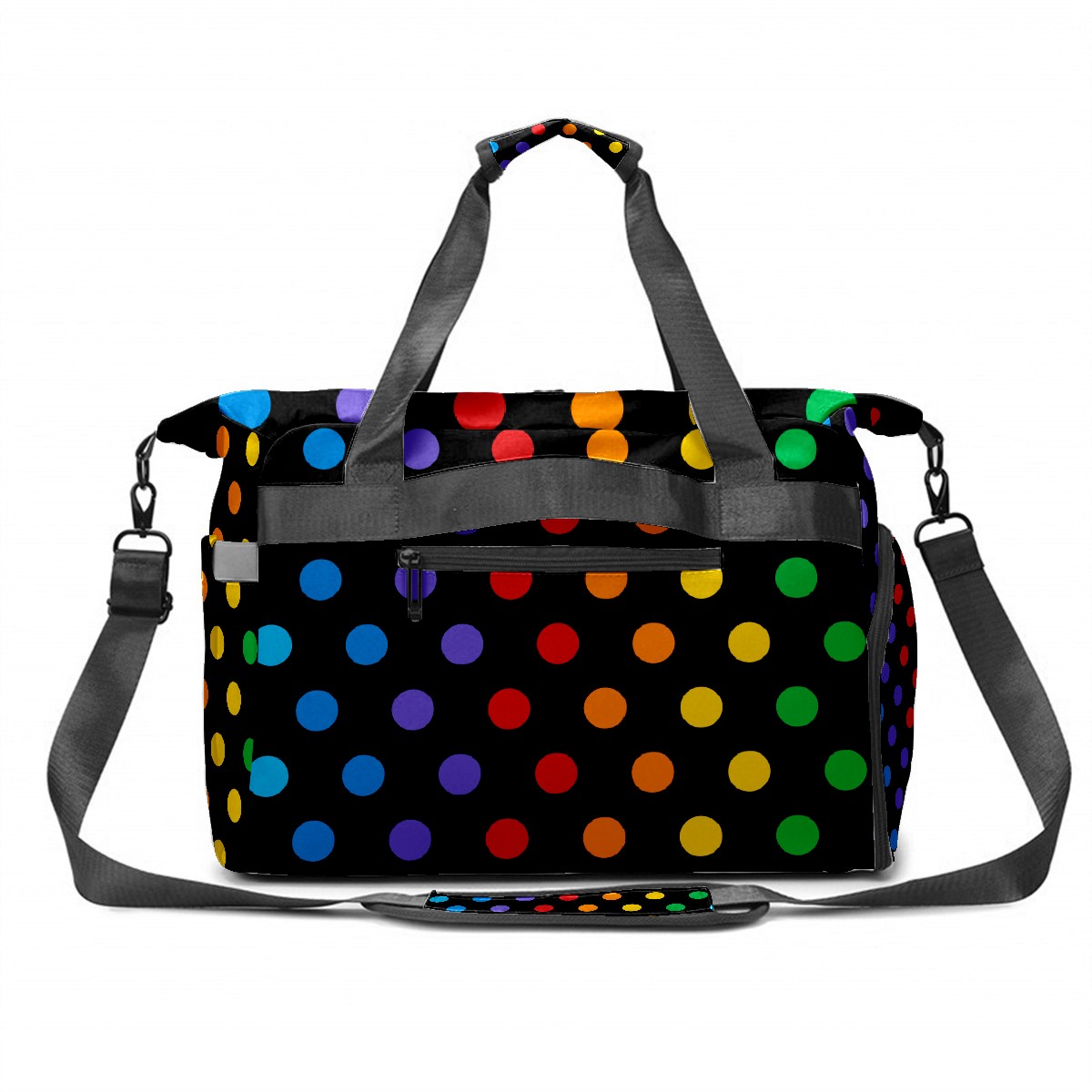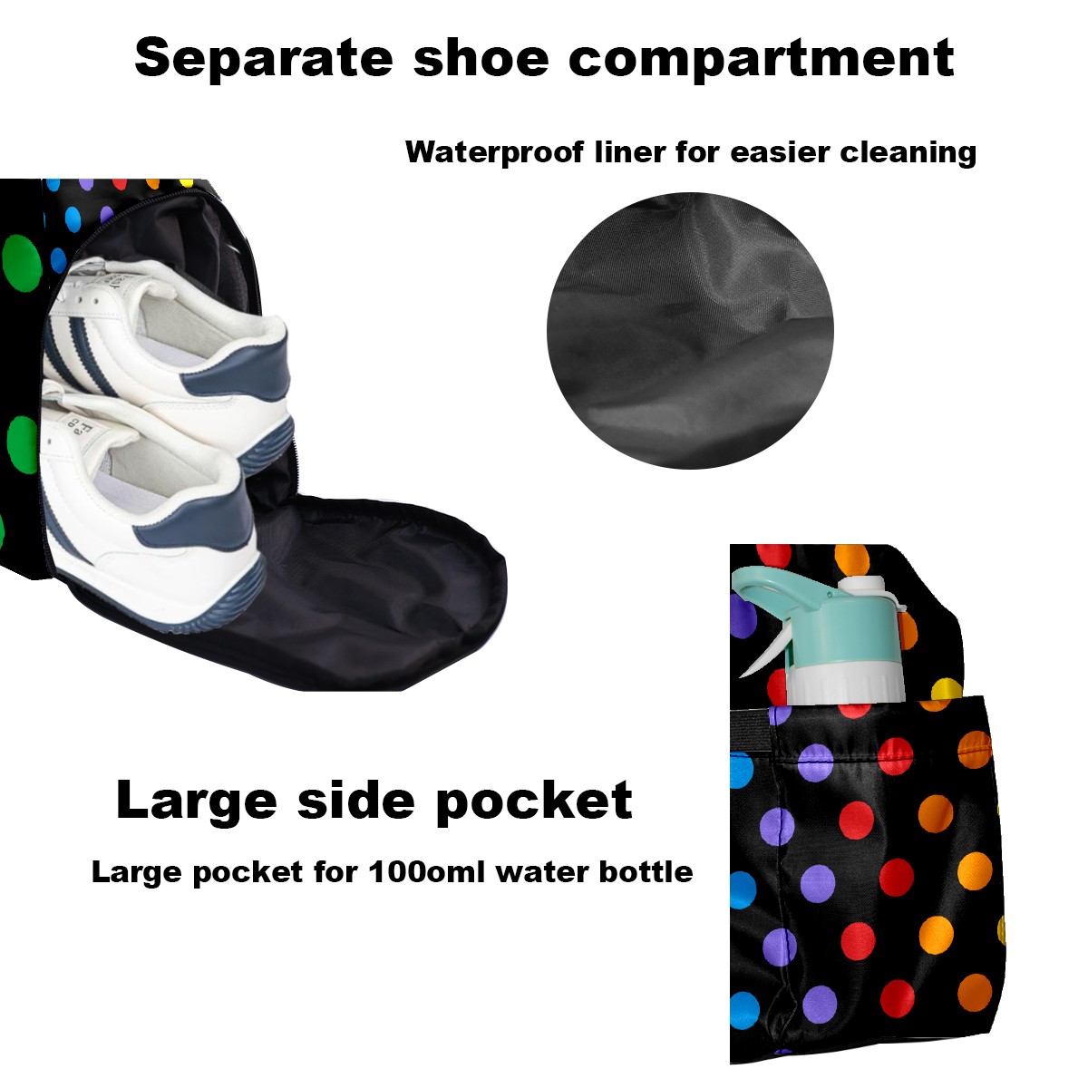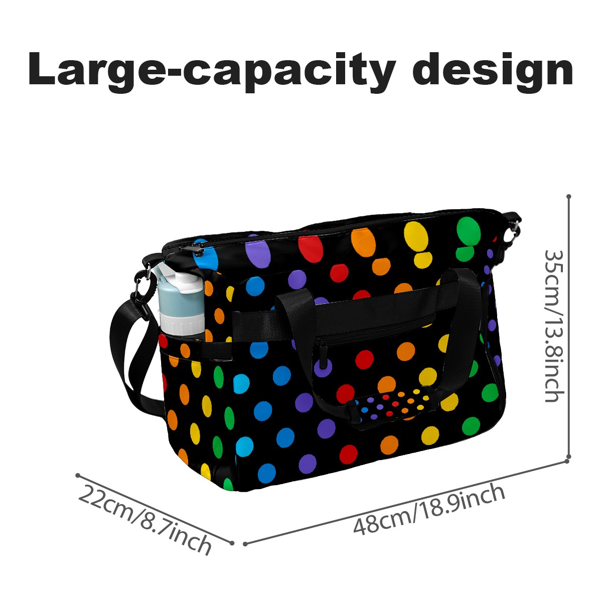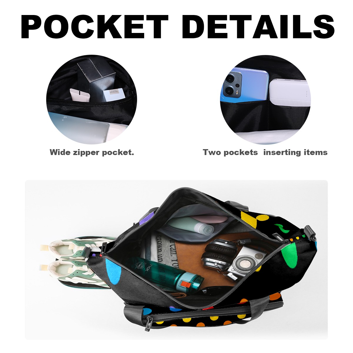 Pickleball Tote Bag Colorful Polka Dot On Black Pickleball Bag with Paddle Storage for Women Men Large Sports Bag for Paddles Balls Tennis