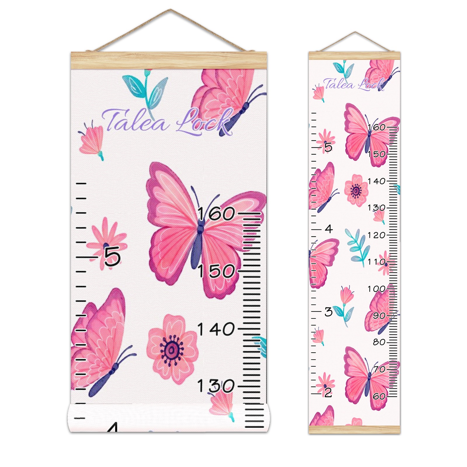 Personalized Kids Name Growth Chart Ruler for Wall Wood Frame Canvas Height Measure Chart 13.4x56 in Hanging Growth Chart Pink Butterfly & Flower11.21-3 Boys Girls Room Decor