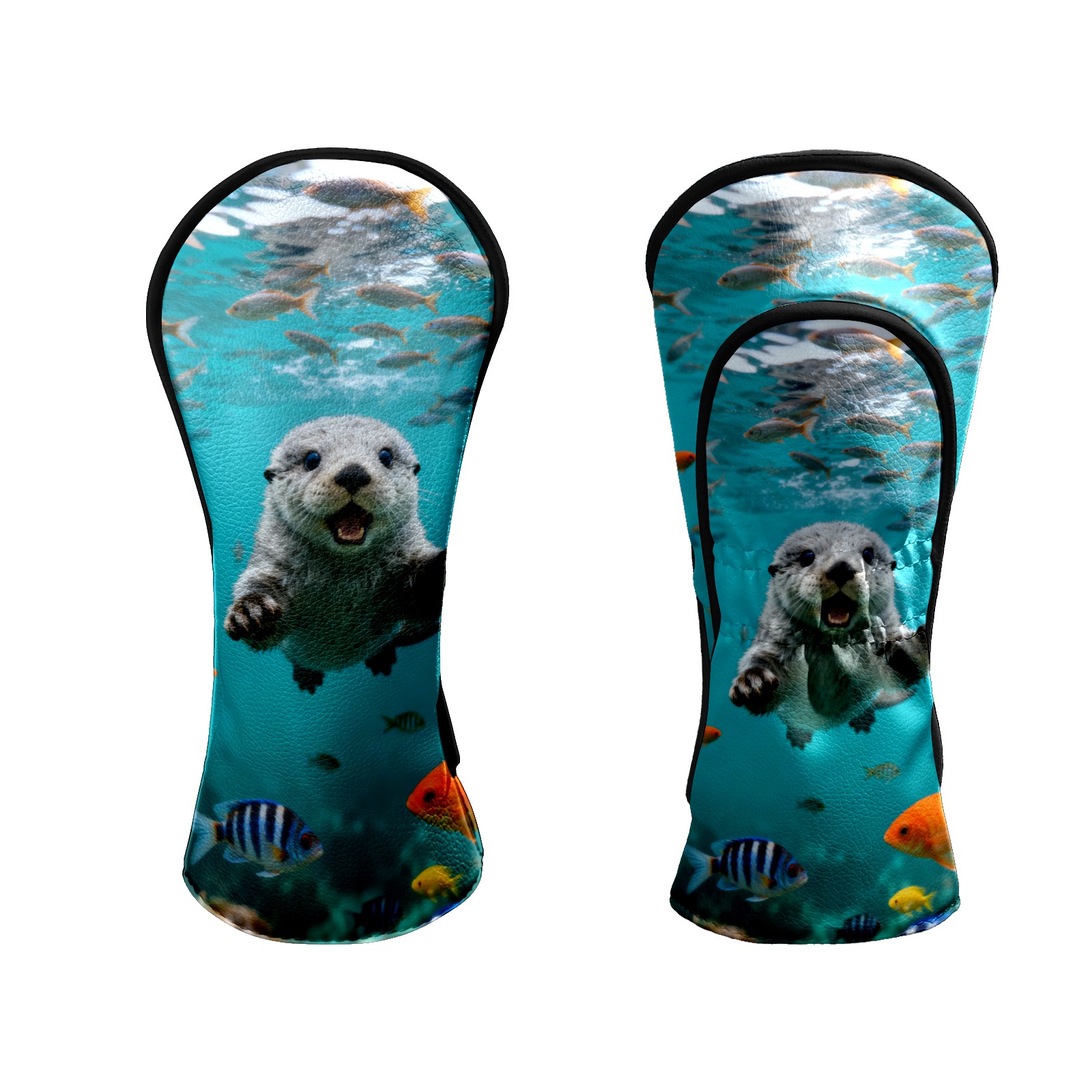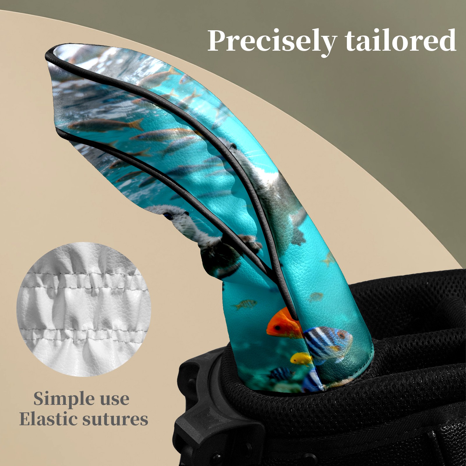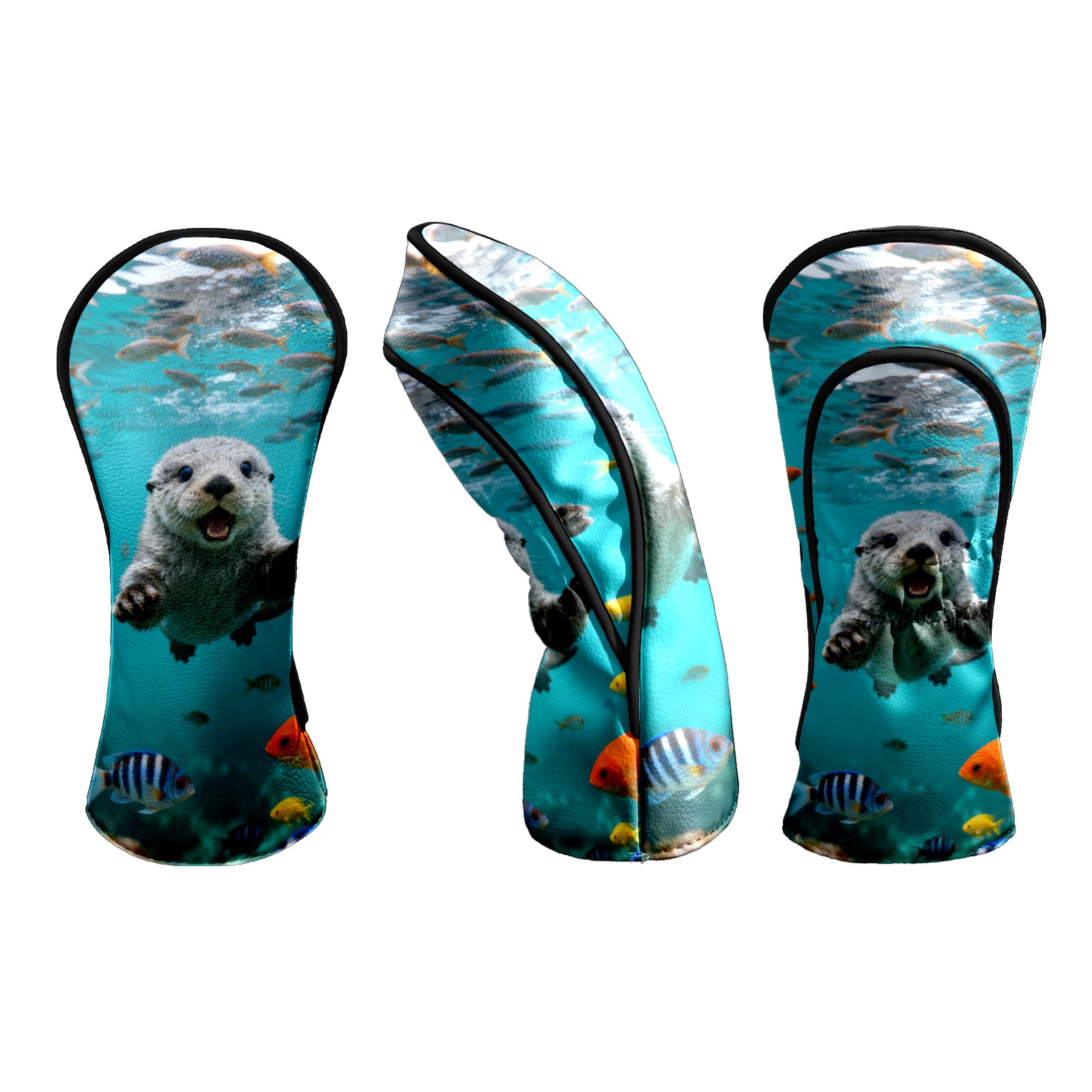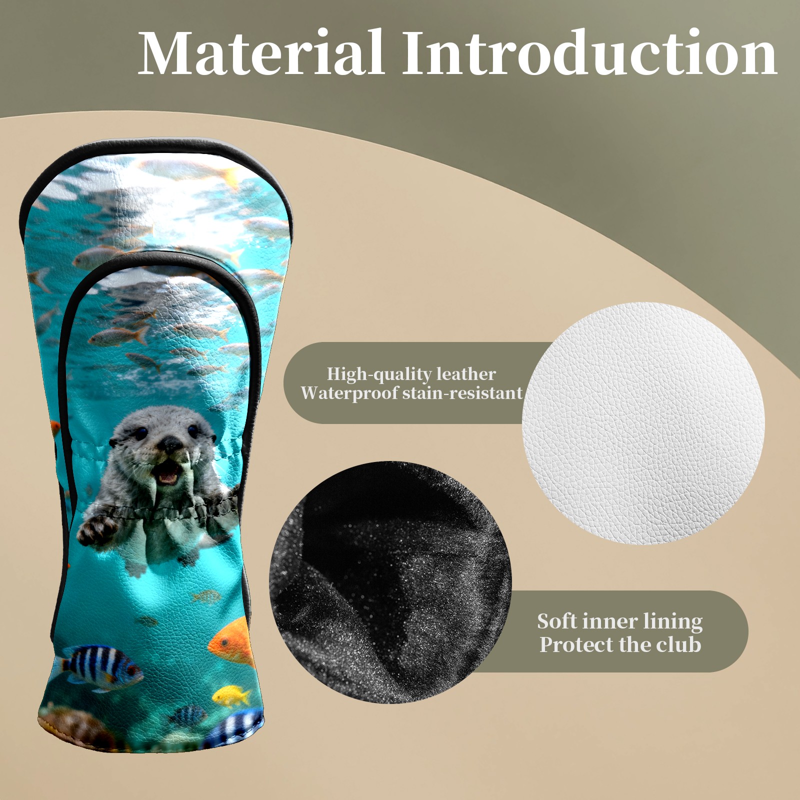 Premium Leather Golf Club Headcovers,School Of Otters Fits Driver Hybrid Fairway 3/5 Wood,with Scratch-Resistant Lining, Gift for Men and Women