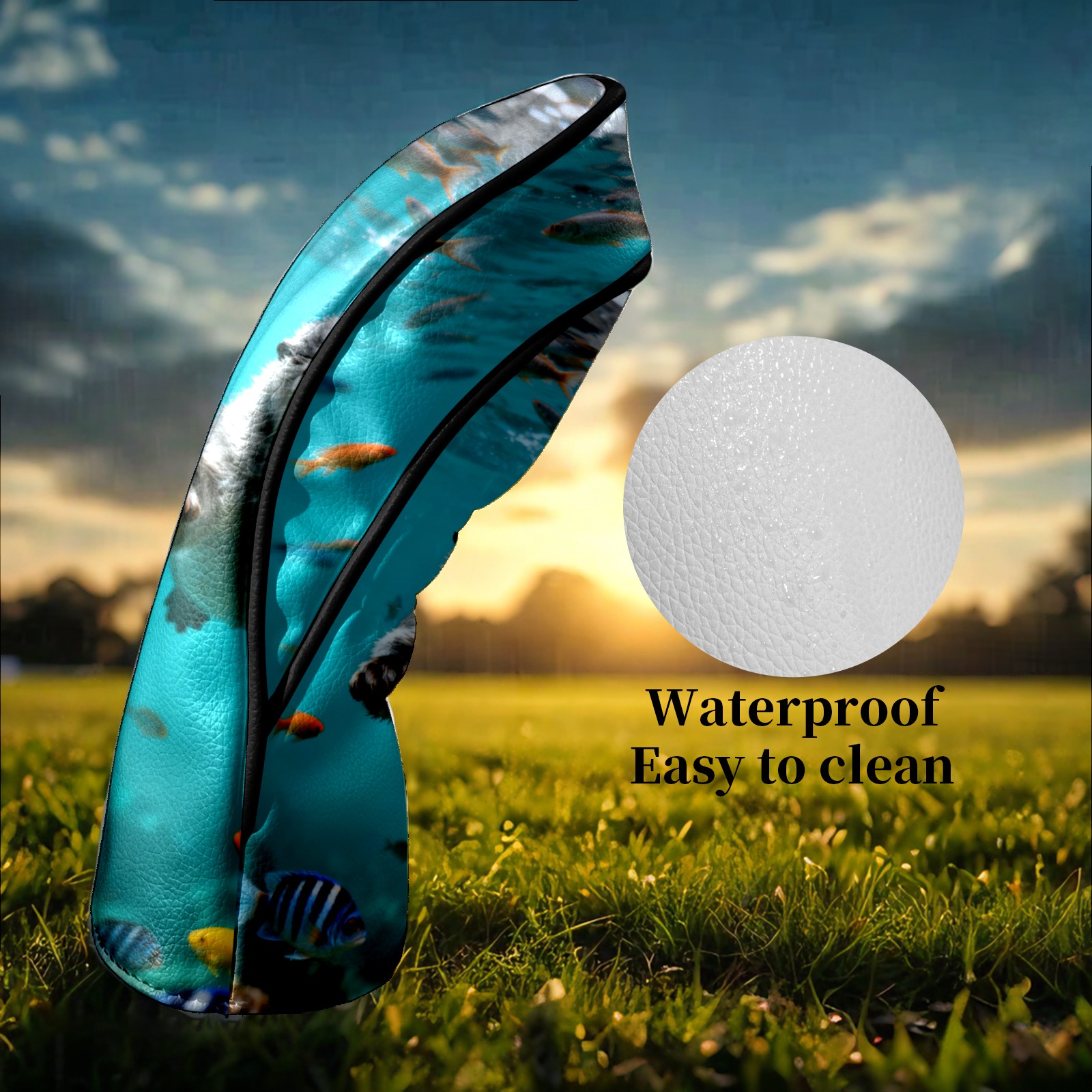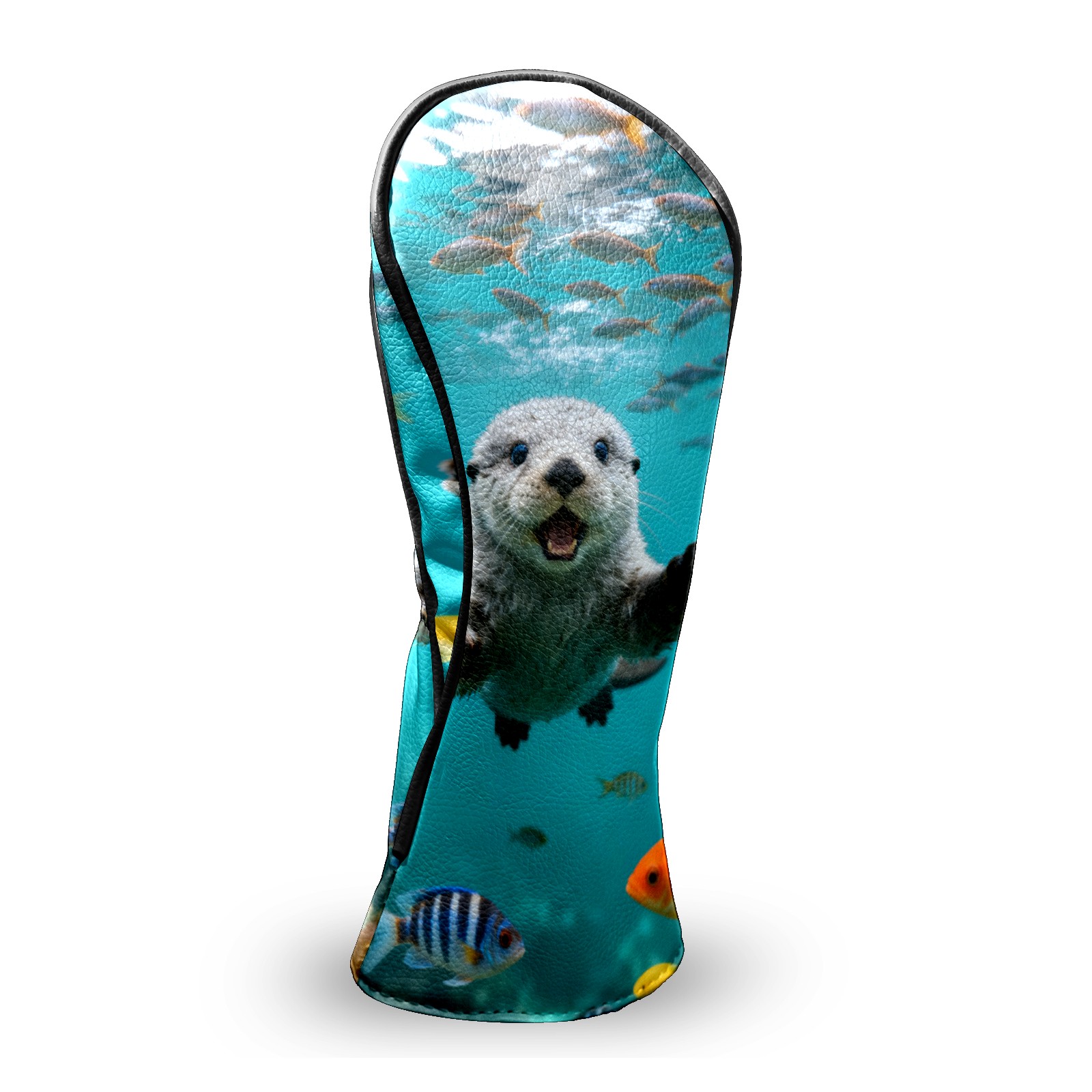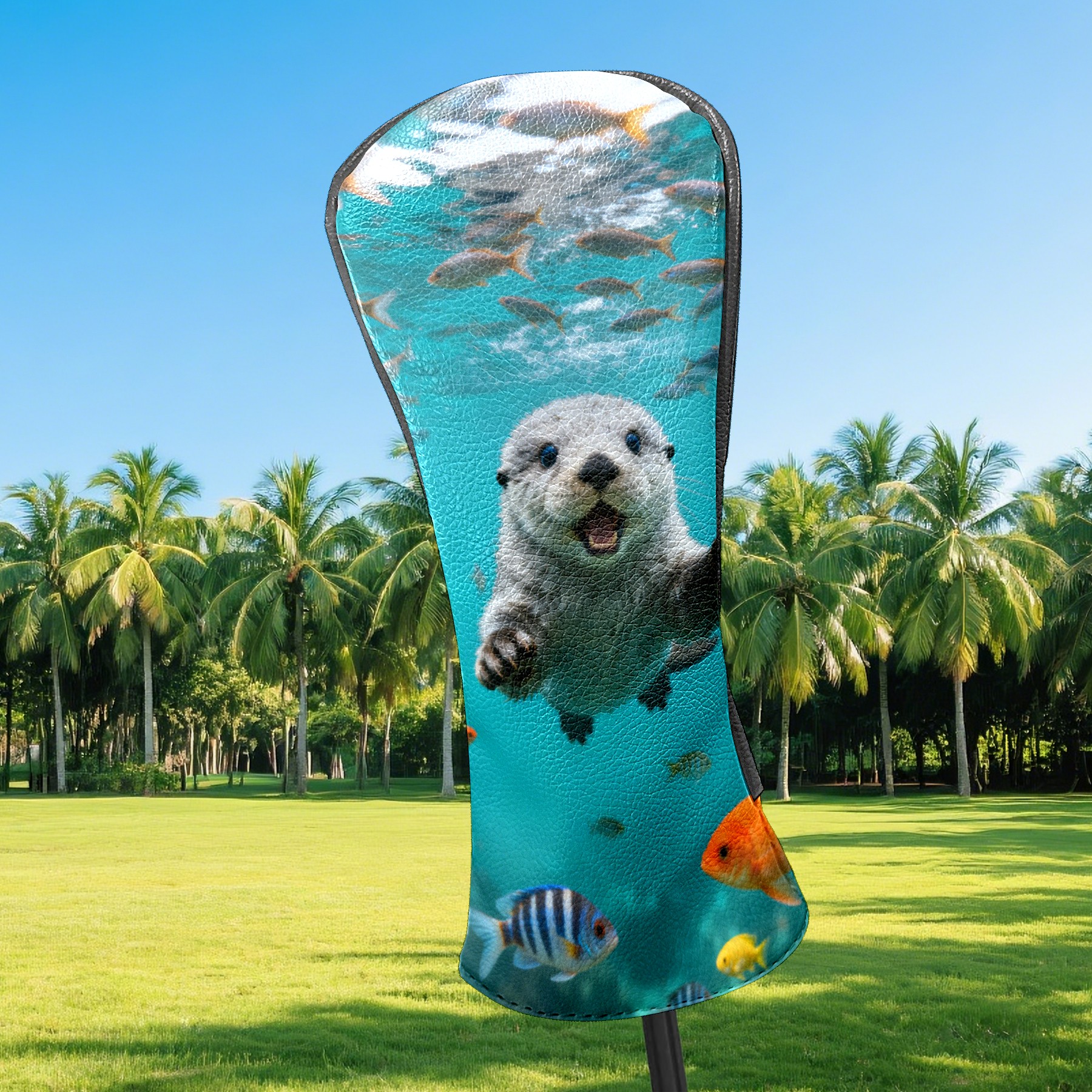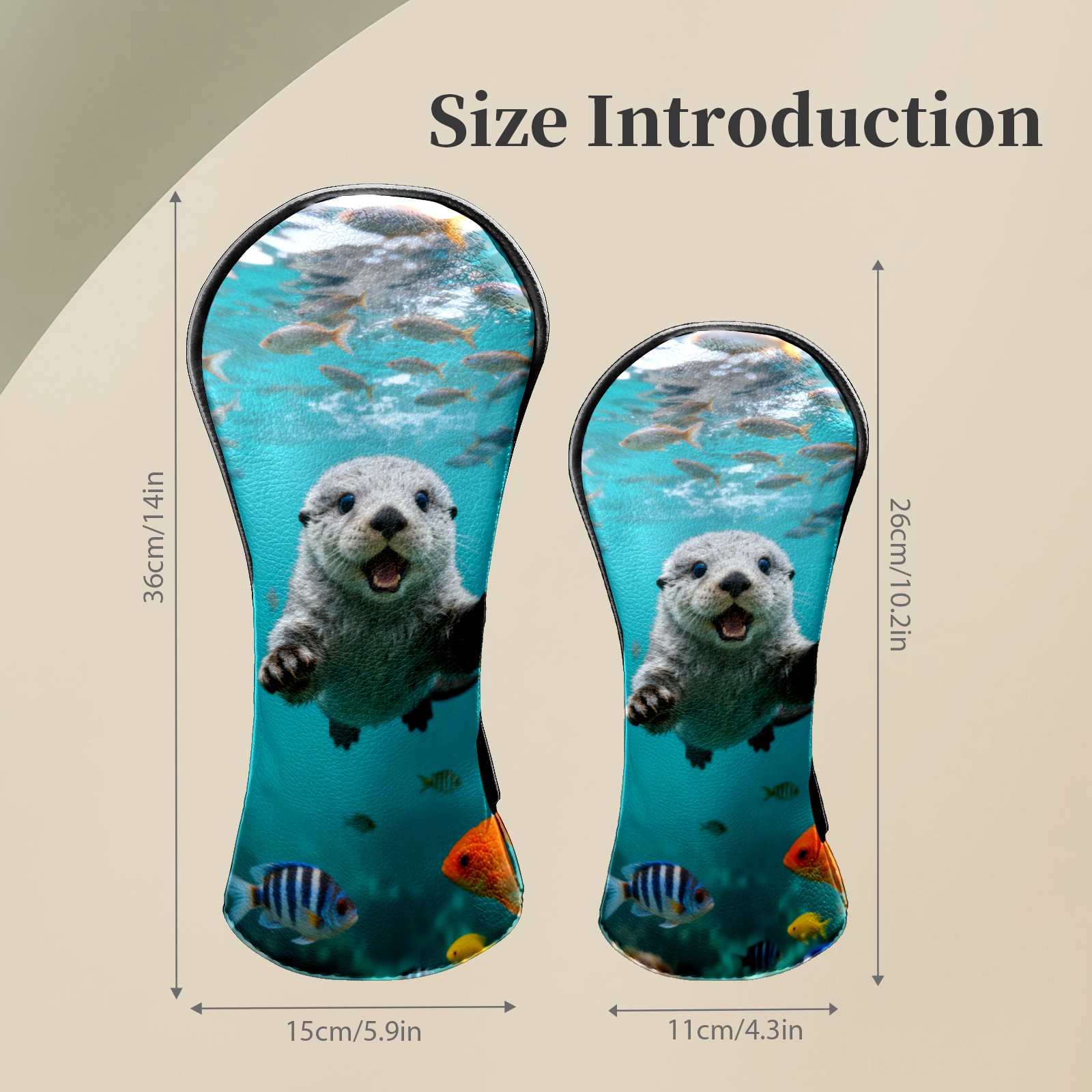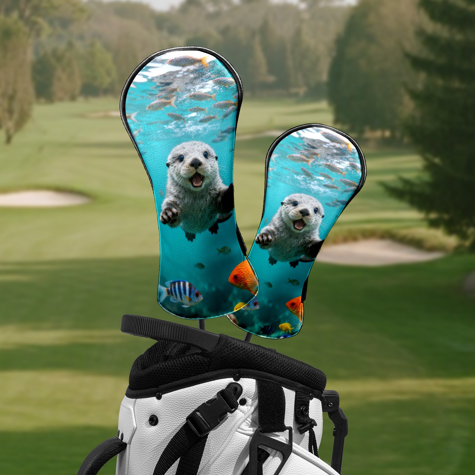 Premium Leather Golf Club Headcovers,School Of Otters Fits Driver Hybrid Fairway 3/5 Wood,with Scratch-Resistant Lining, Gift for Men and Women