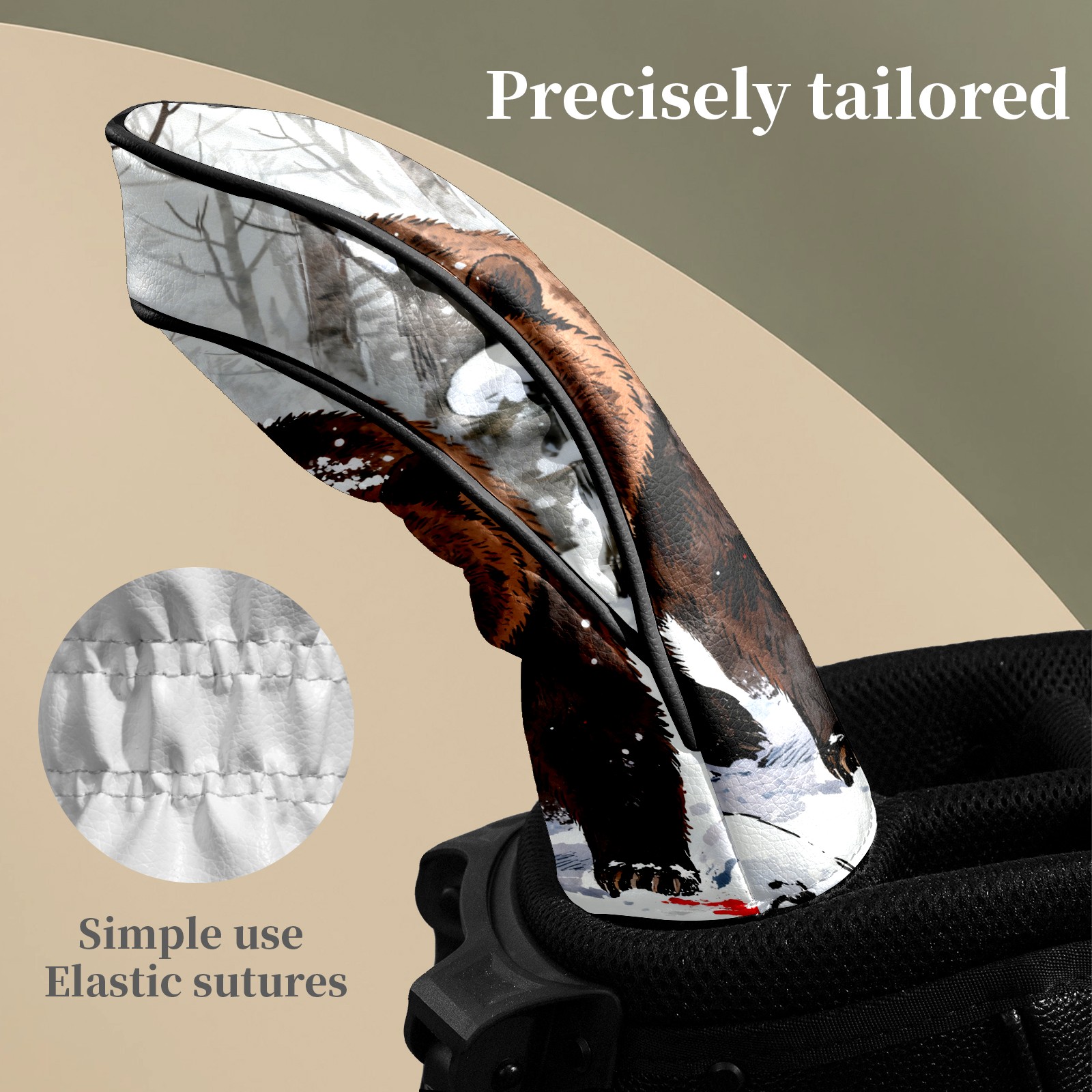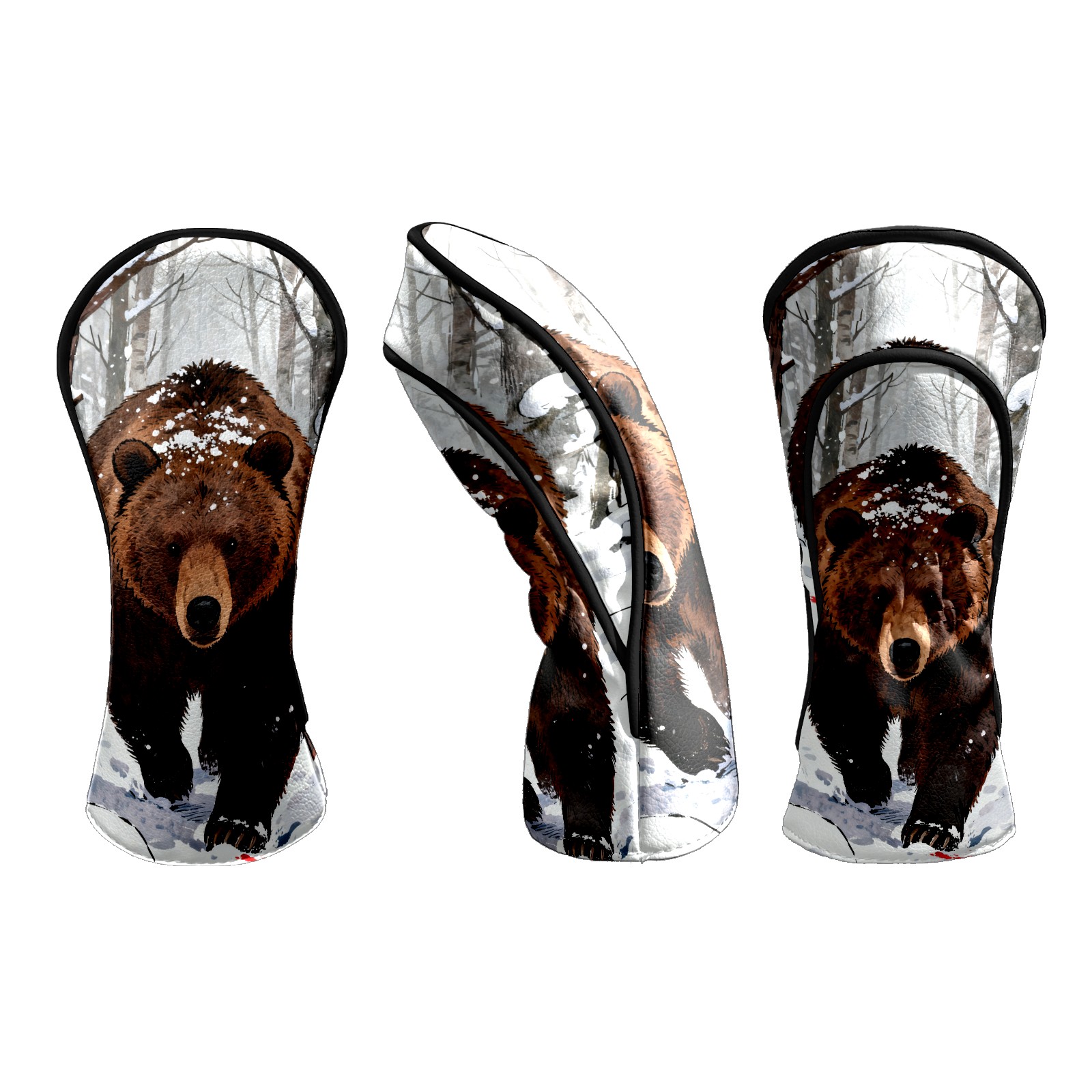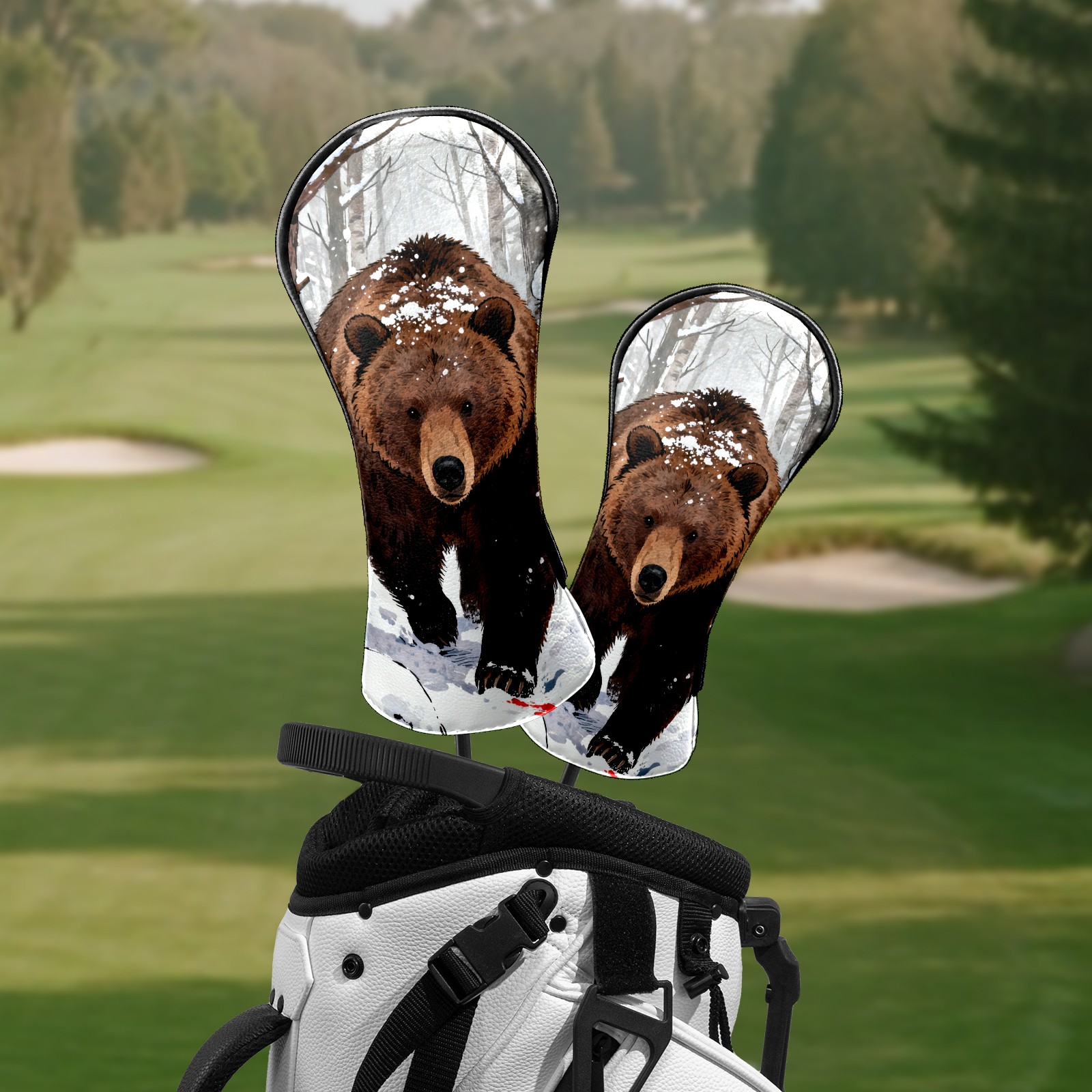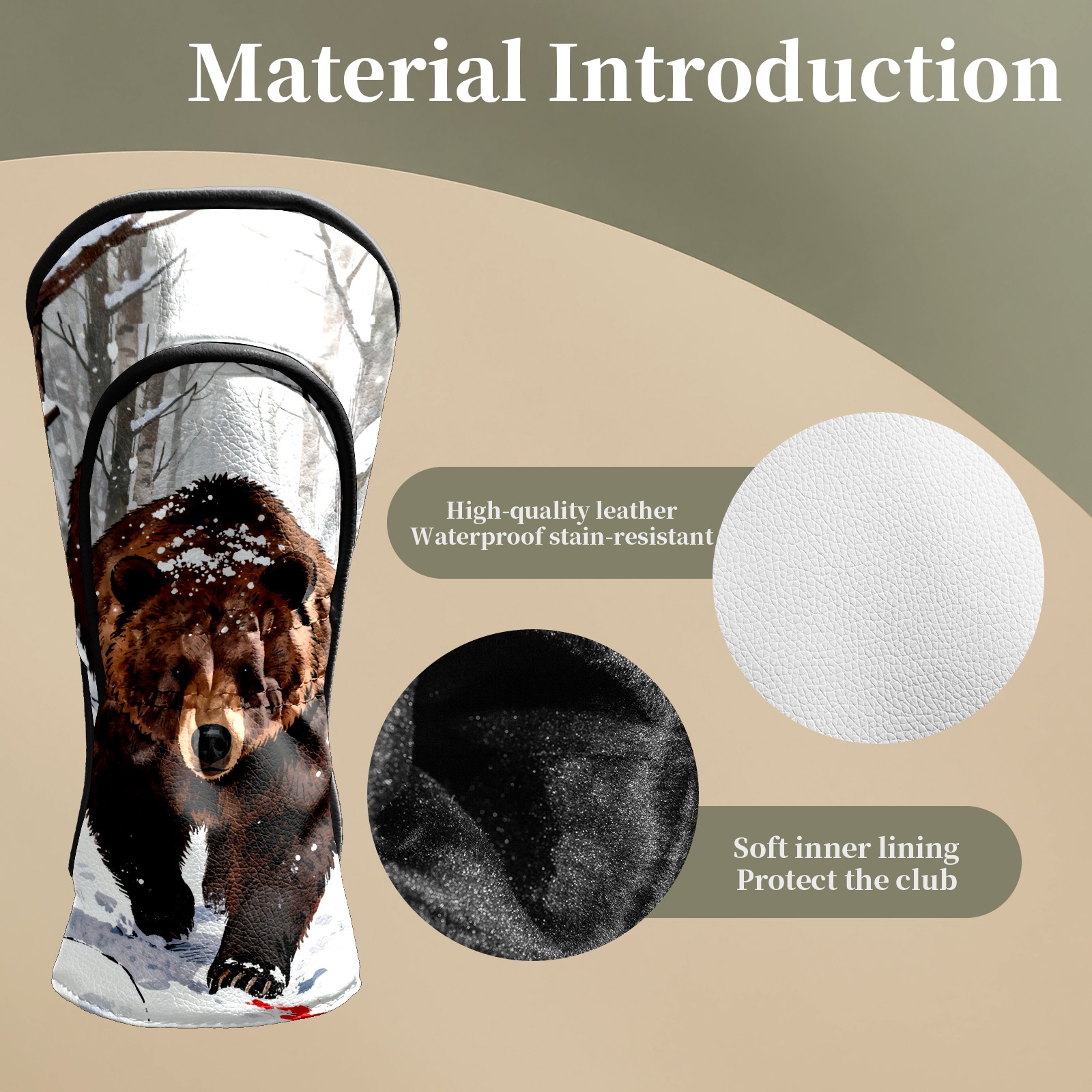Premium Leather Golf Club Headcovers,Snow Brown Bear Fits Driver Hybrid Fairway 3/5 Wood,with Scratch-Resistant Lining, Gift for Men and Women