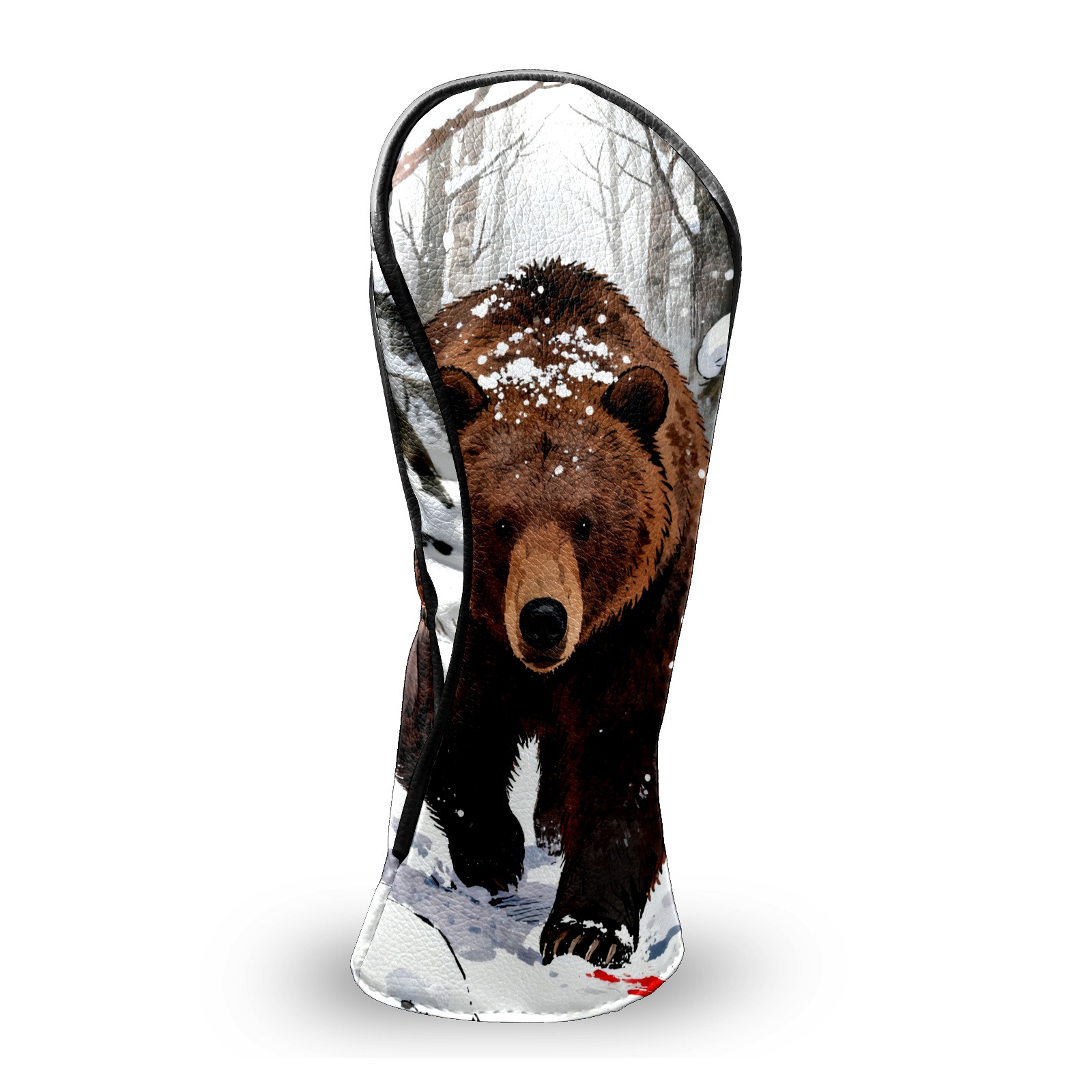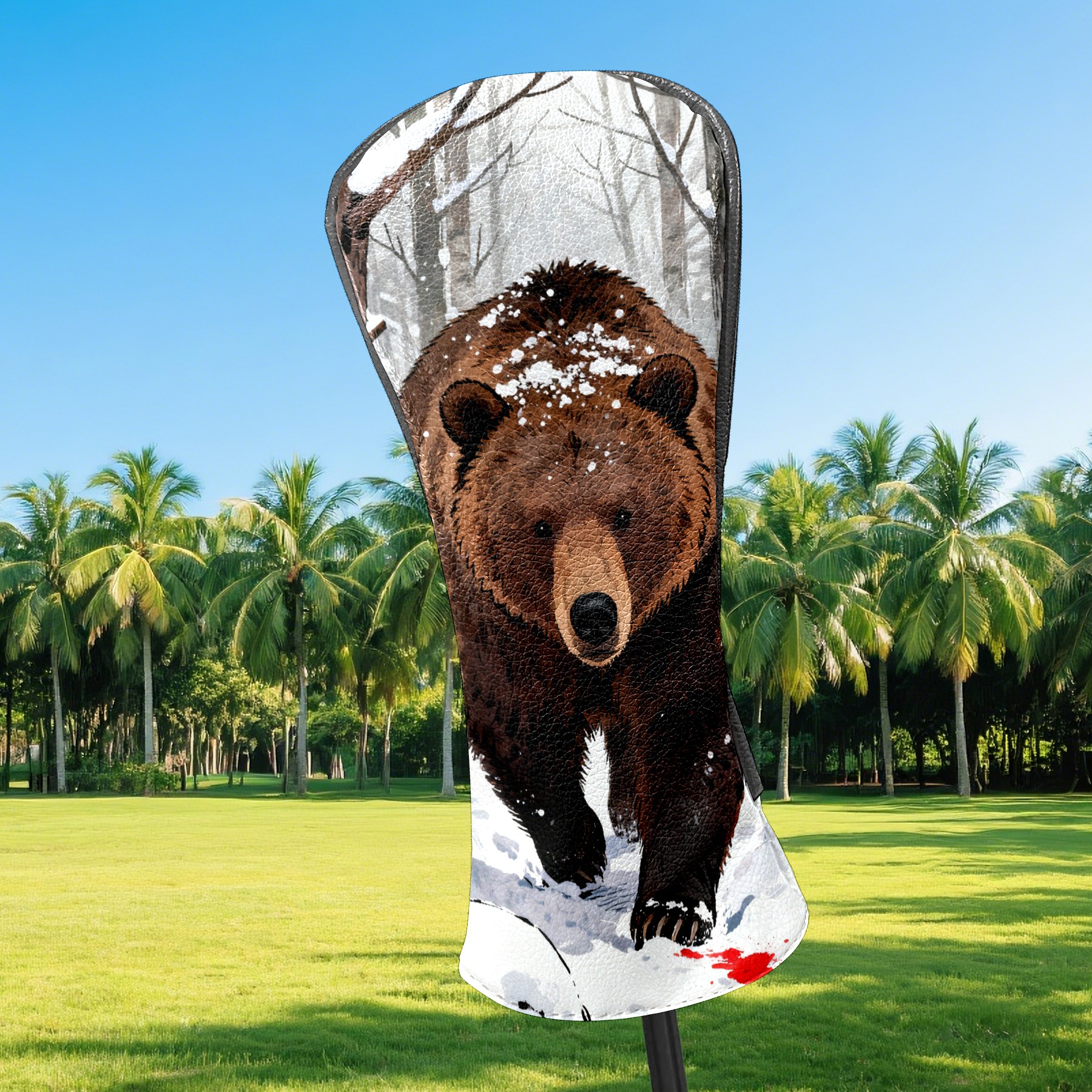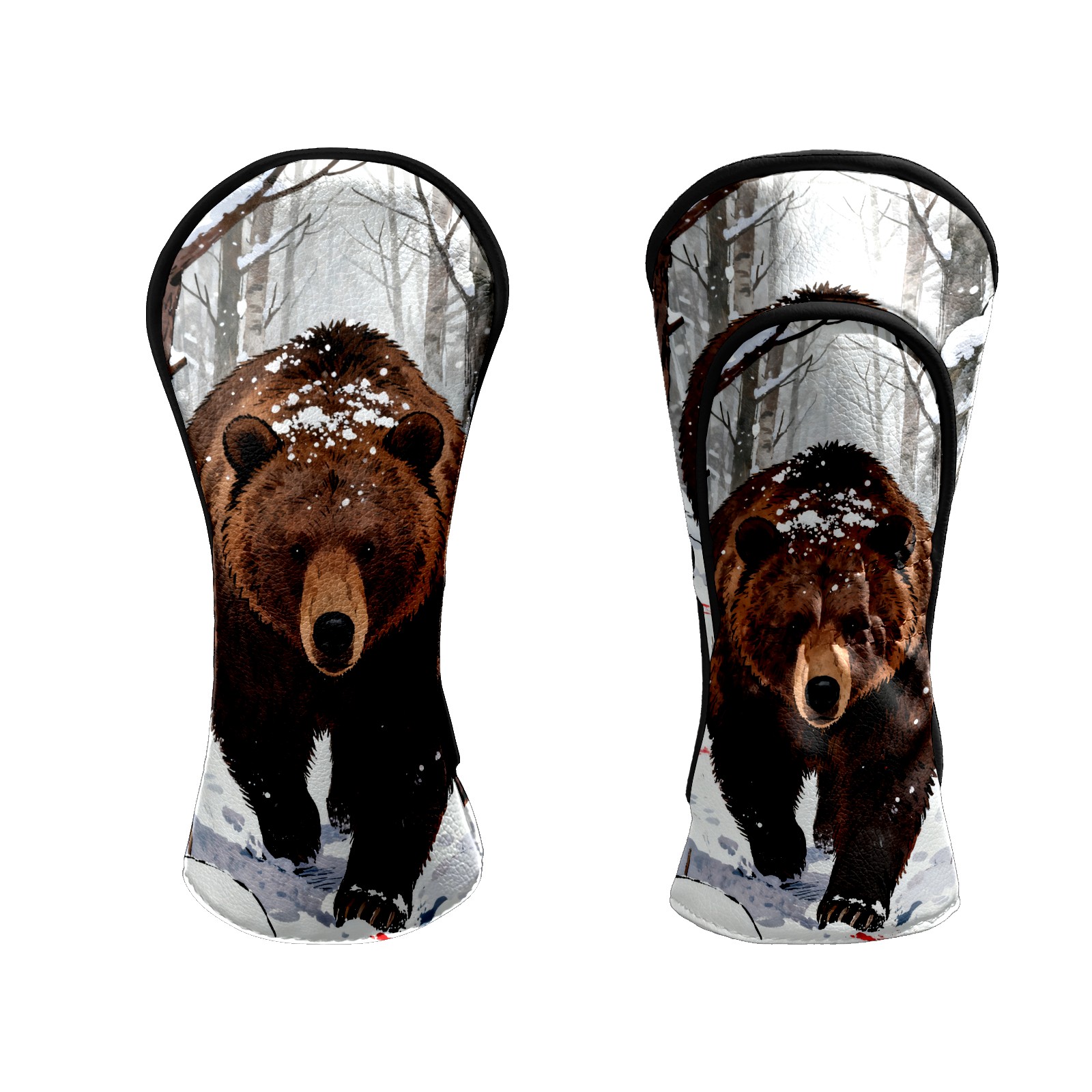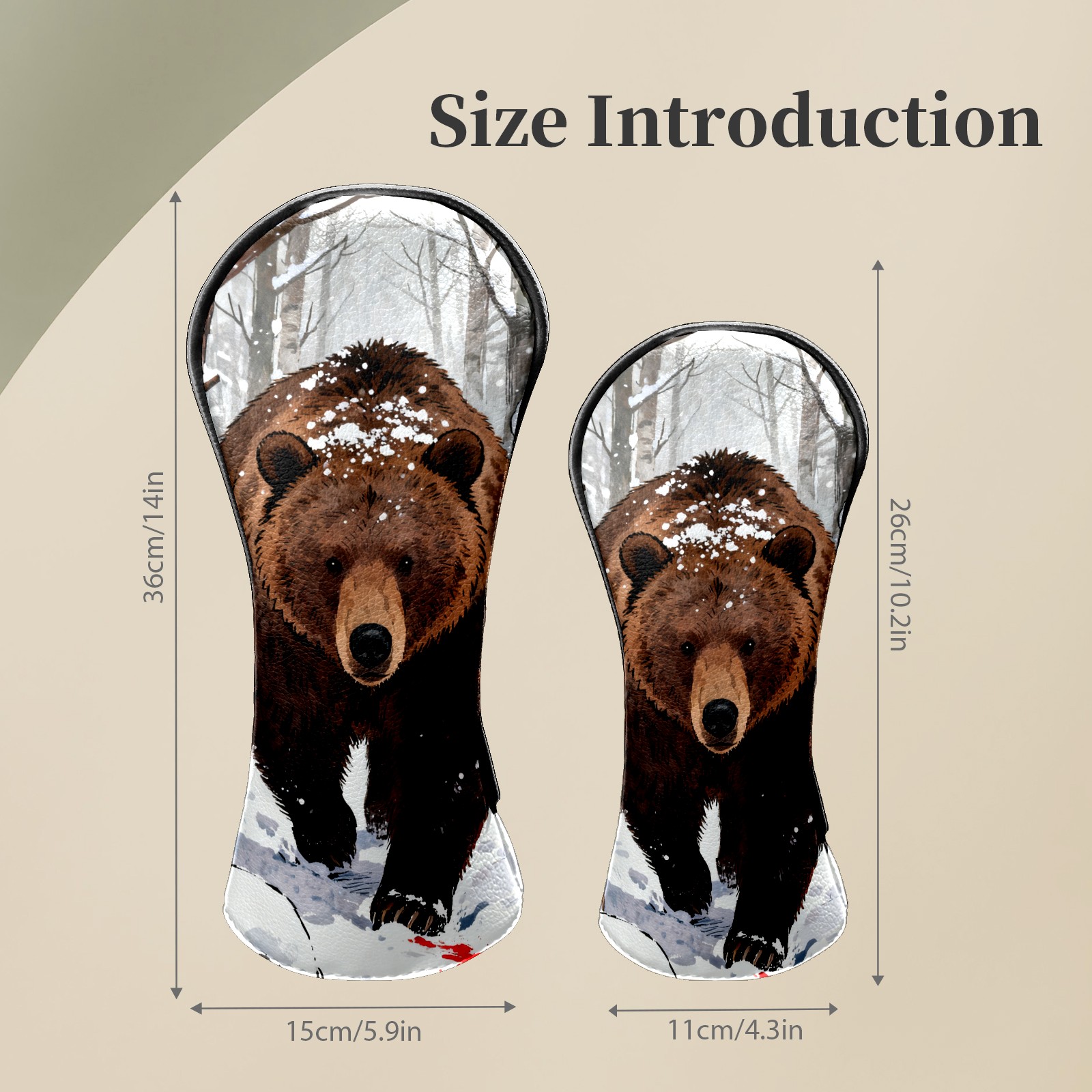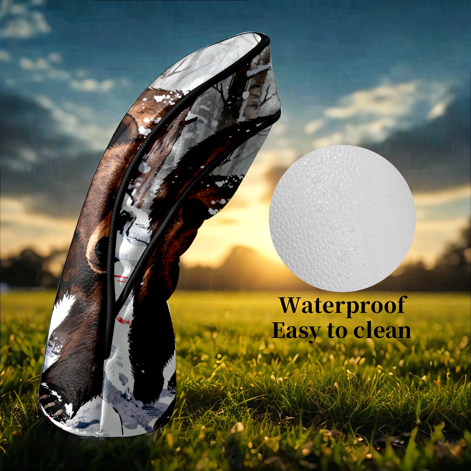 Premium Leather Golf Club Headcovers,Snow Brown Bear Fits Driver Hybrid Fairway 3/5 Wood,with Scratch-Resistant Lining, Gift for Men and Women