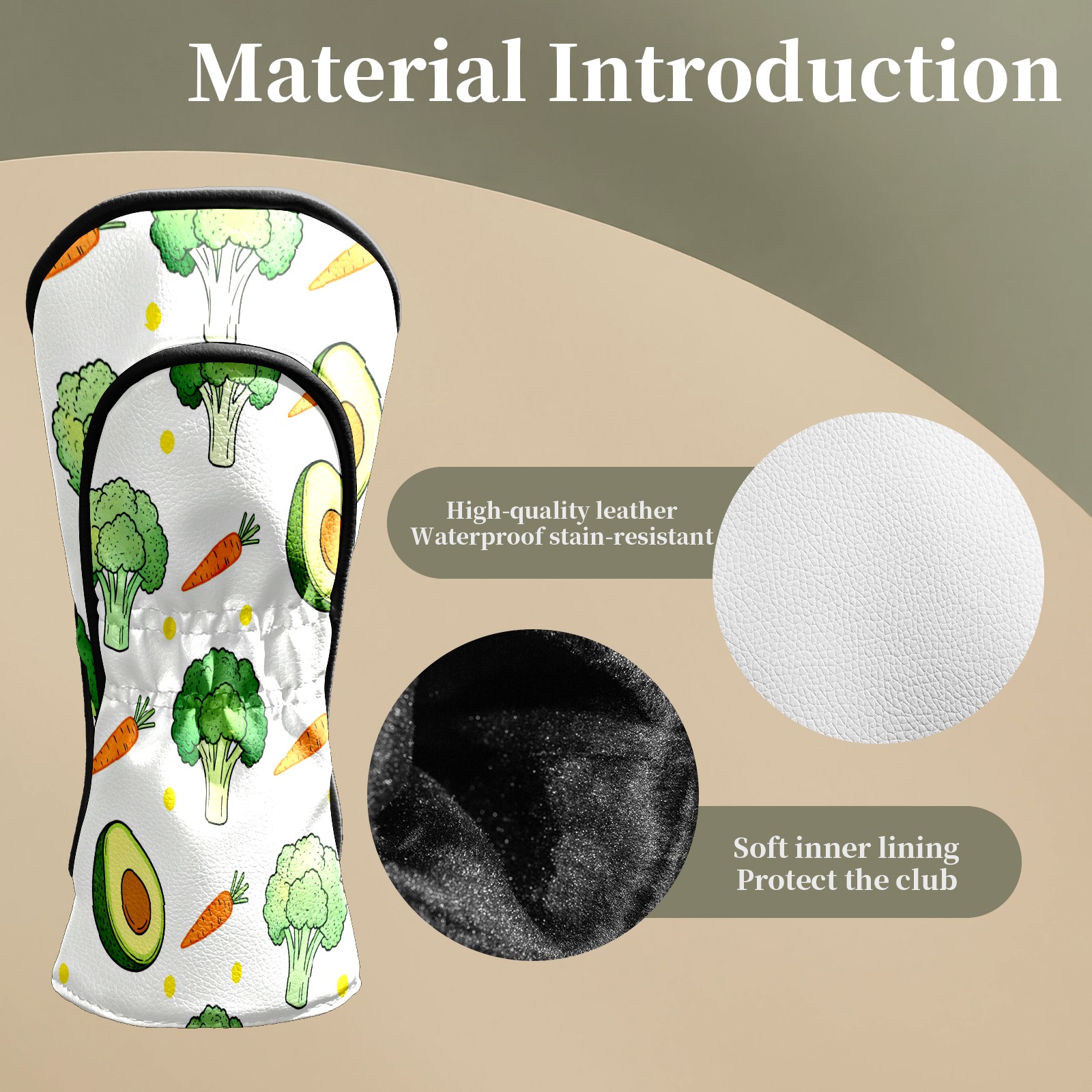 Premium Leather Golf Club Headcovers,Vegetable Pattern Fits Driver Hybrid Fairway 3/5 Wood,with Scratch-Resistant Lining, Gift for Men and Women