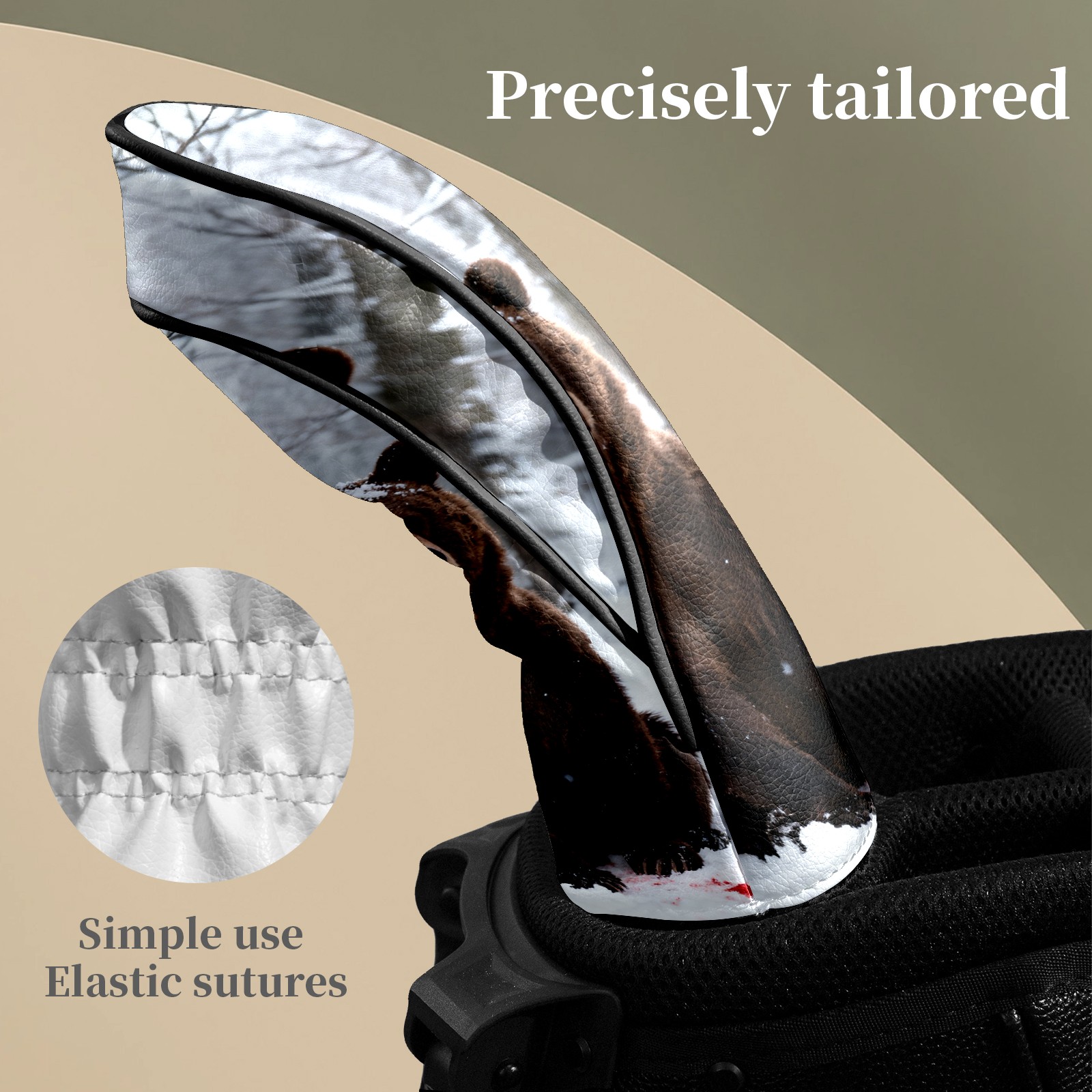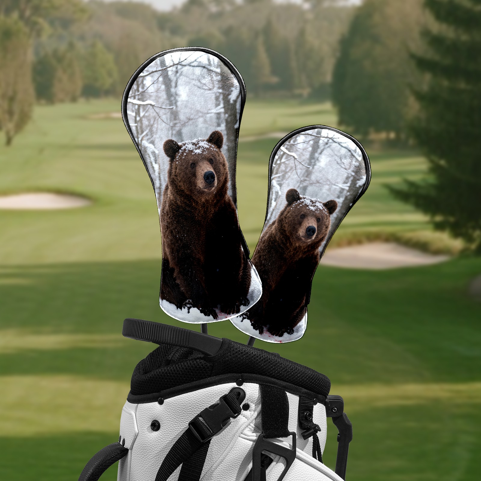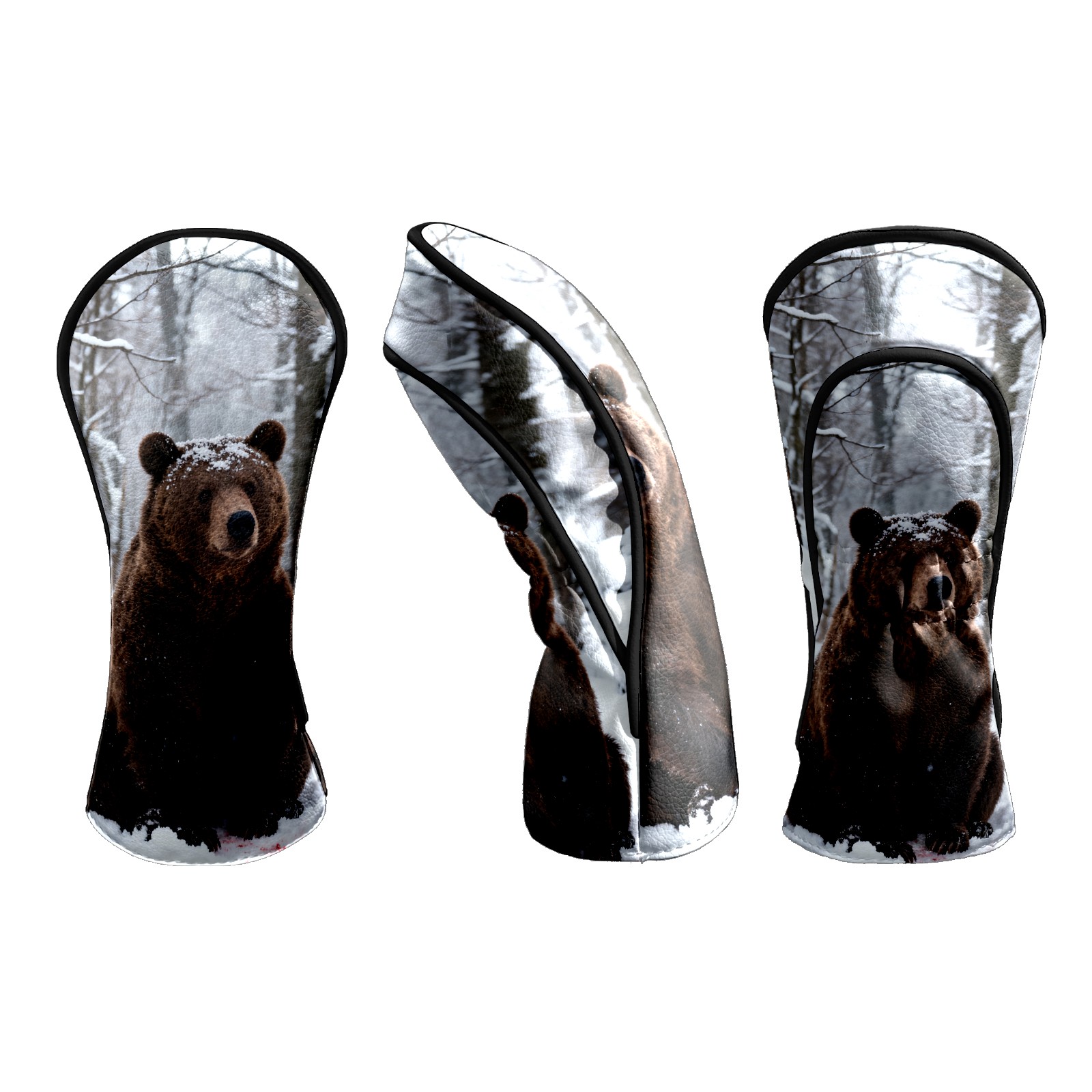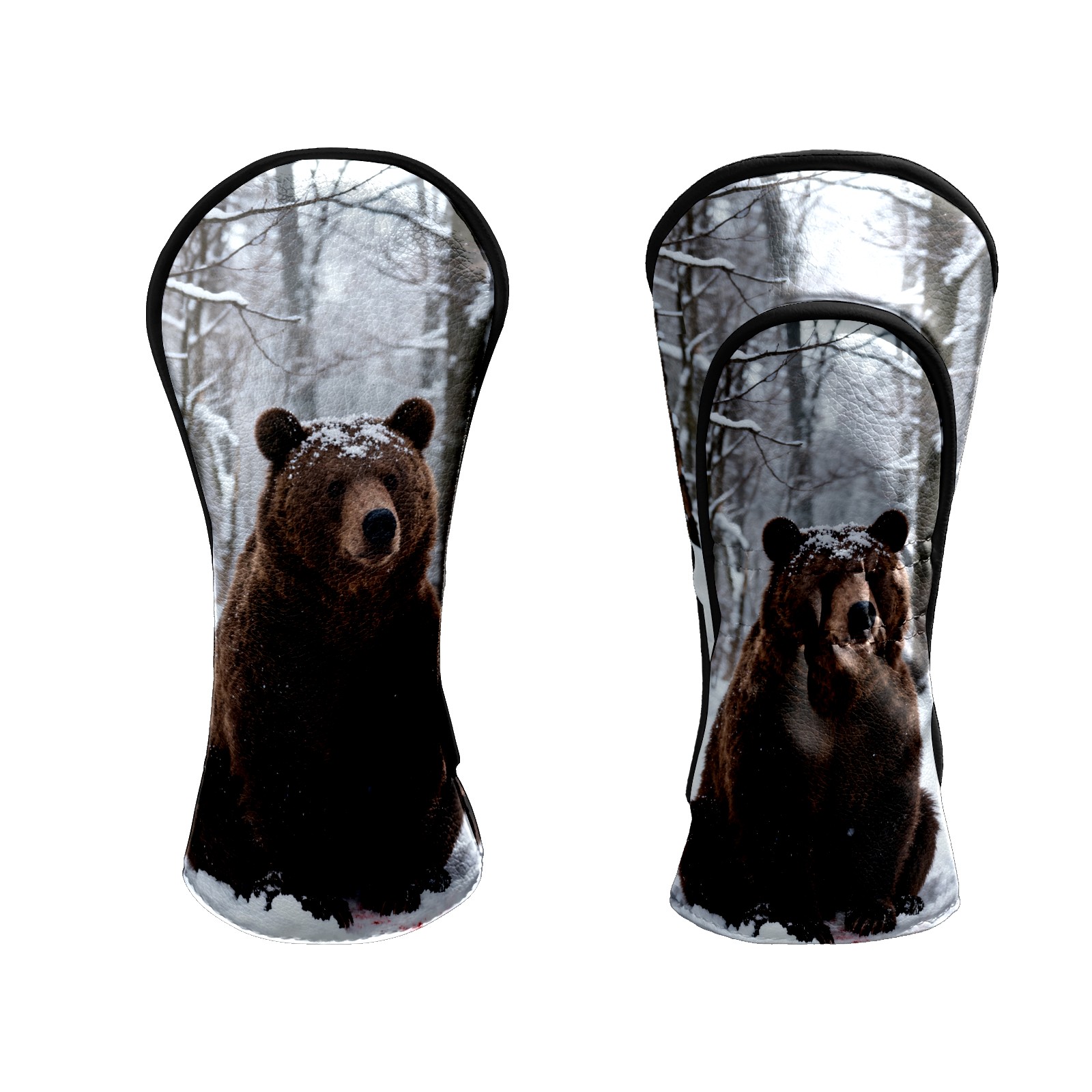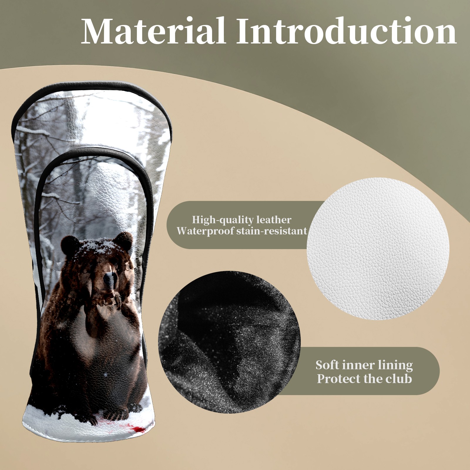 Premium Leather Golf Club Headcovers,Brown Bear Fits Driver Hybrid Fairway 3/5 Wood,with Scratch-Resistant Lining, Gift for Men and Women