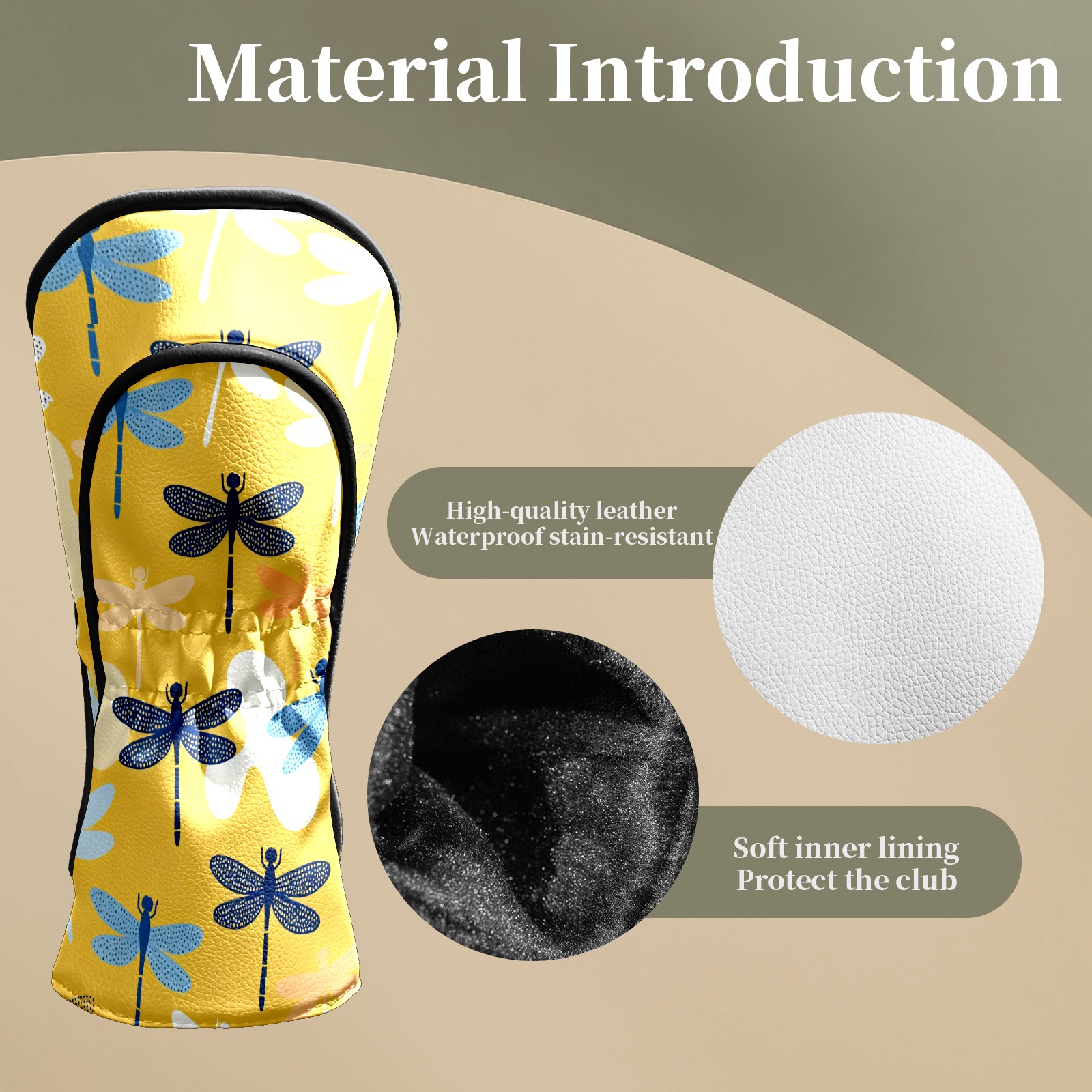 Premium Leather Golf Club Headcovers,Dragonfly (1) Fits Driver Hybrid Fairway 3/5 Wood,with Scratch-Resistant Lining, Gift for Men and Women
