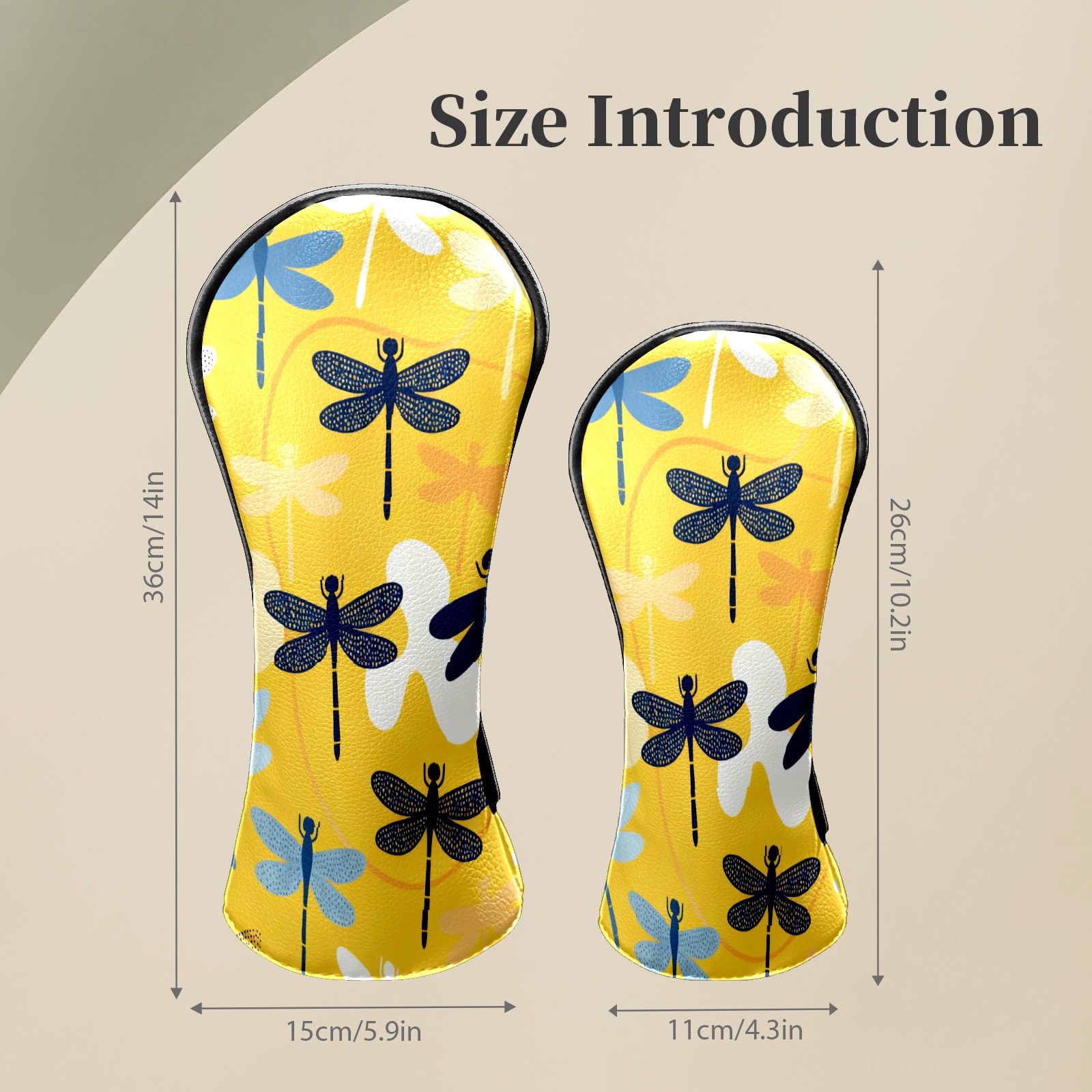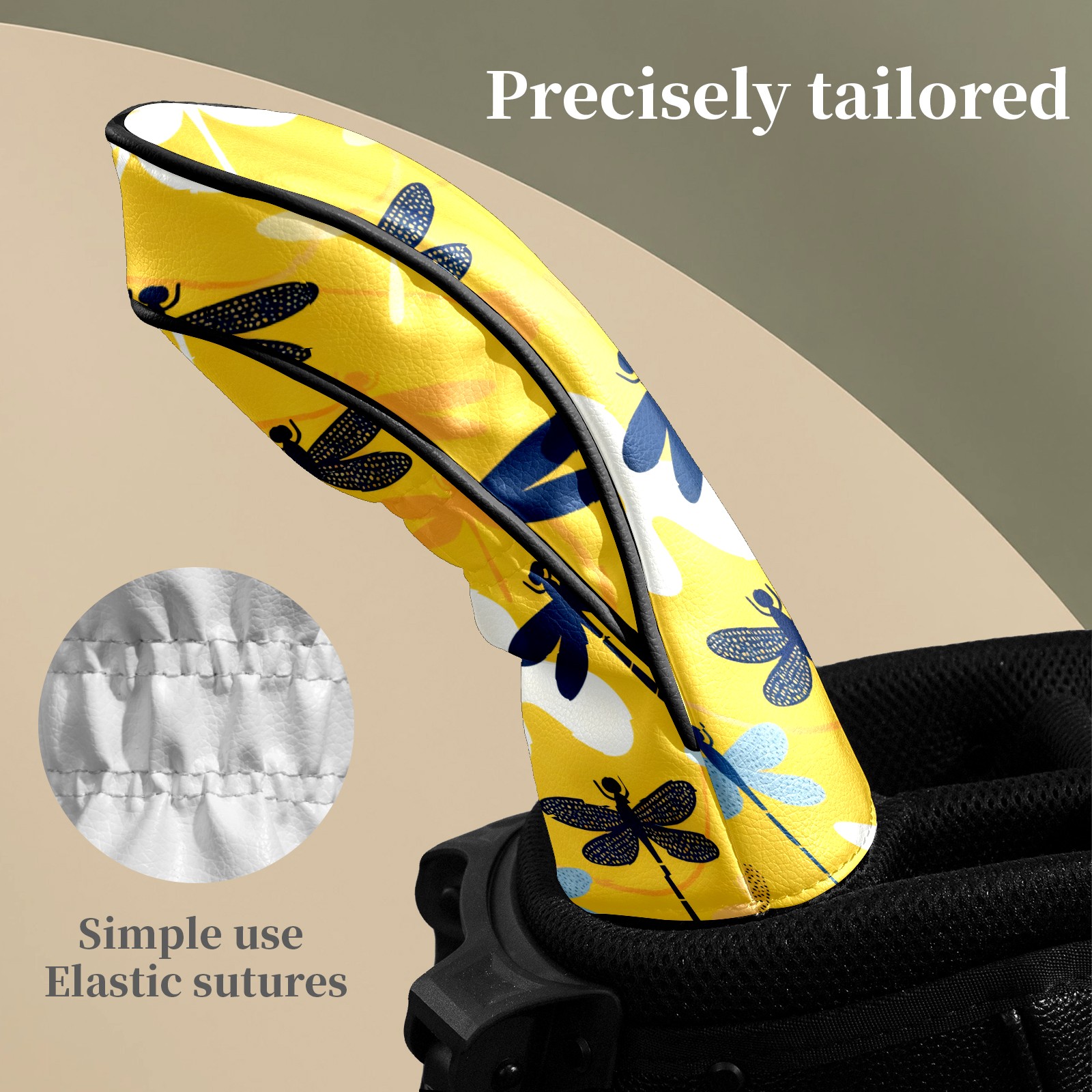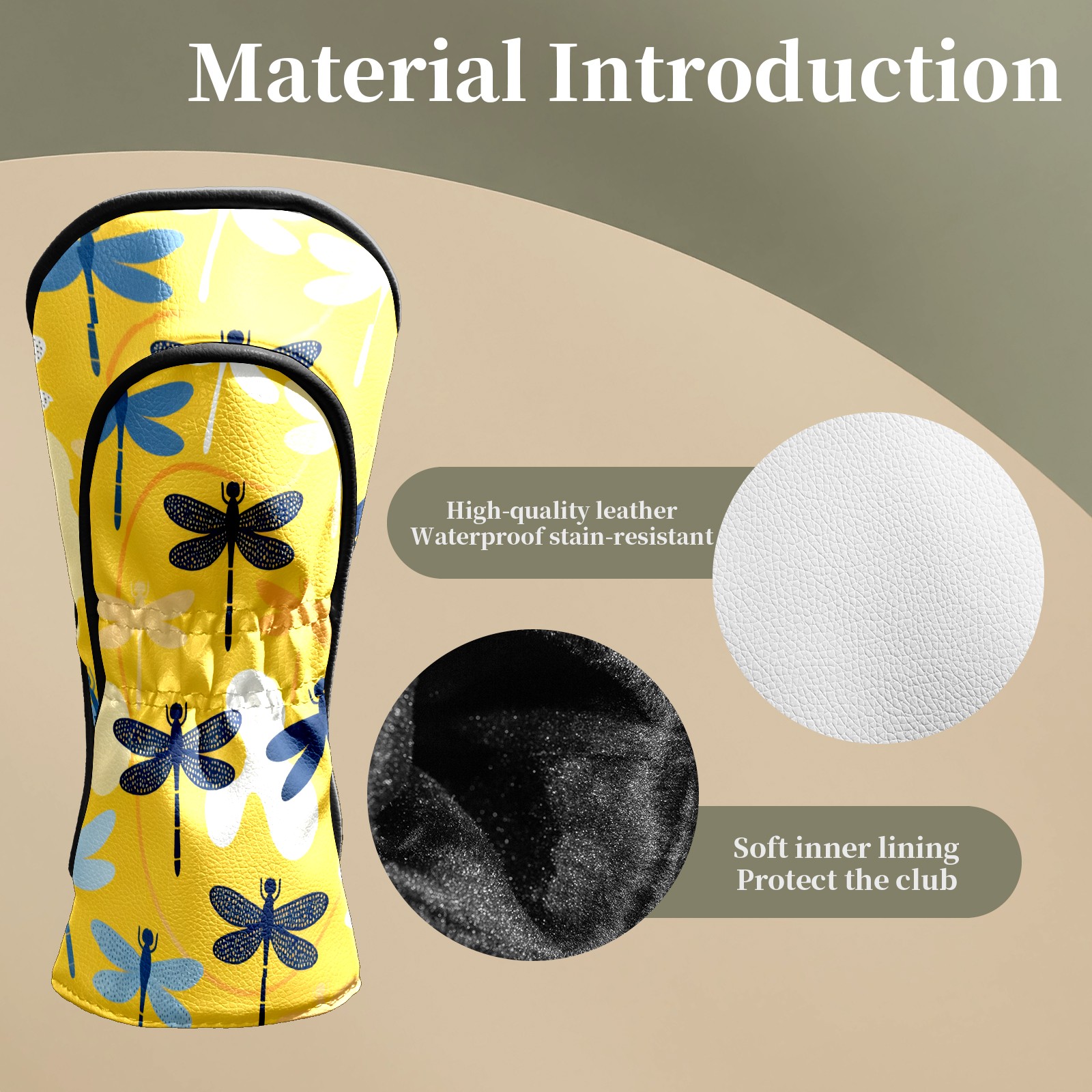 Premium Leather Golf Club Headcovers,Dragonfly Fits Driver Hybrid Fairway 3/5 Wood,with Scratch-Resistant Lining, Gift for Men and Women