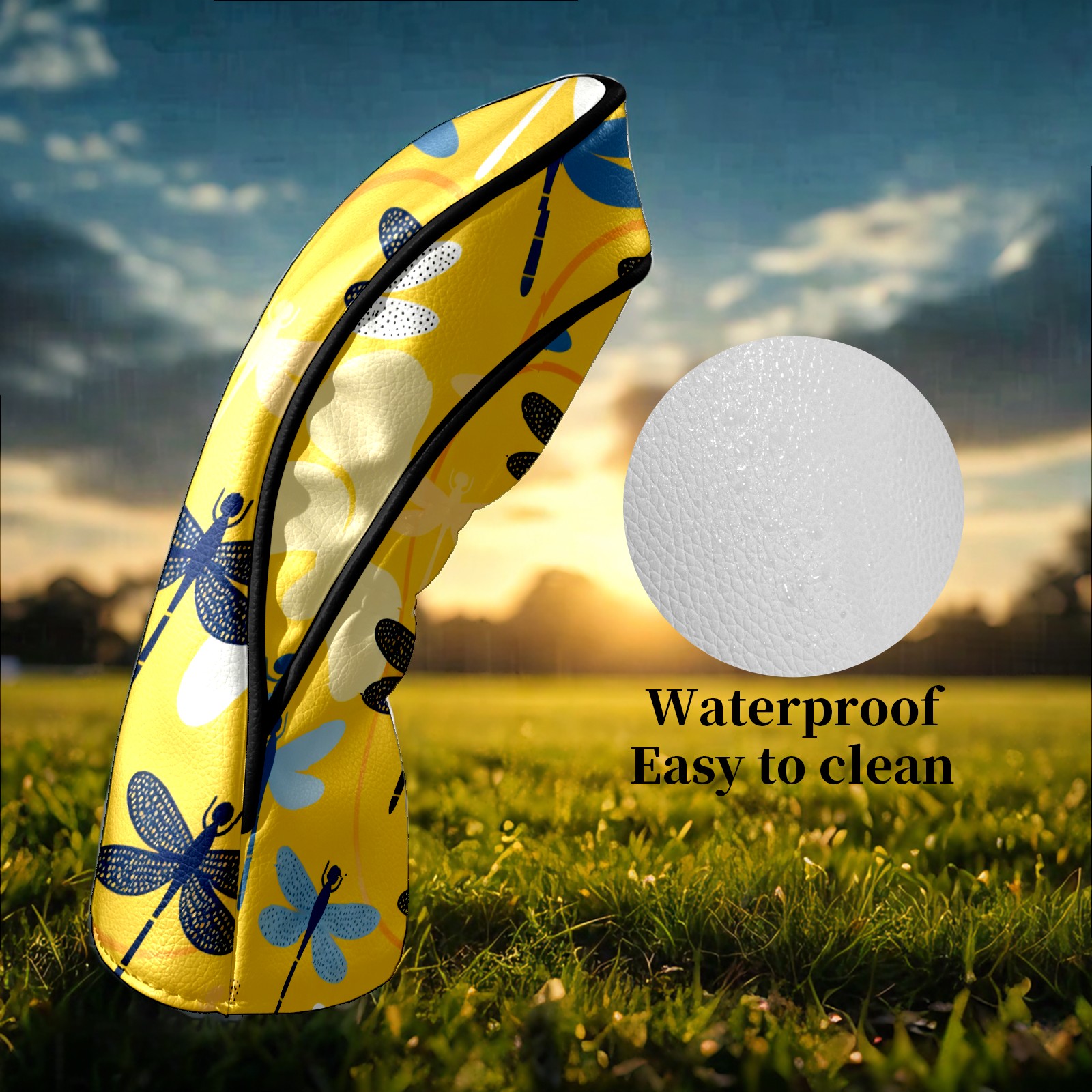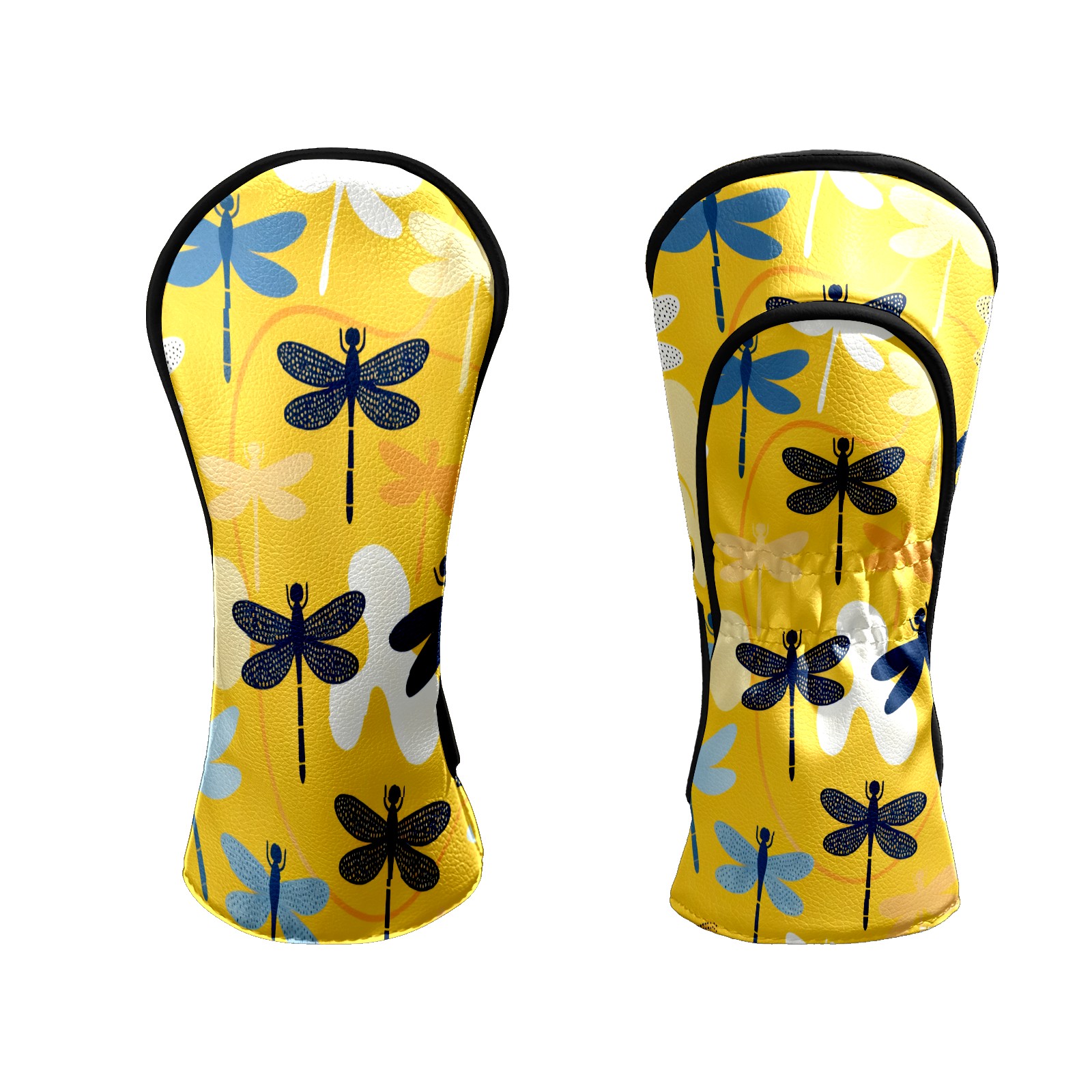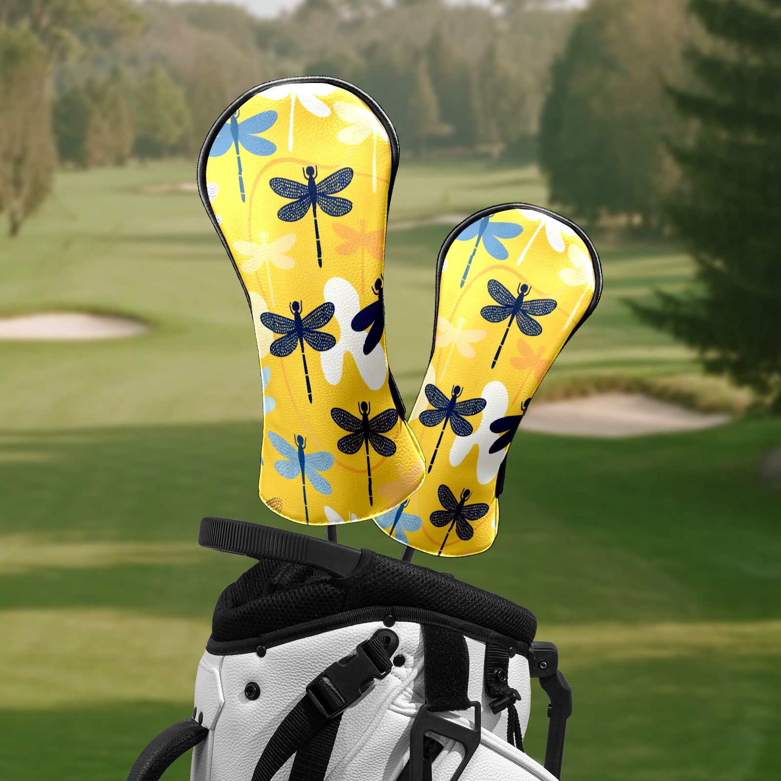 Premium Leather Golf Club Headcovers,Dragonfly Fits Driver Hybrid Fairway 3/5 Wood,with Scratch-Resistant Lining, Gift for Men and Women