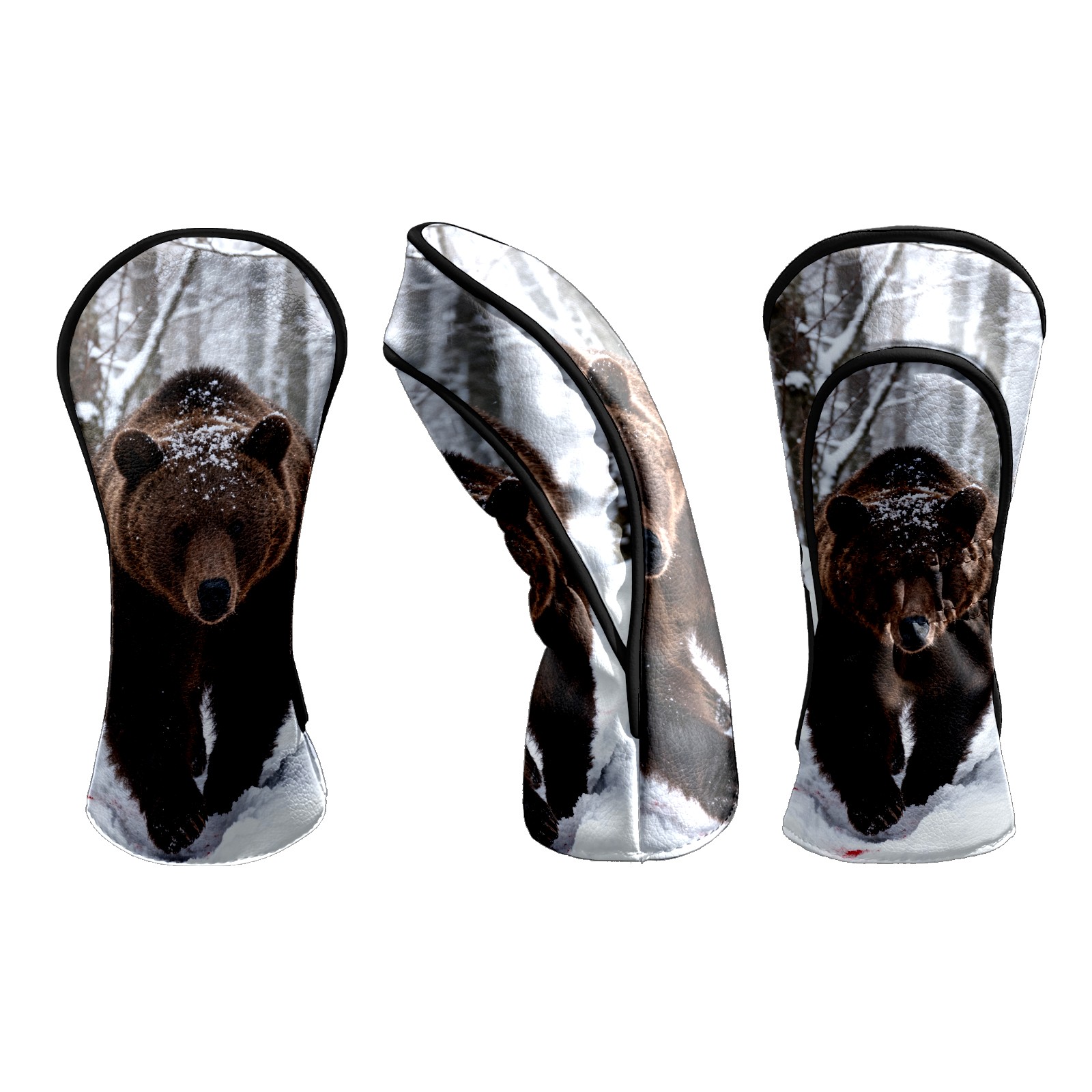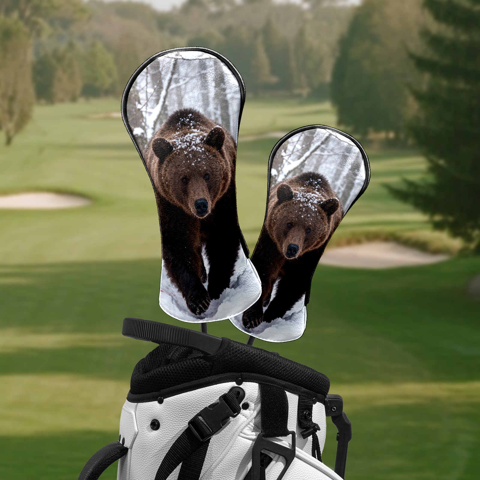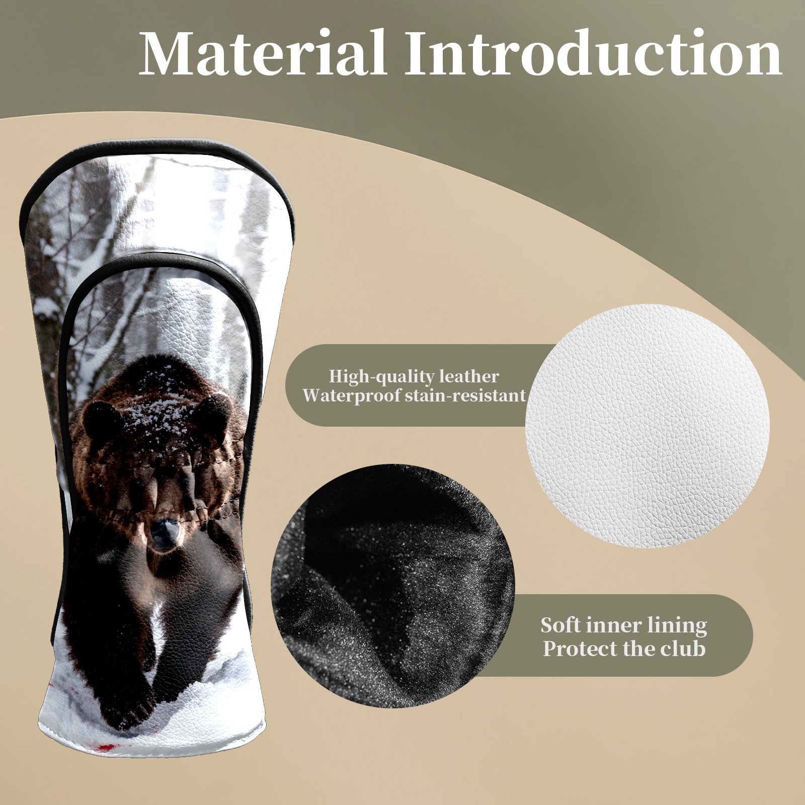 Premium Leather Golf Club Headcovers,Brown Bear (1) Fits Driver Hybrid Fairway 3/5 Wood,with Scratch-Resistant Lining, Gift for Men and Women