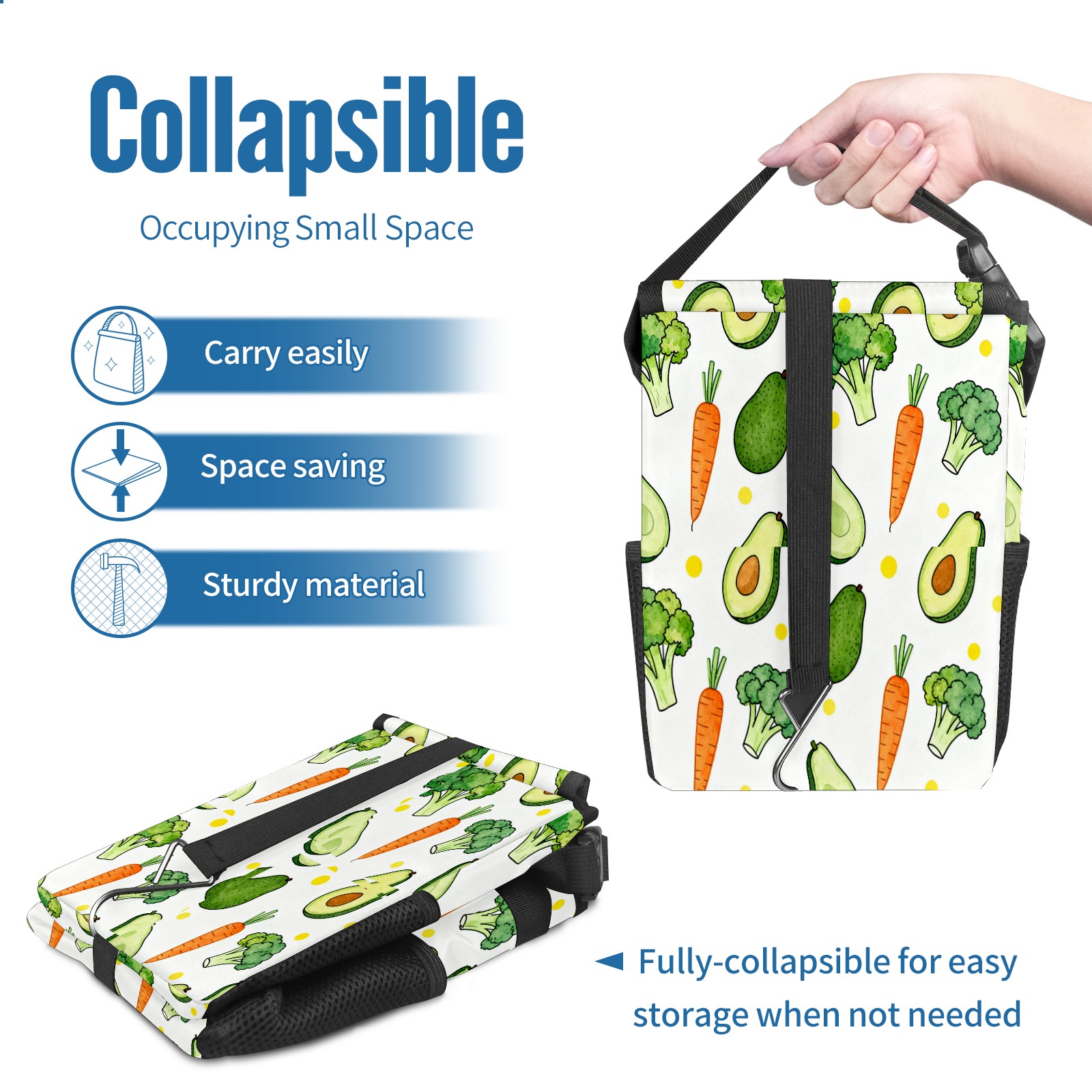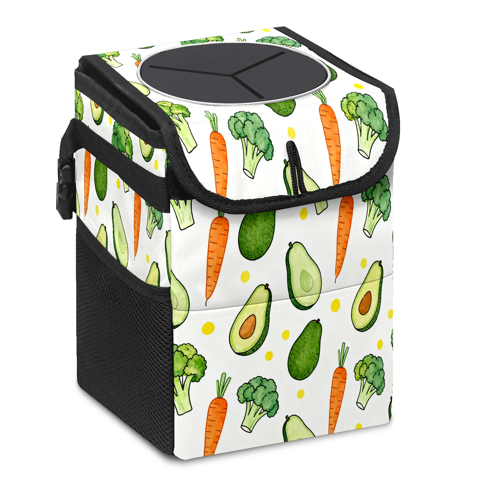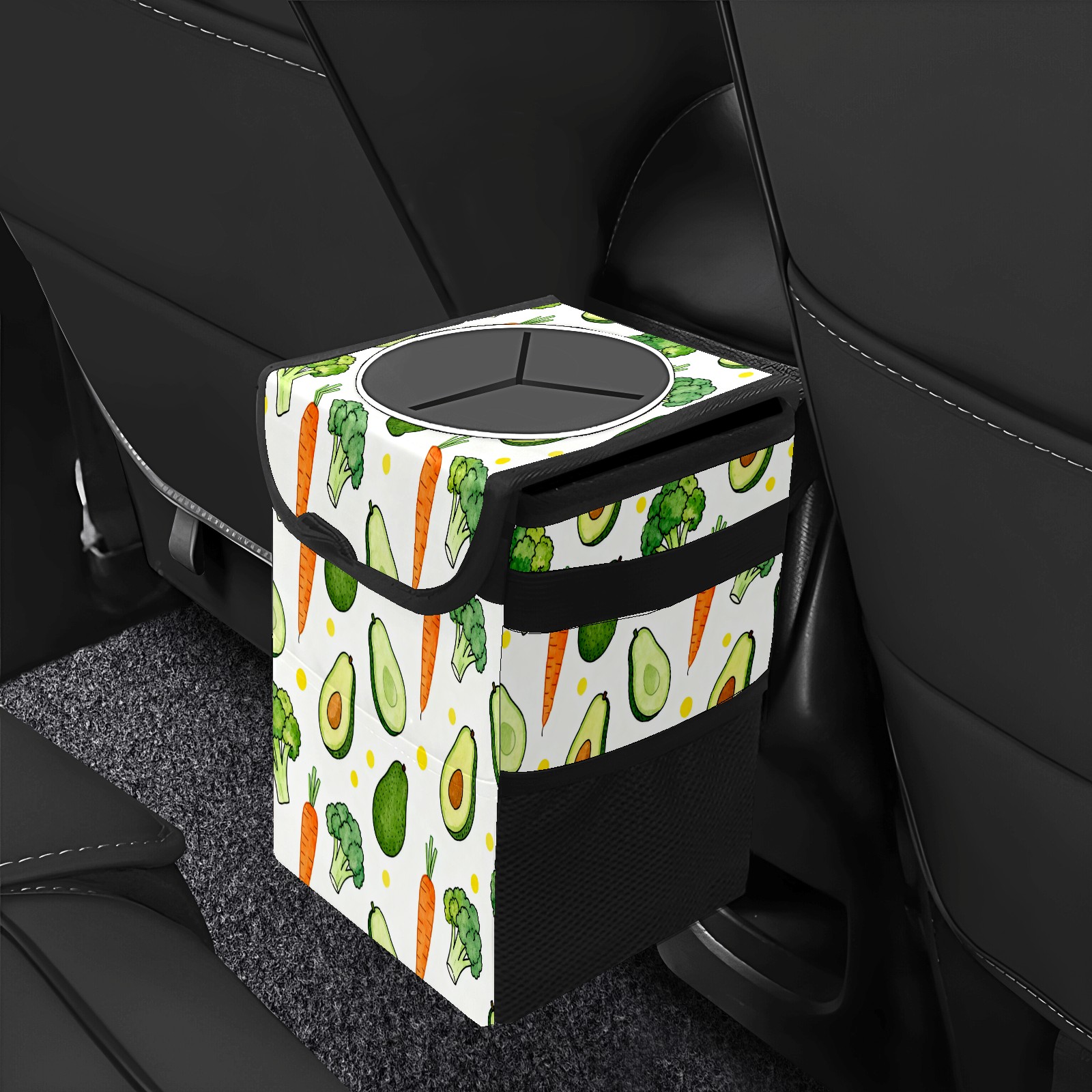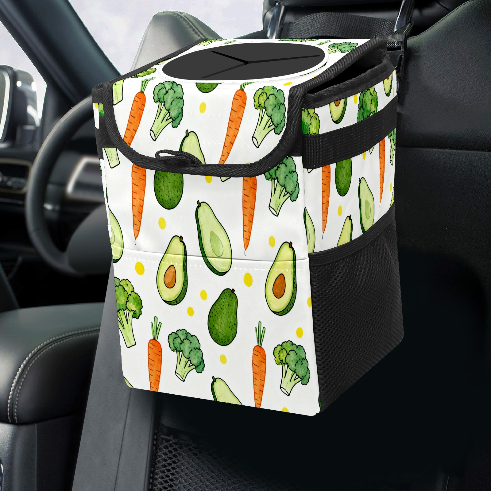 Car Garbage Can — Multi-functional, Lightweight Portable, Reusable Vehicle Trash Can, Waterproof with Sufficient Storage Capacity Avocado, Carrot, Broccoli