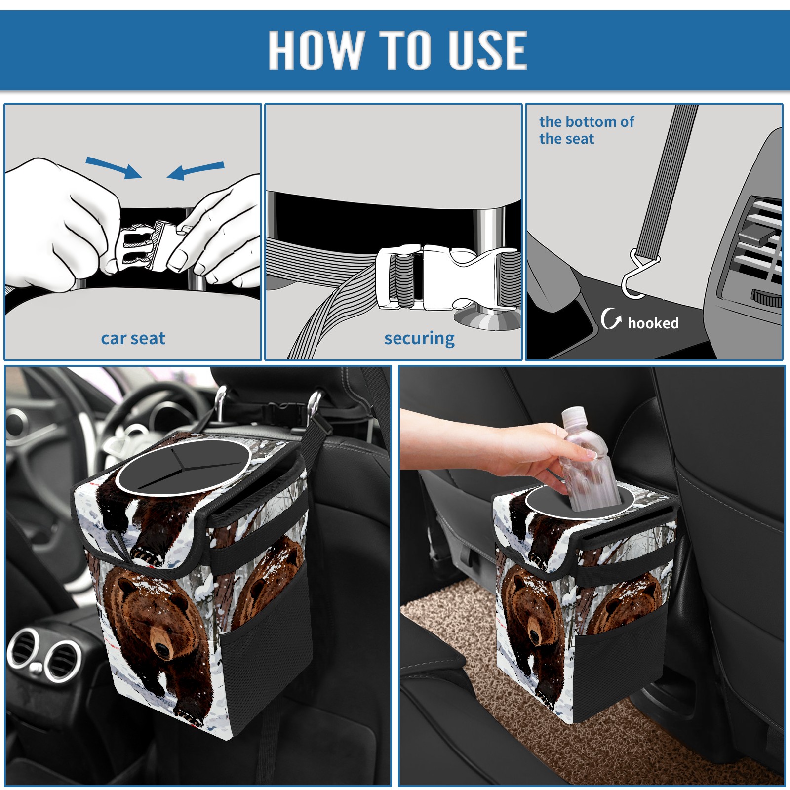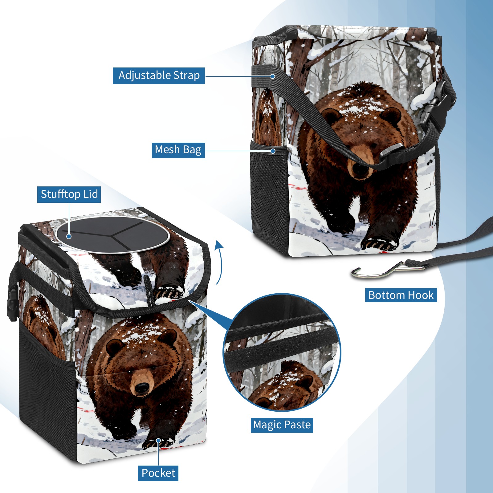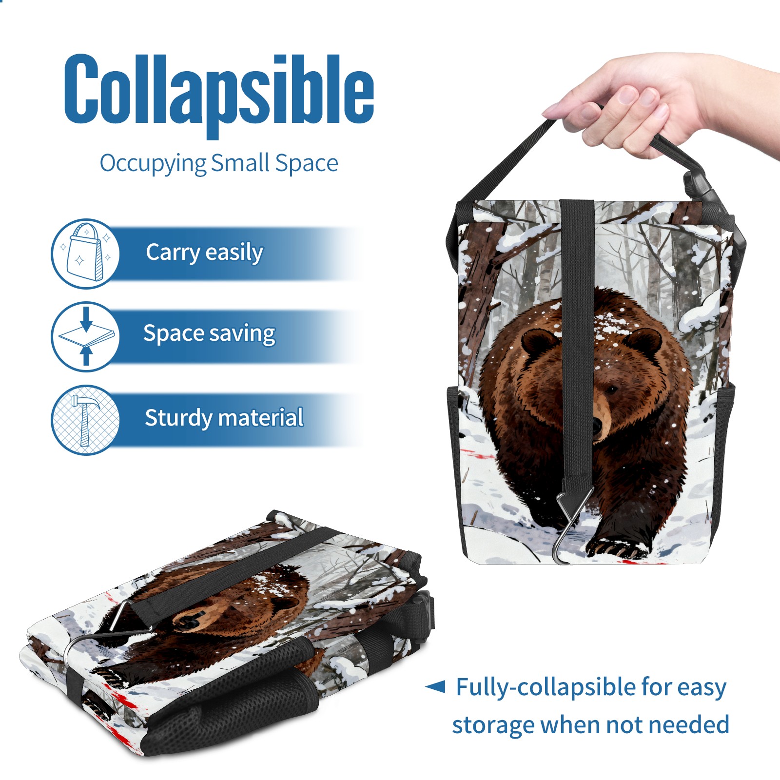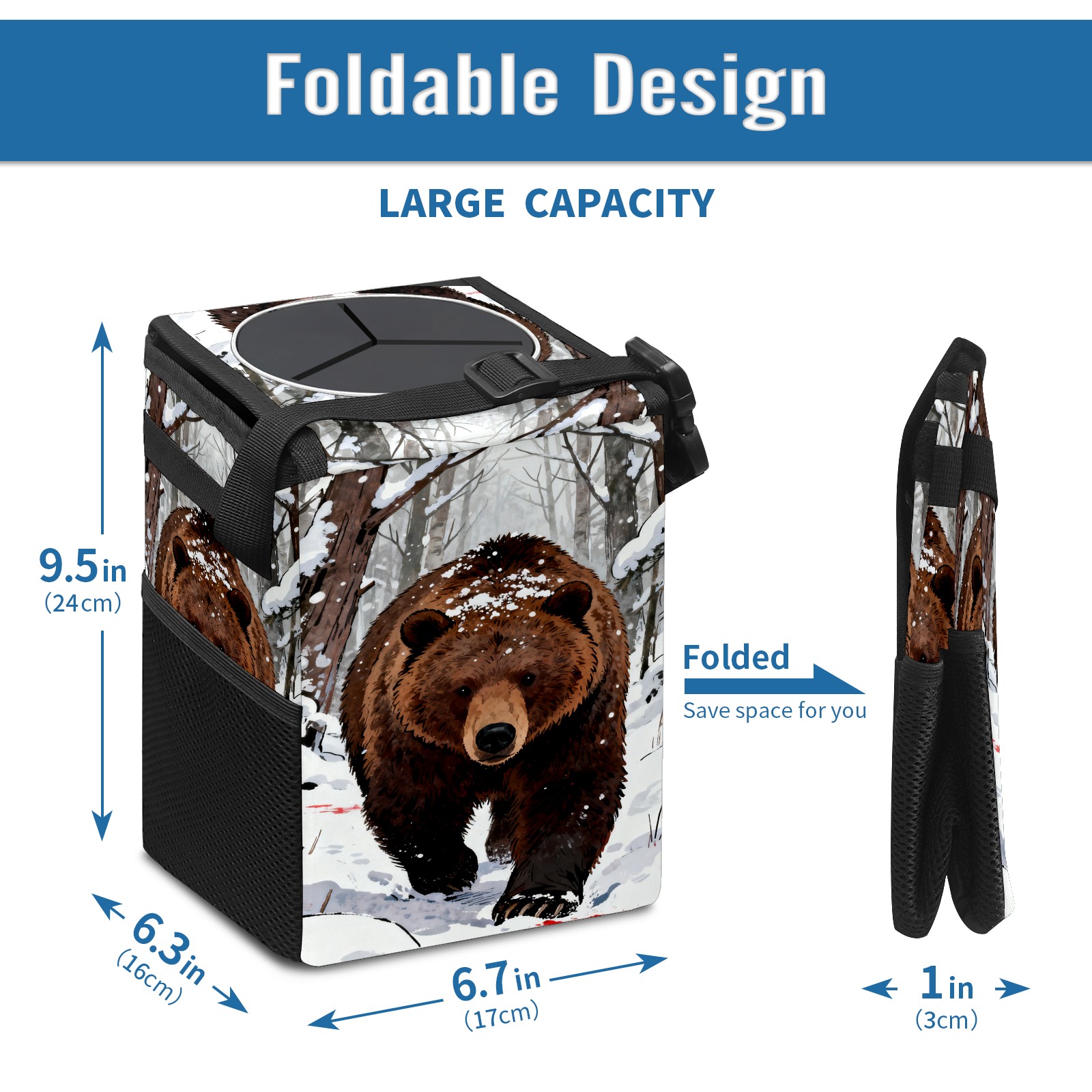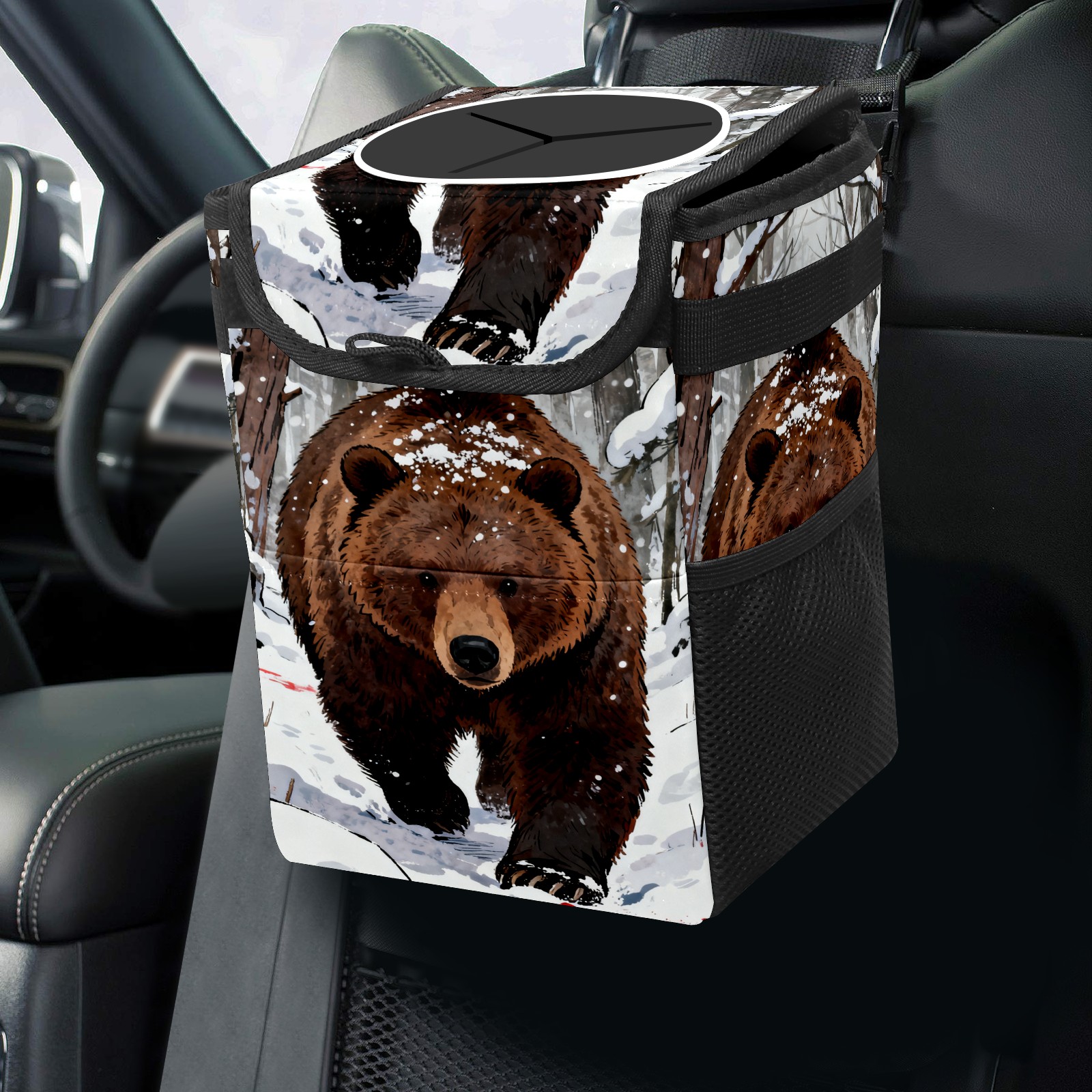 Car Garbage Can — Multi-functional, Lightweight Portable, Reusable Vehicle Trash Can, Waterproof with Sufficient Storage Capacity Snow Brown Bear