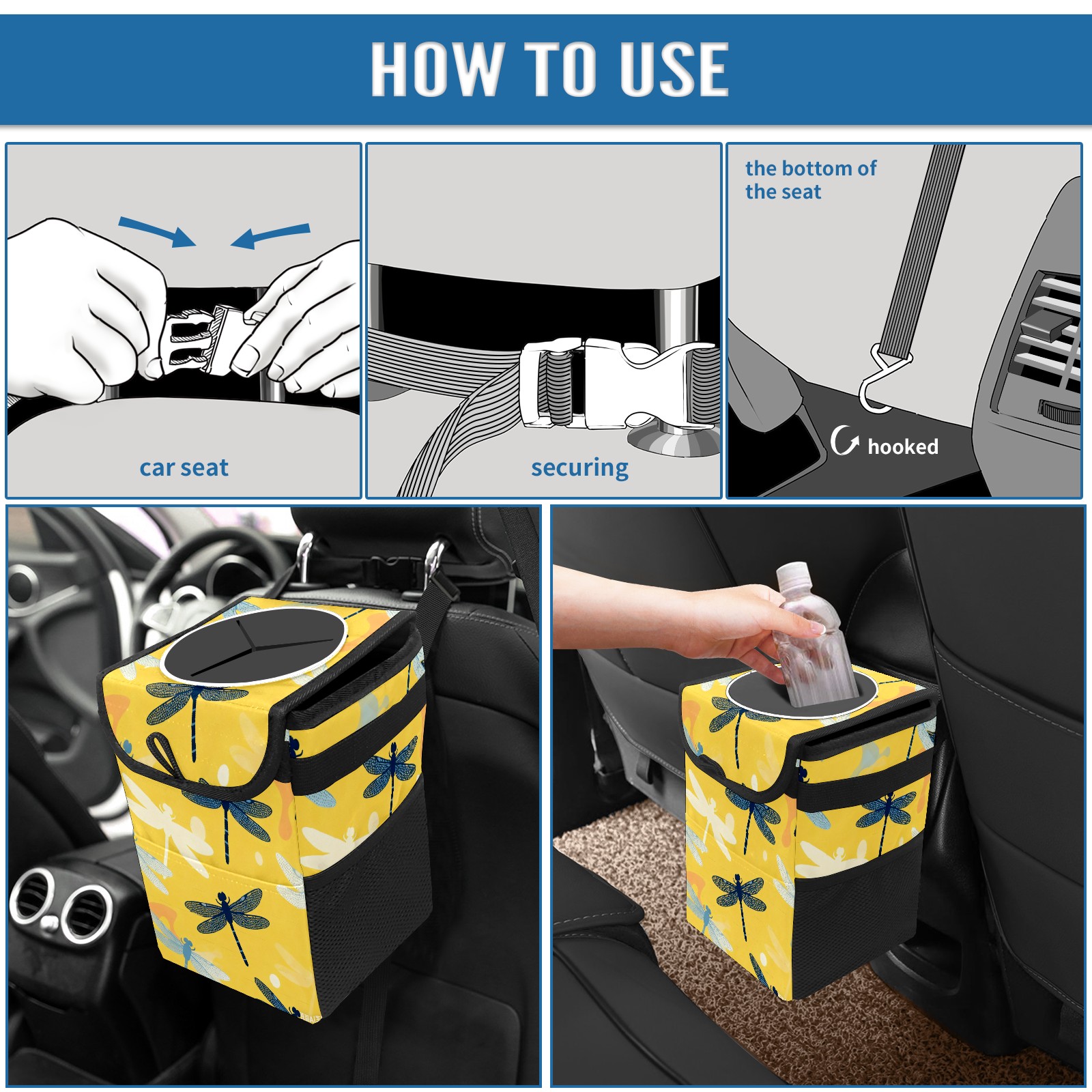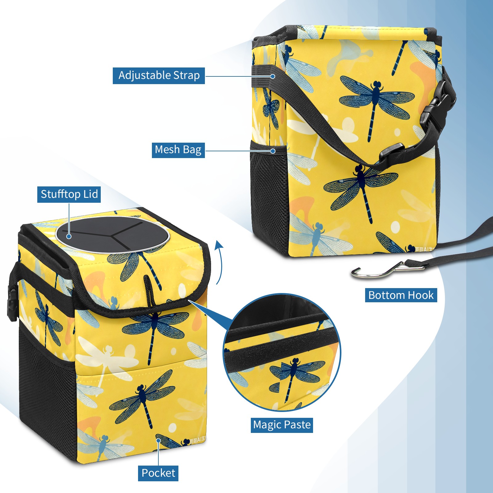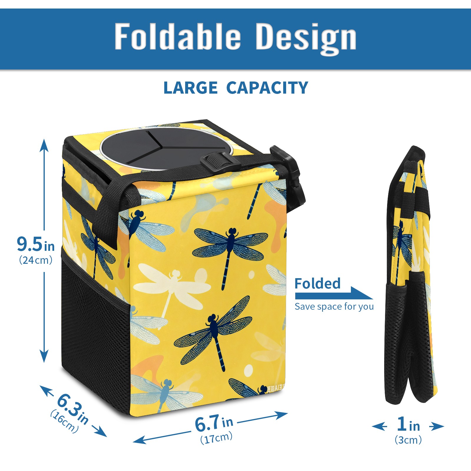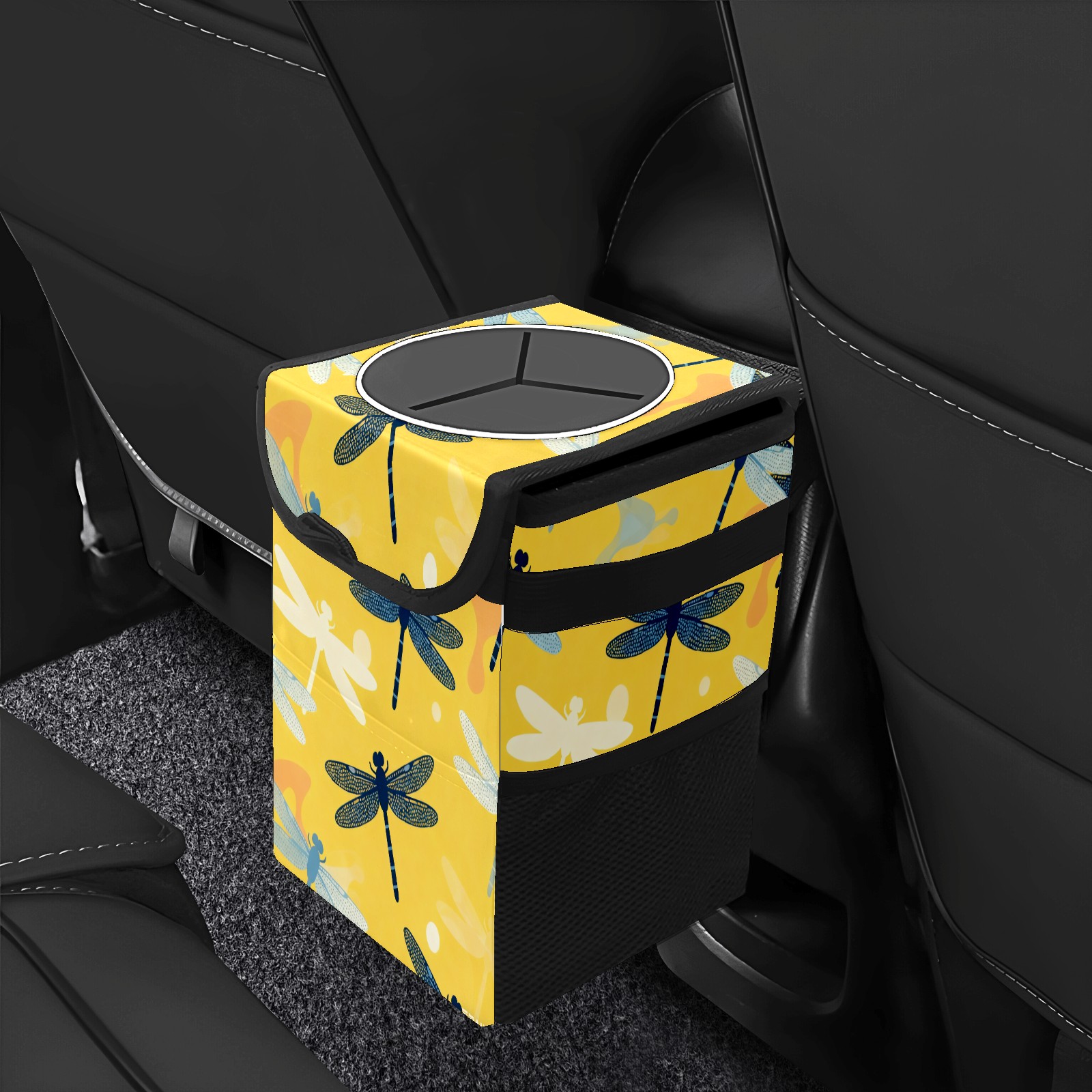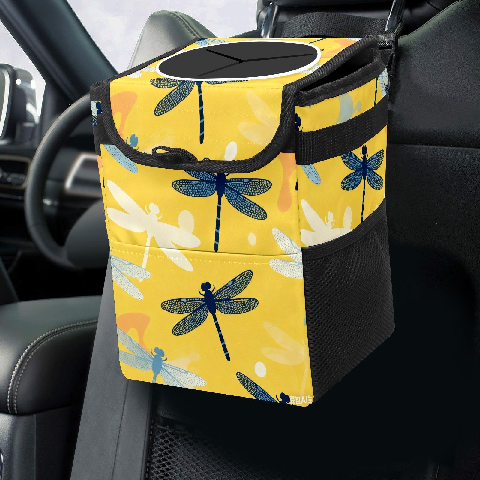 Car Garbage Can — Multi-functional, Lightweight Portable, Reusable Vehicle Trash Can, Waterproof with Sufficient Storage Capacity Yellow-based Dragonfly
