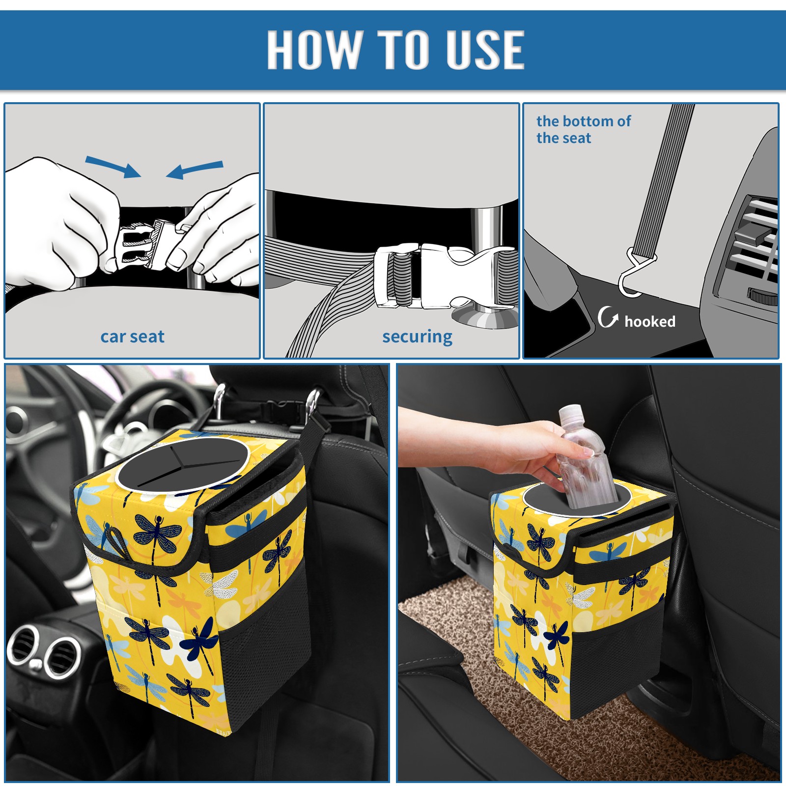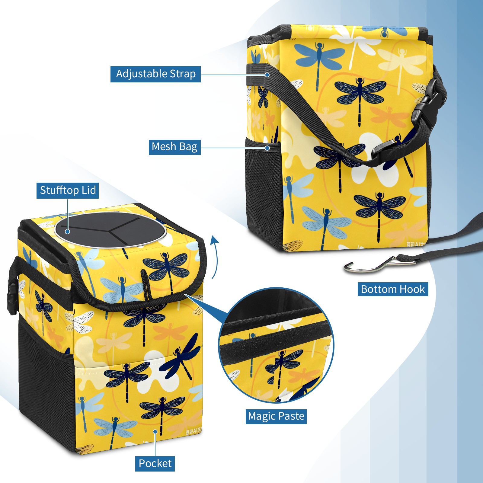Car Garbage Can — Multi-functional, Lightweight Portable, Reusable Vehicle Trash Can, Waterproof with Sufficient Storage Capacity Dragonfly