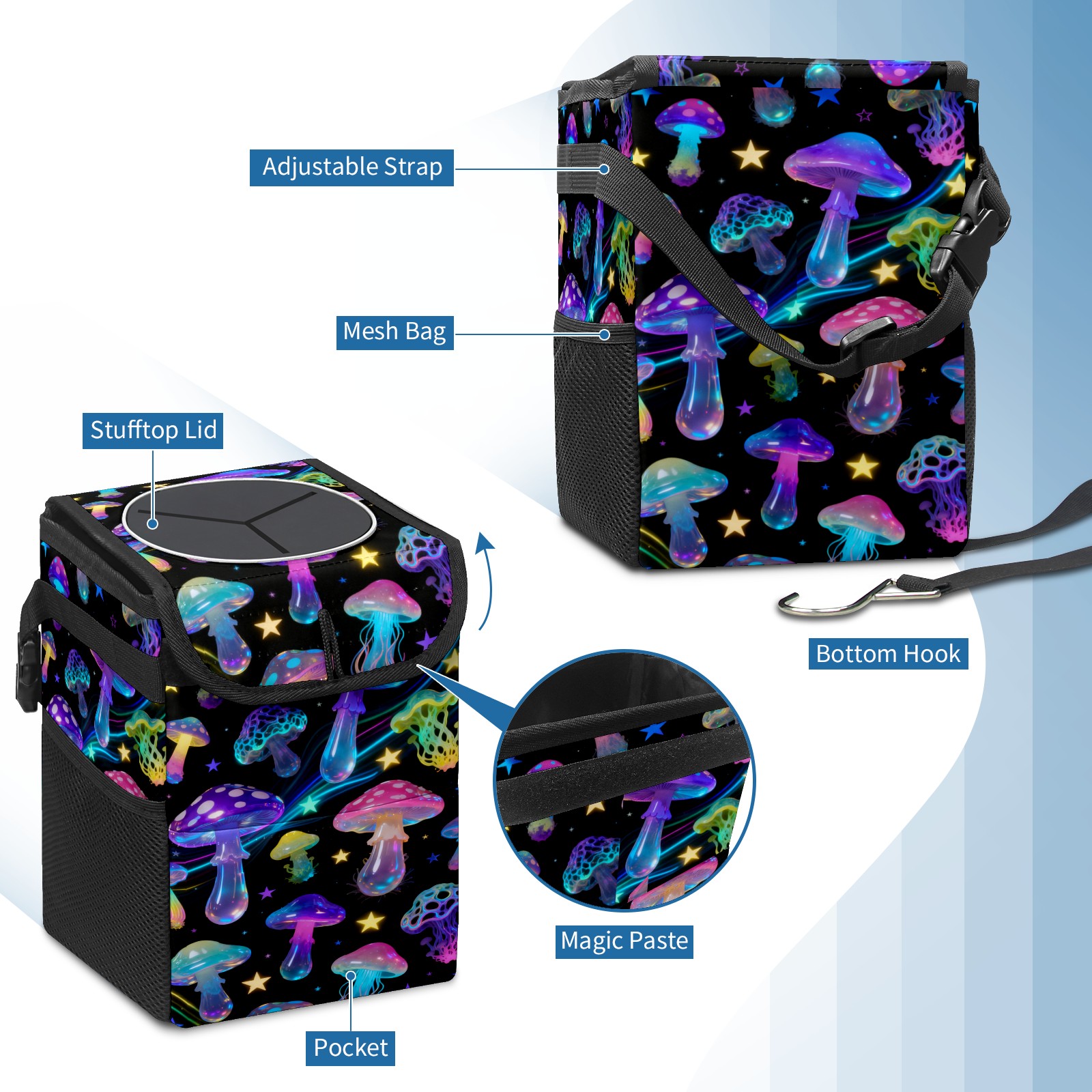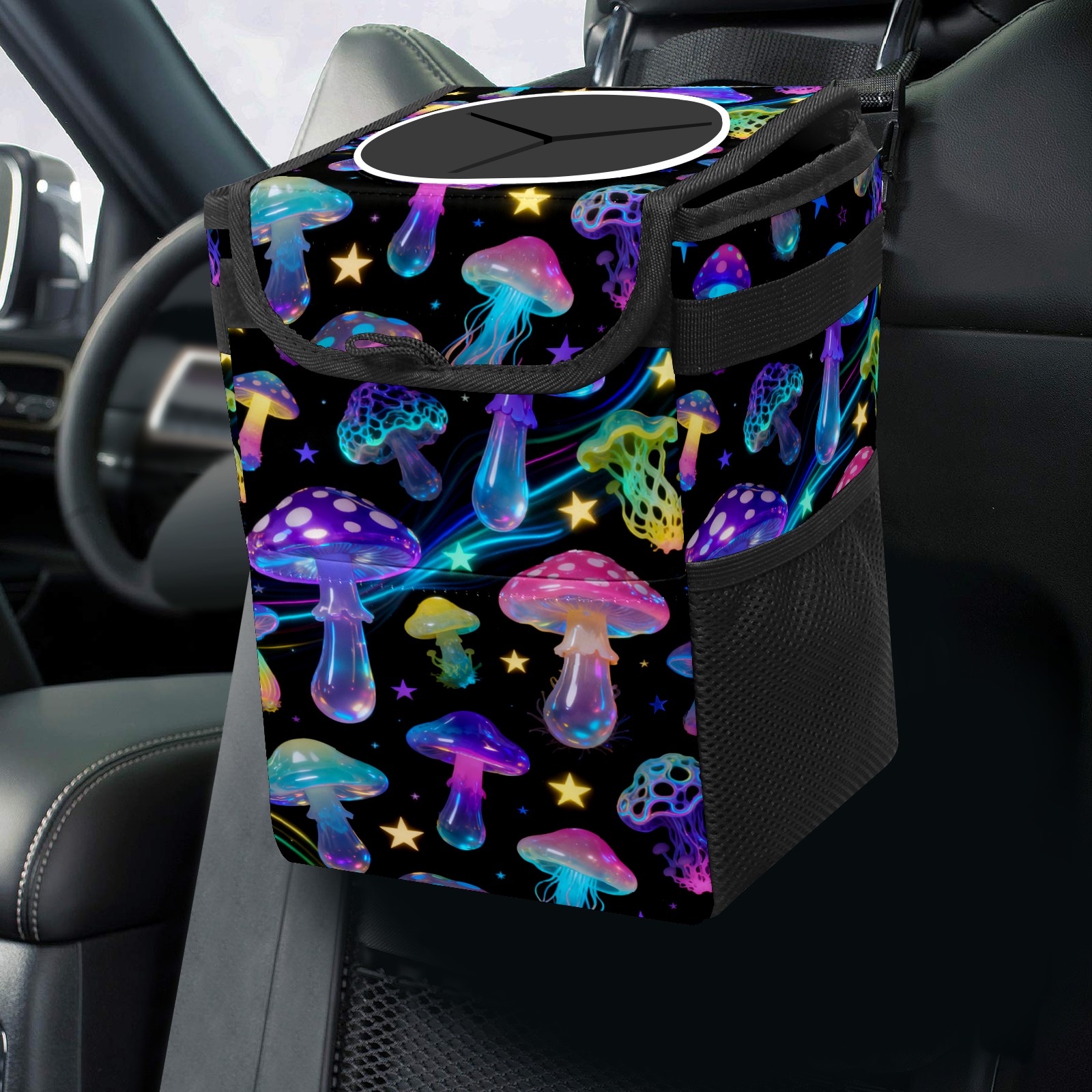Car Garbage Can — Multi-functional, Lightweight Portable, Reusable Vehicle Trash Can, Waterproof with Sufficient Storage Capacity Starry Night Mushrooms