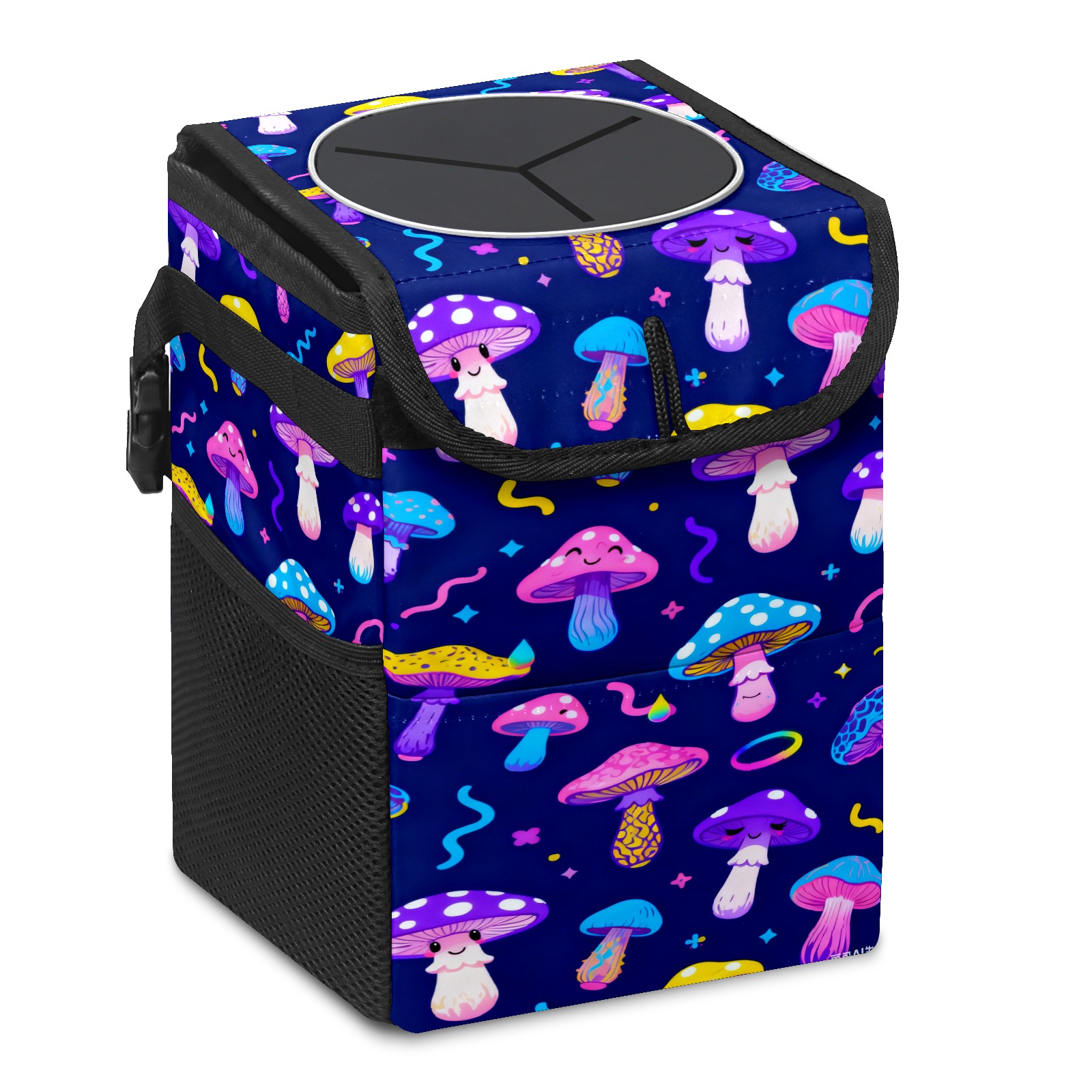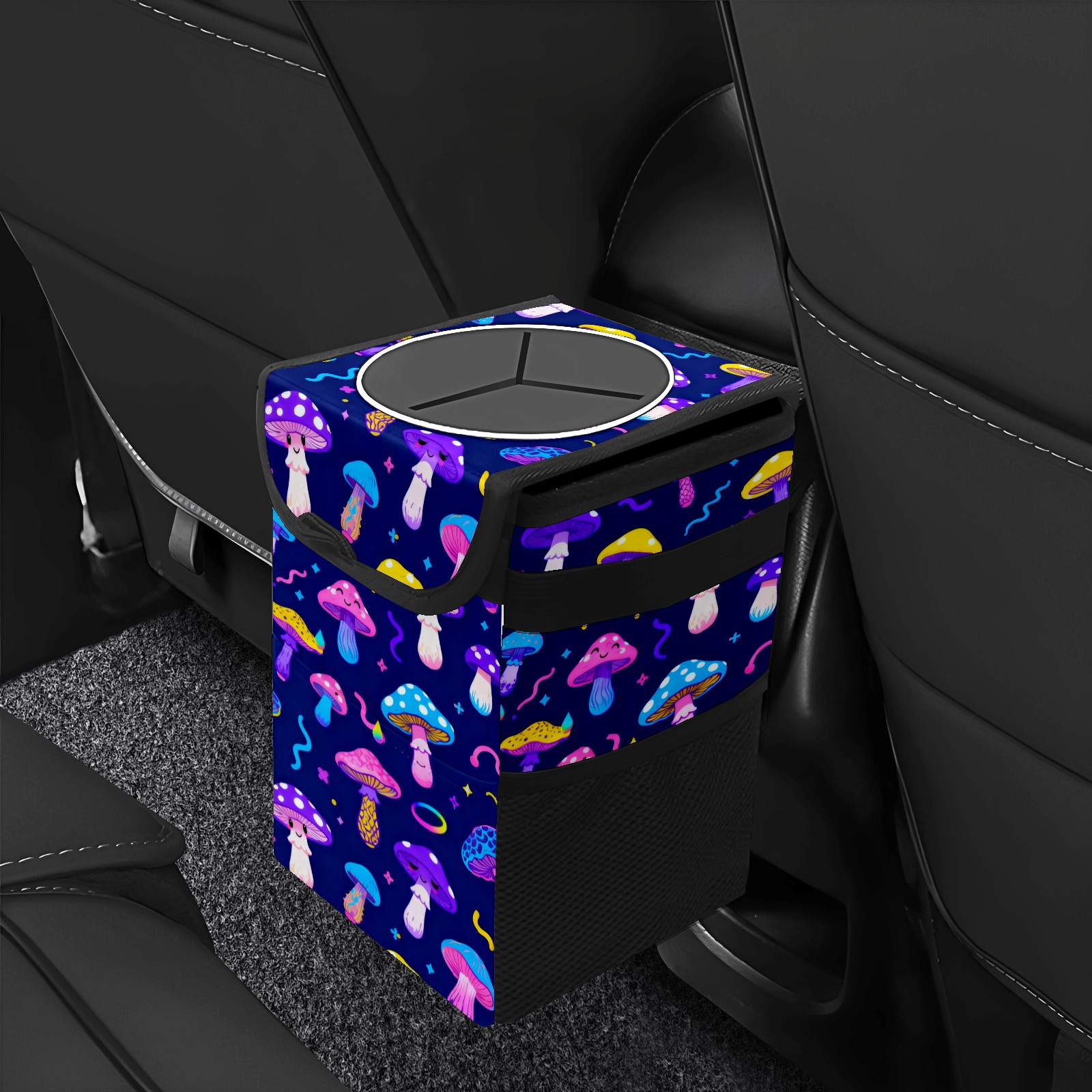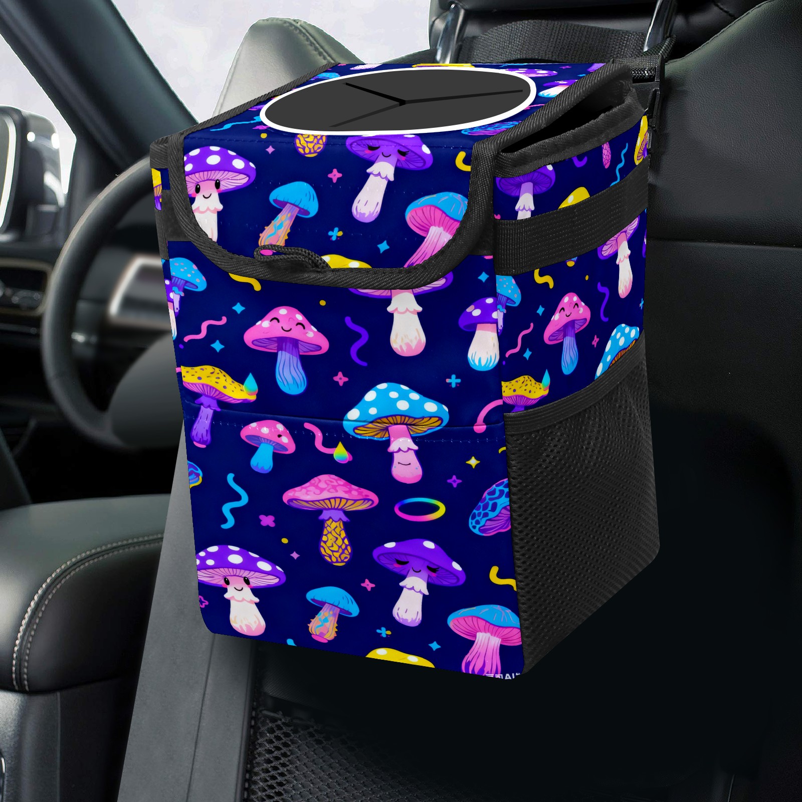 Car Garbage Can — Multi-functional, Lightweight Portable, Reusable Vehicle Trash Can, Waterproof with Sufficient Storage Capacity Dark Night Colorful Mushroom