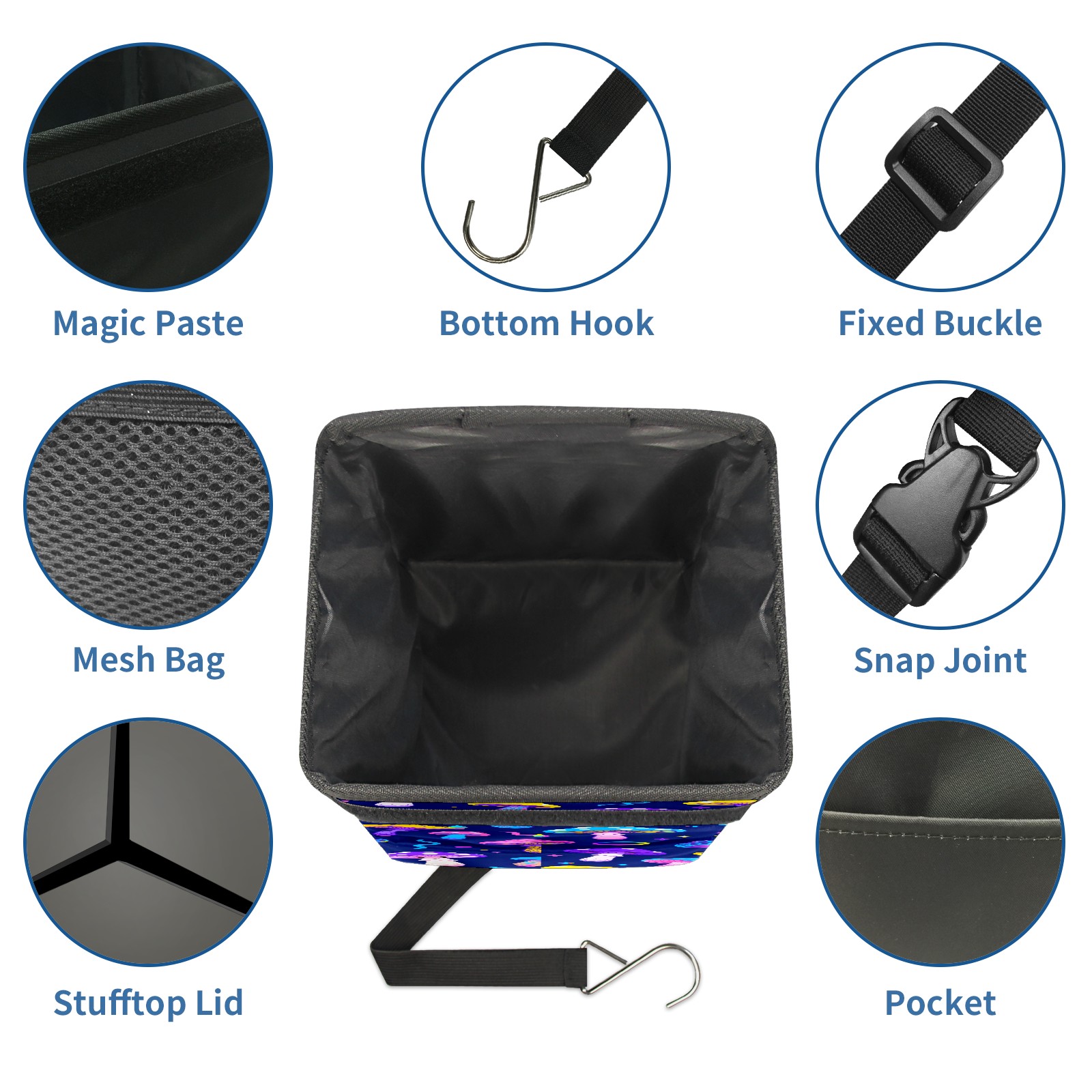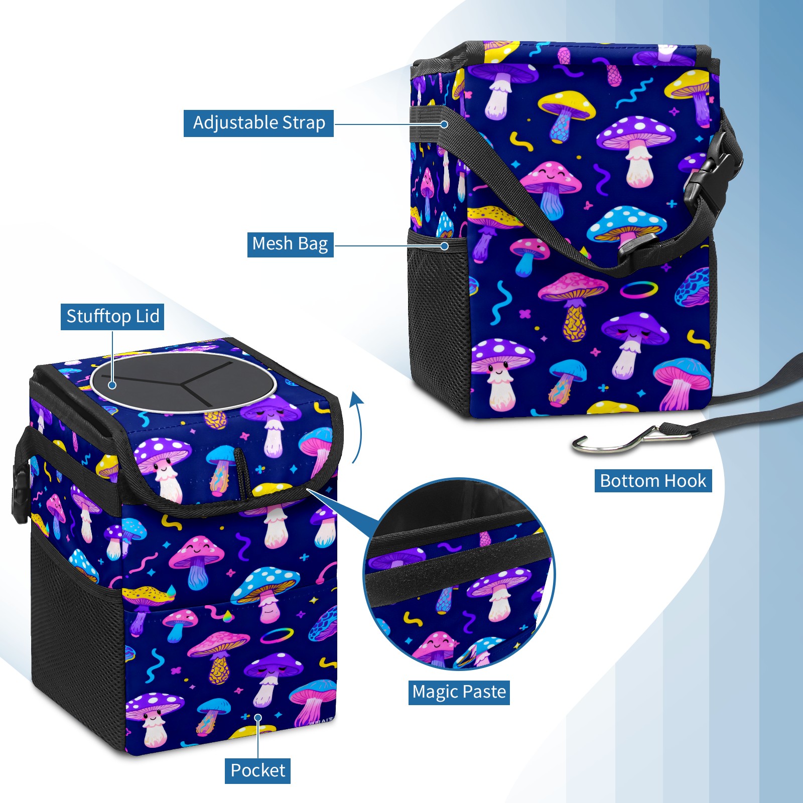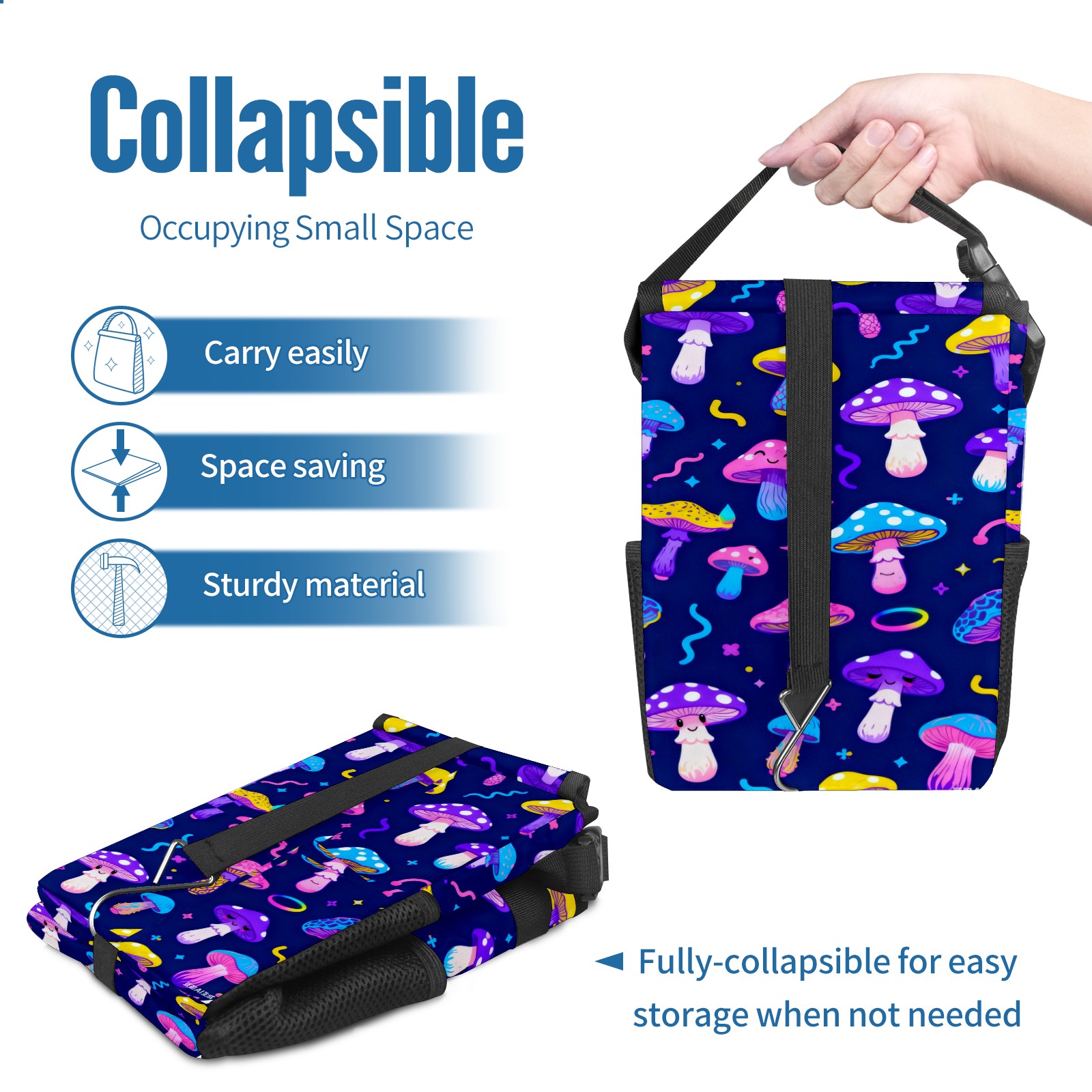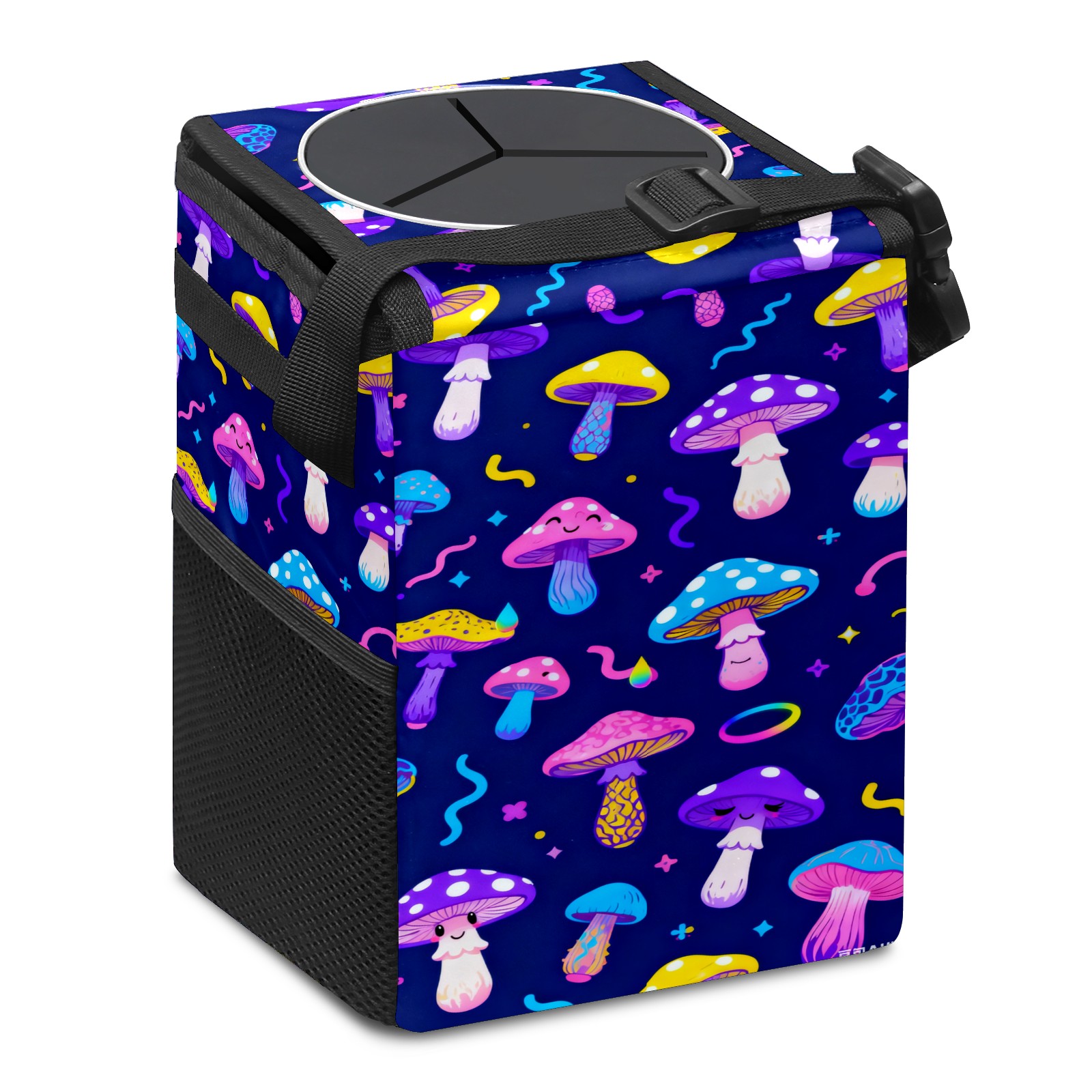 Car Garbage Can — Multi-functional, Lightweight Portable, Reusable Vehicle Trash Can, Waterproof with Sufficient Storage Capacity Dark Night Colorful Mushroom