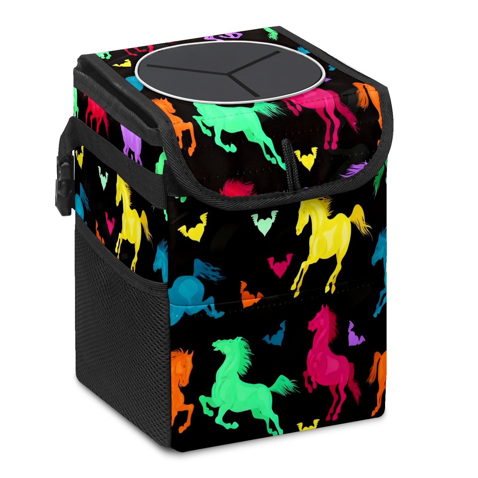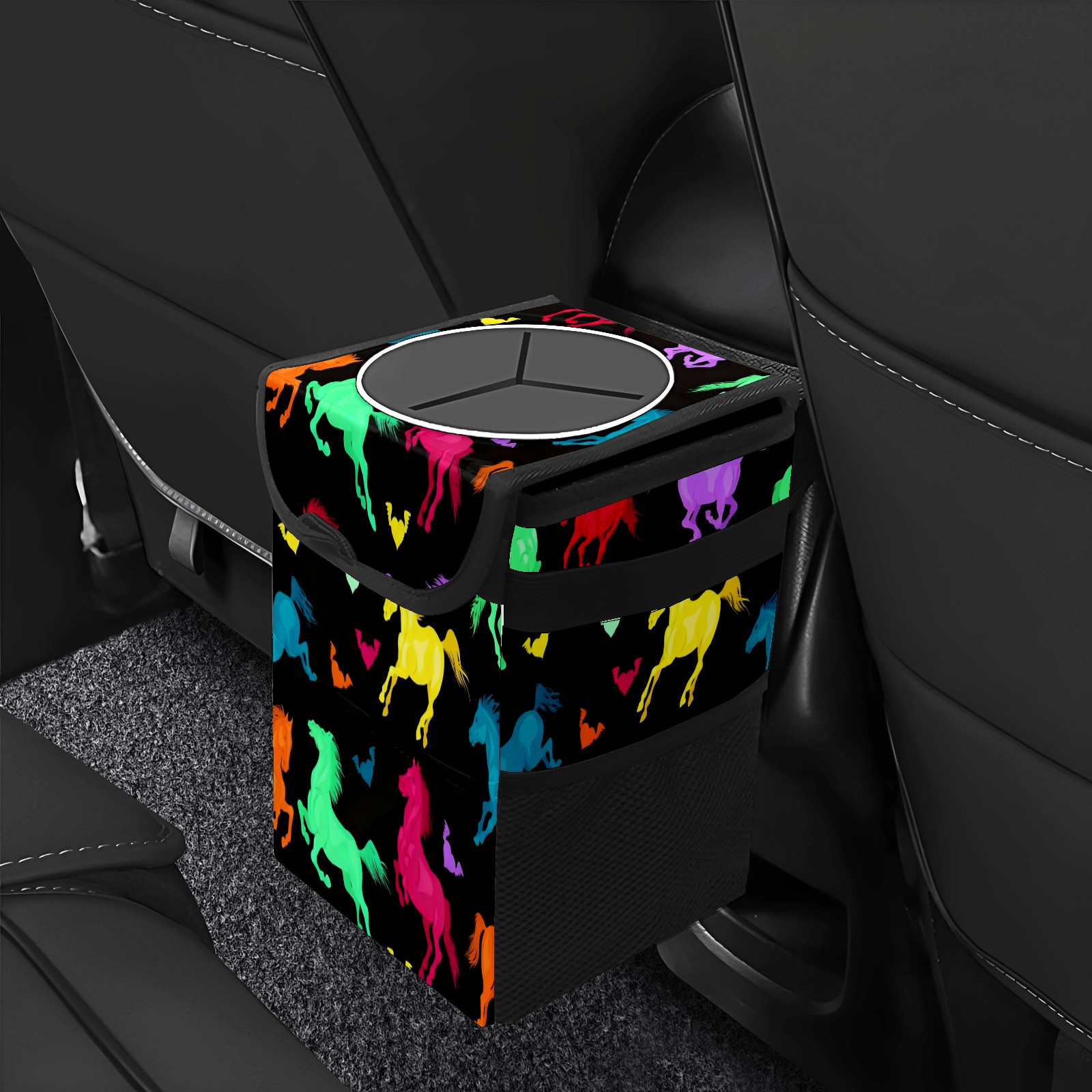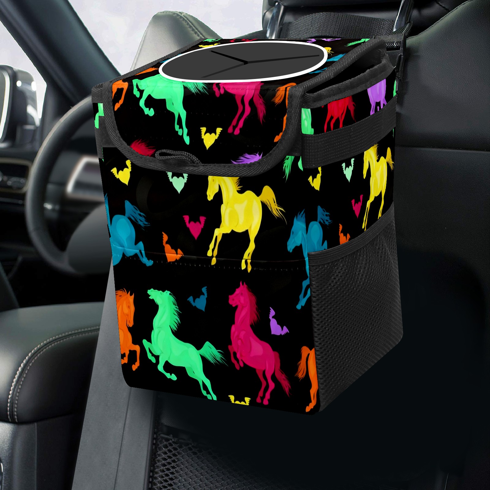 Car Garbage Can — Multi-functional, Lightweight Portable, Reusable Vehicle Trash Can, Waterproof with Sufficient Storage Capacity Colorful Galloping Horse