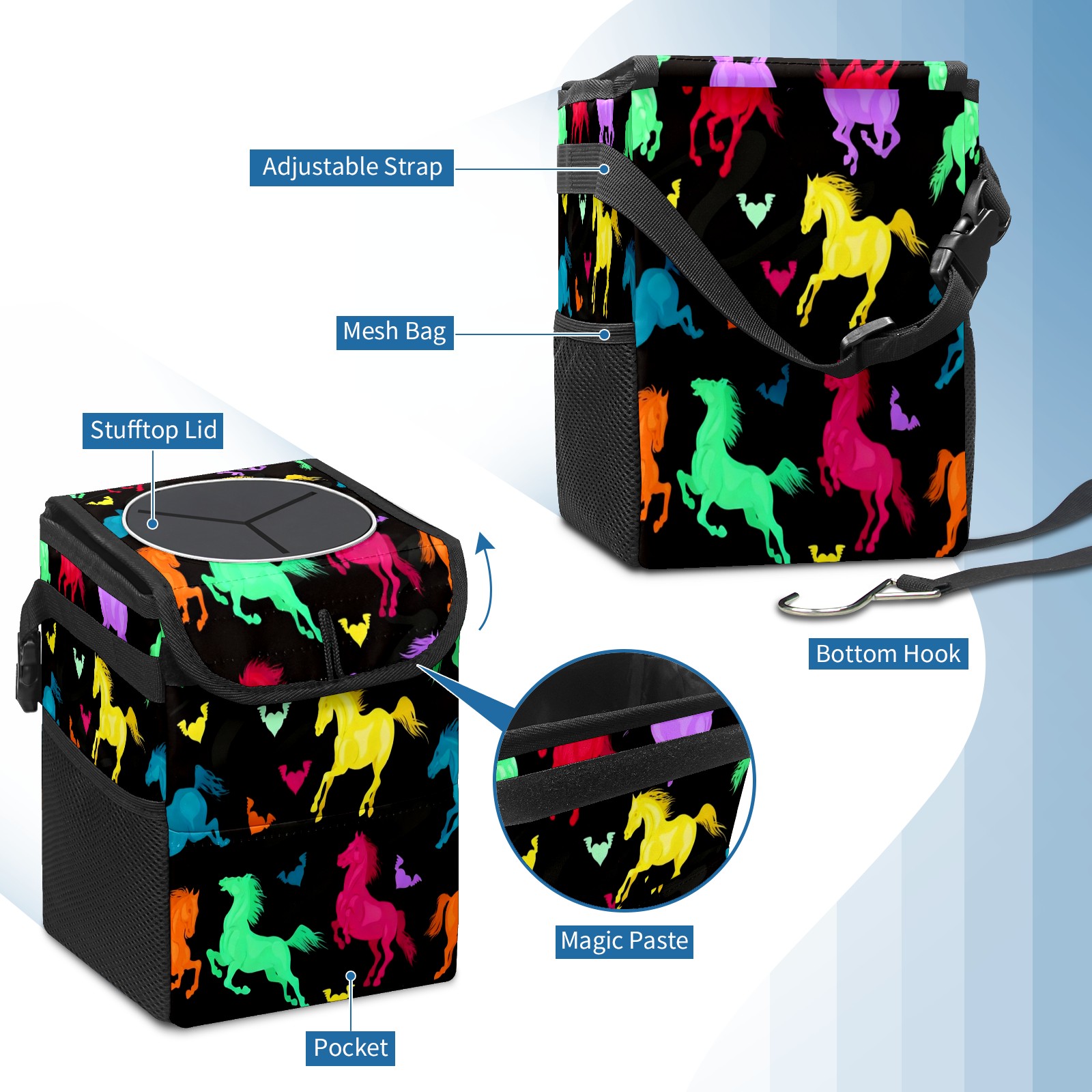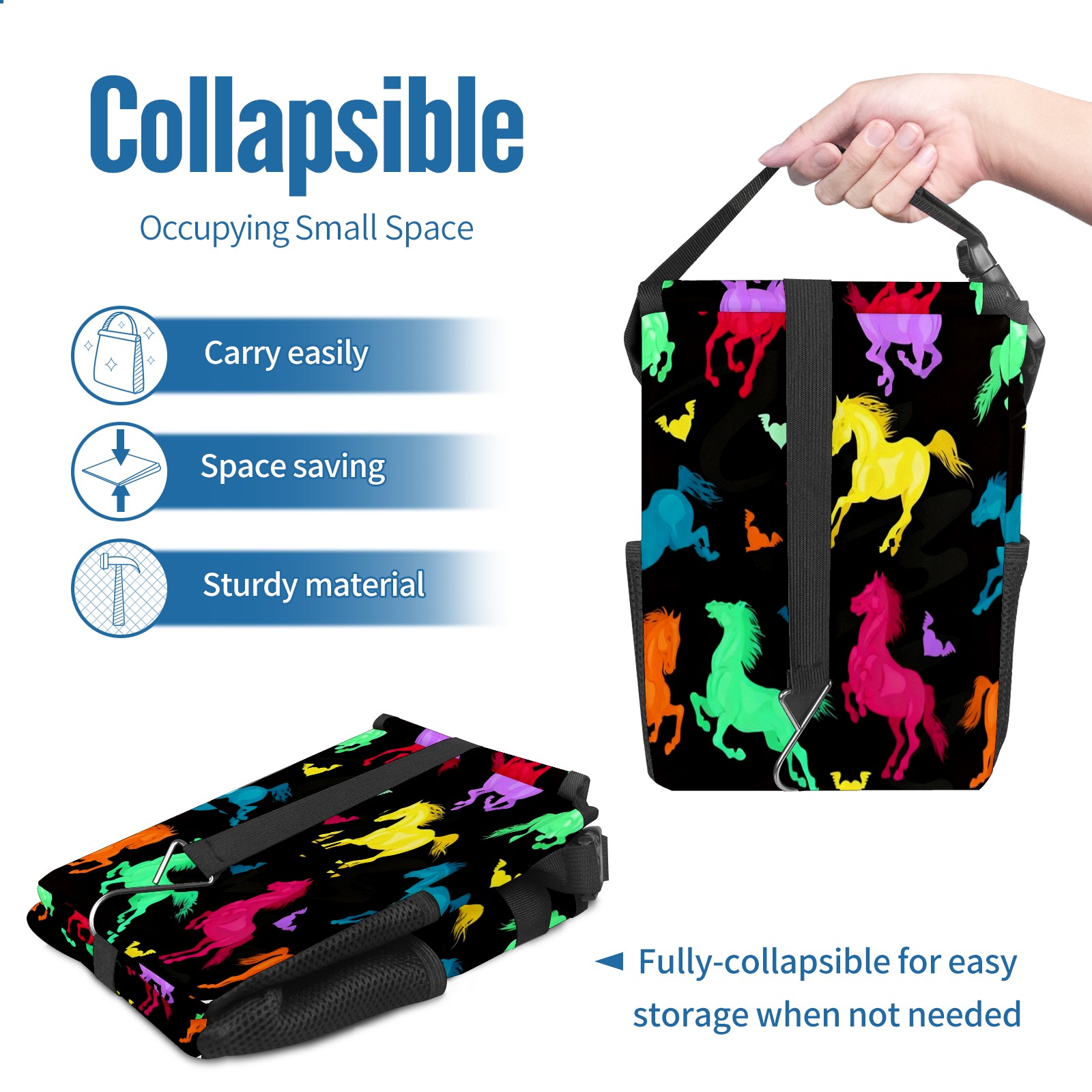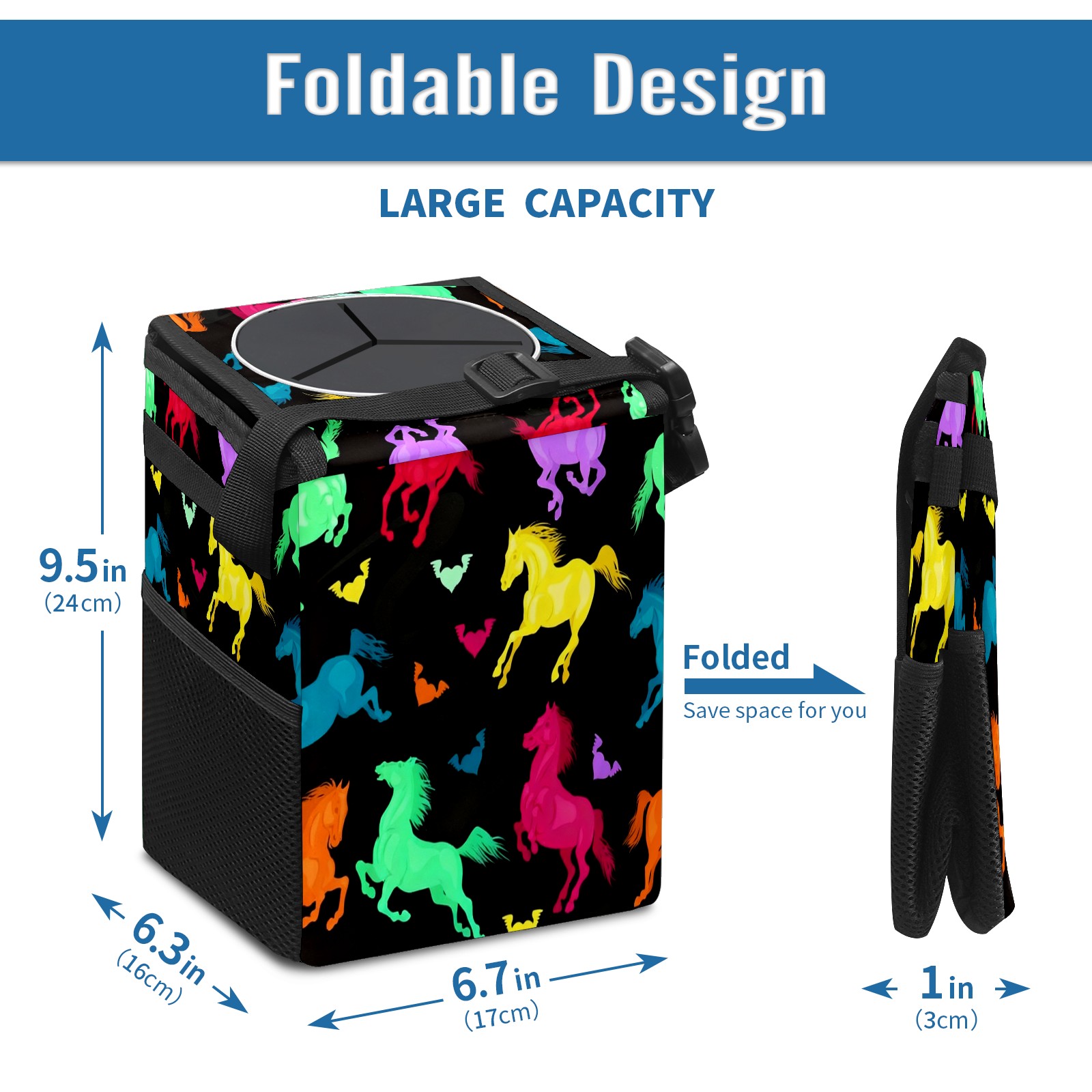 Car Garbage Can — Multi-functional, Lightweight Portable, Reusable Vehicle Trash Can, Waterproof with Sufficient Storage Capacity Colorful Galloping Horse