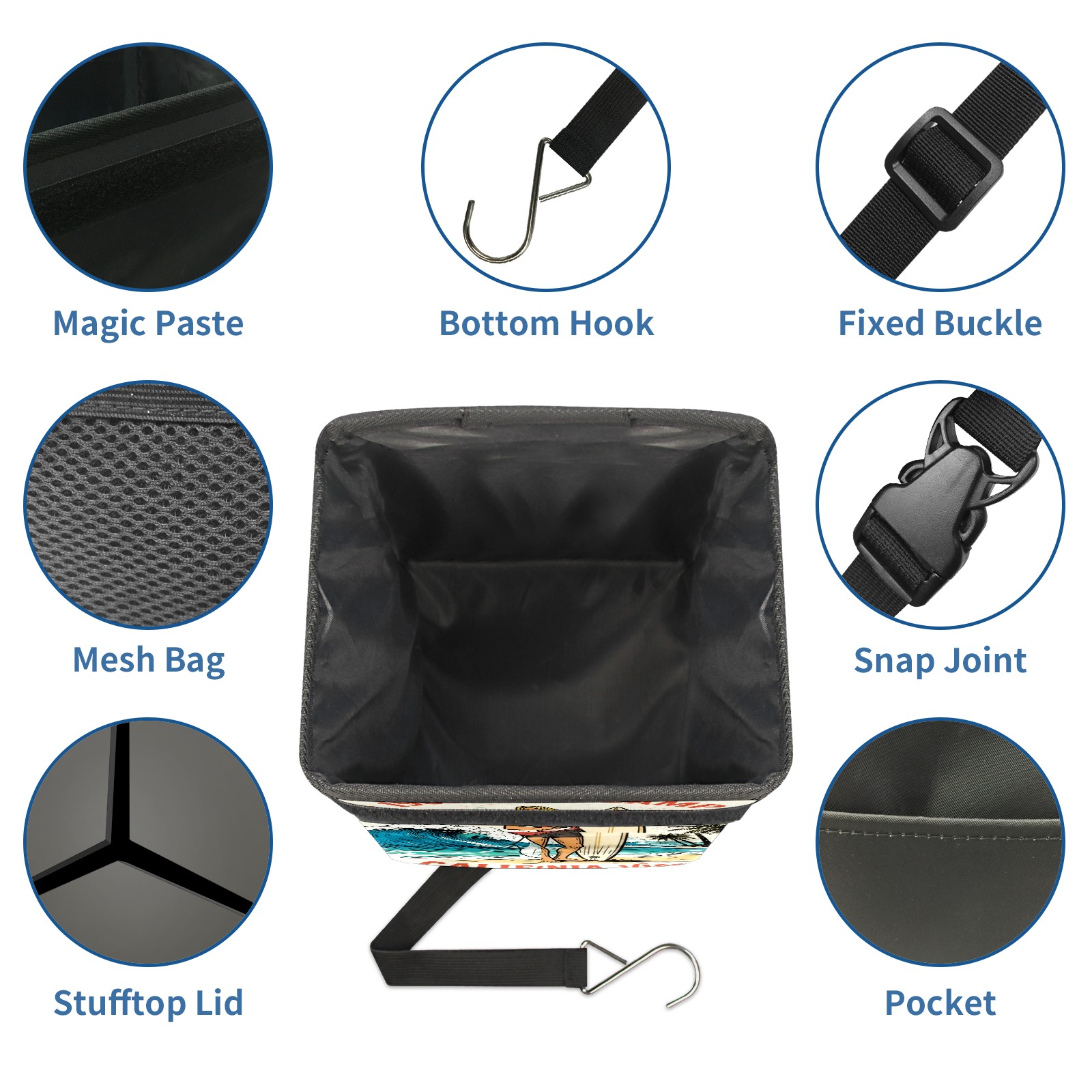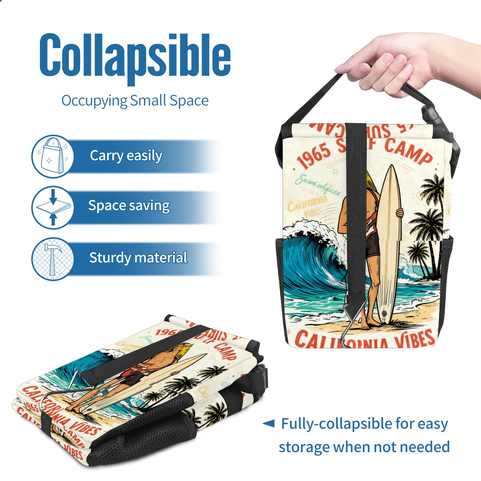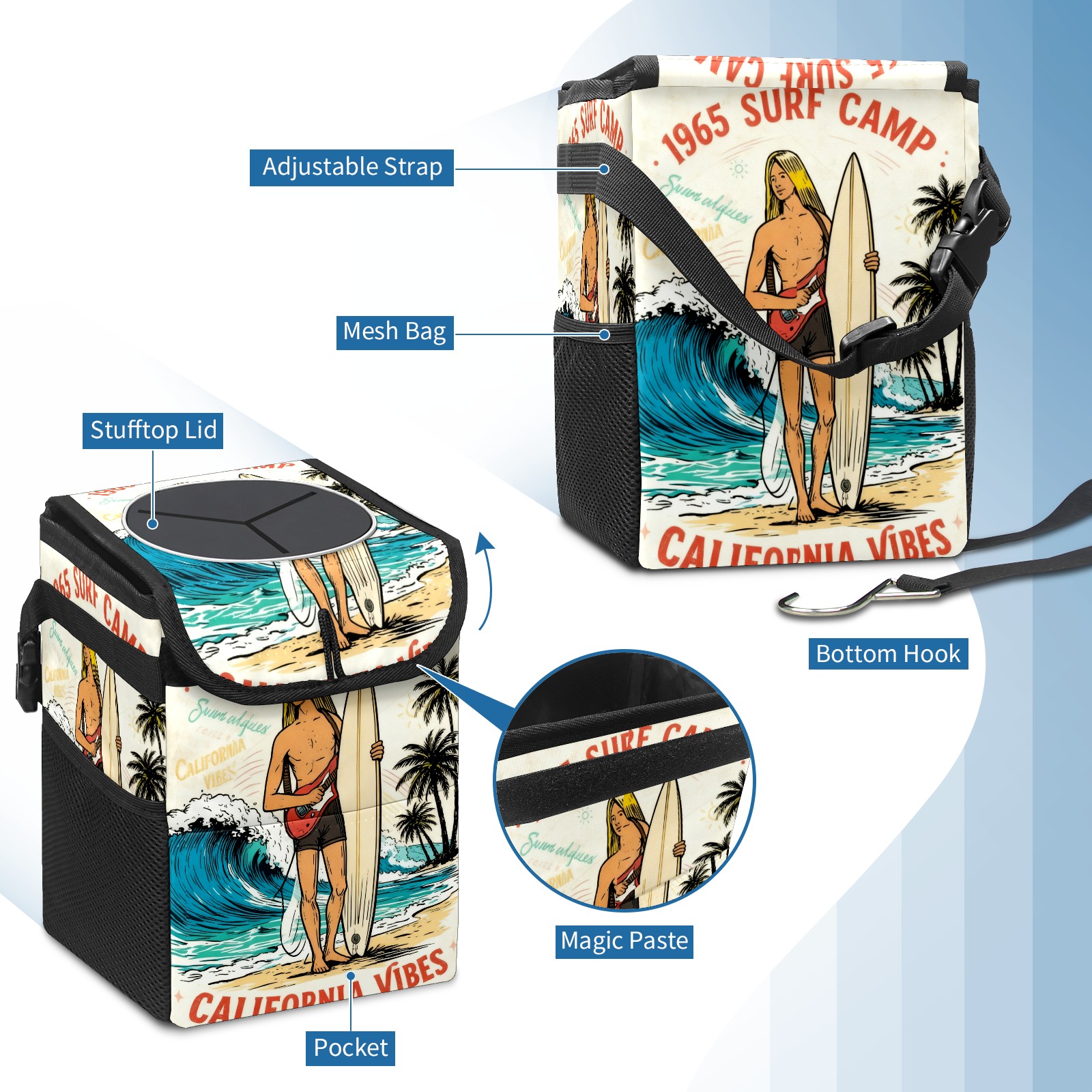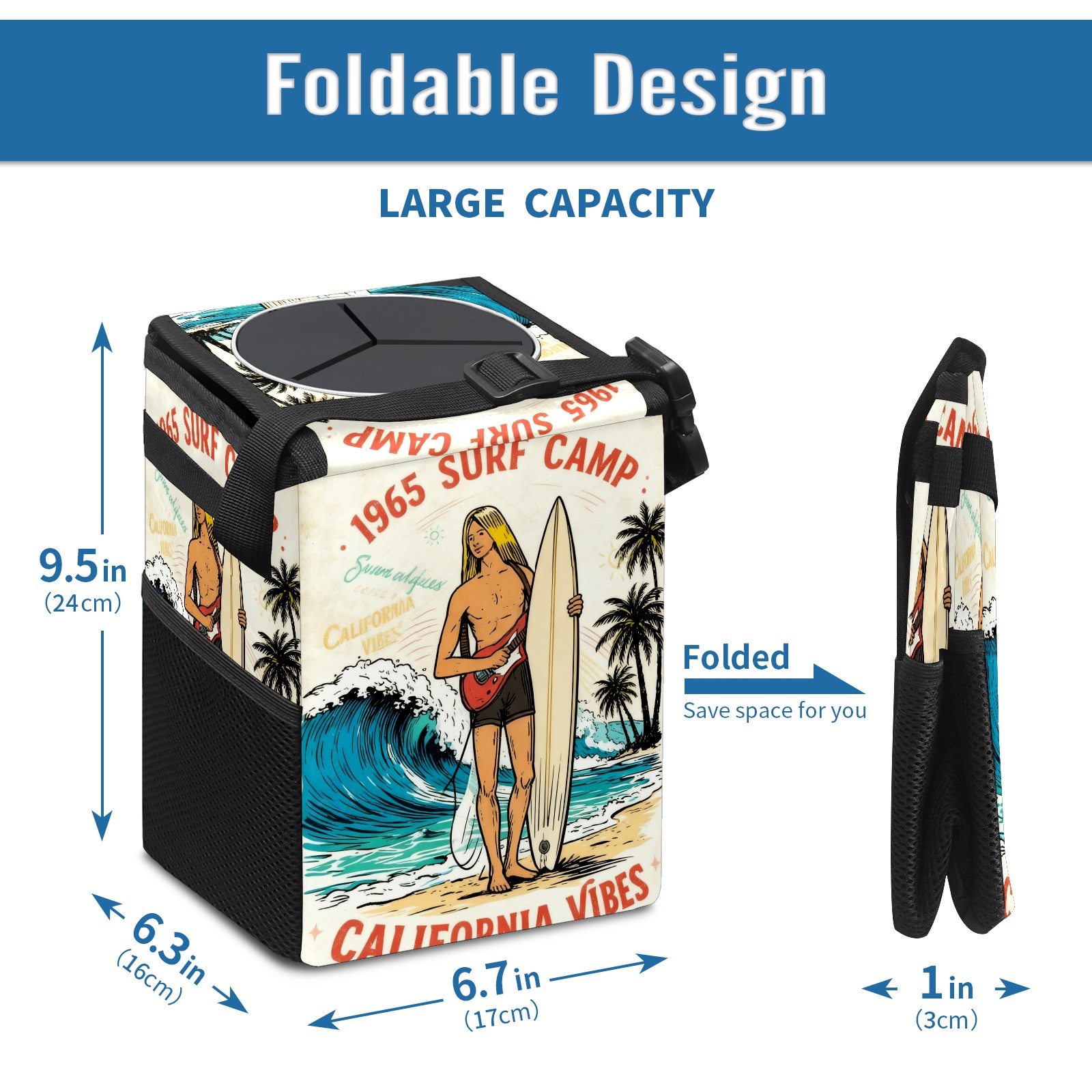 Car Garbage Can — Multi-functional, Lightweight Portable, Reusable Vehicle Trash Can, Waterproof with Sufficient Storage Capacity 1965 SURF CAMP" Surf Poster