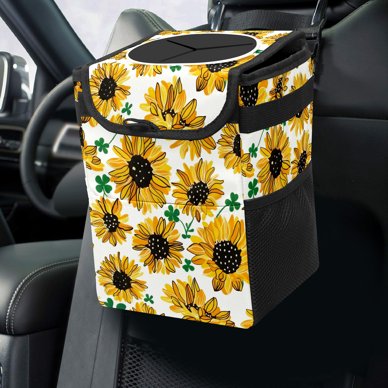 Car Garbage Can — Multi-functional, Lightweight Portable, Reusable Vehicle Trash Can, Waterproof with Sufficient Storage Capacity Sunflower Field