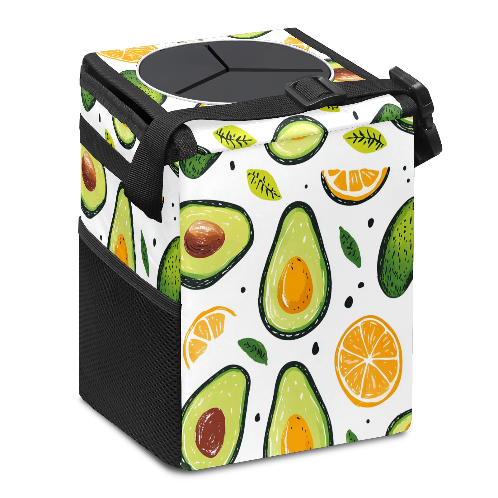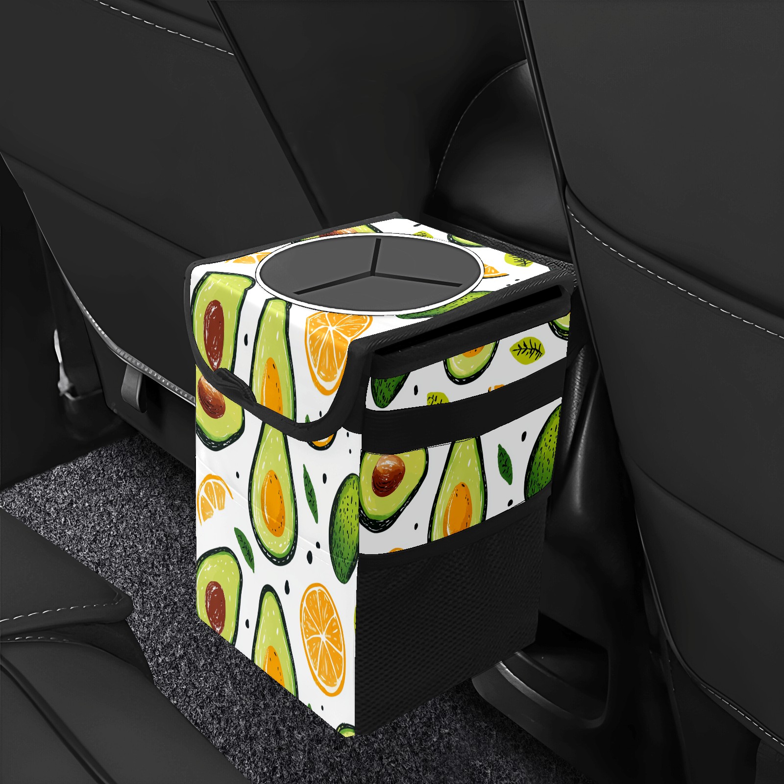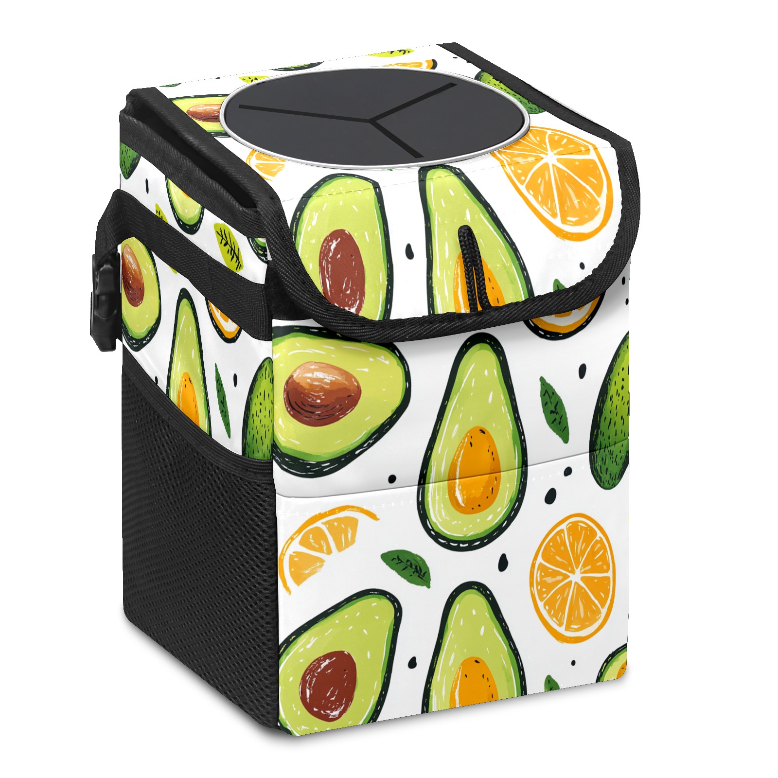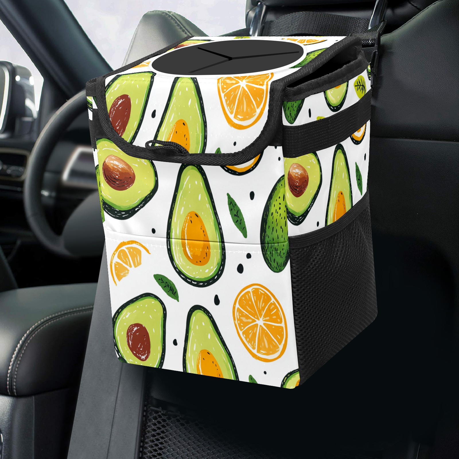 Car Garbage Can — Multi-functional, Lightweight Portable, Reusable Vehicle Trash Can, Waterproof with Sufficient Storage Capacity Avocado Lemon Fruit Pattern