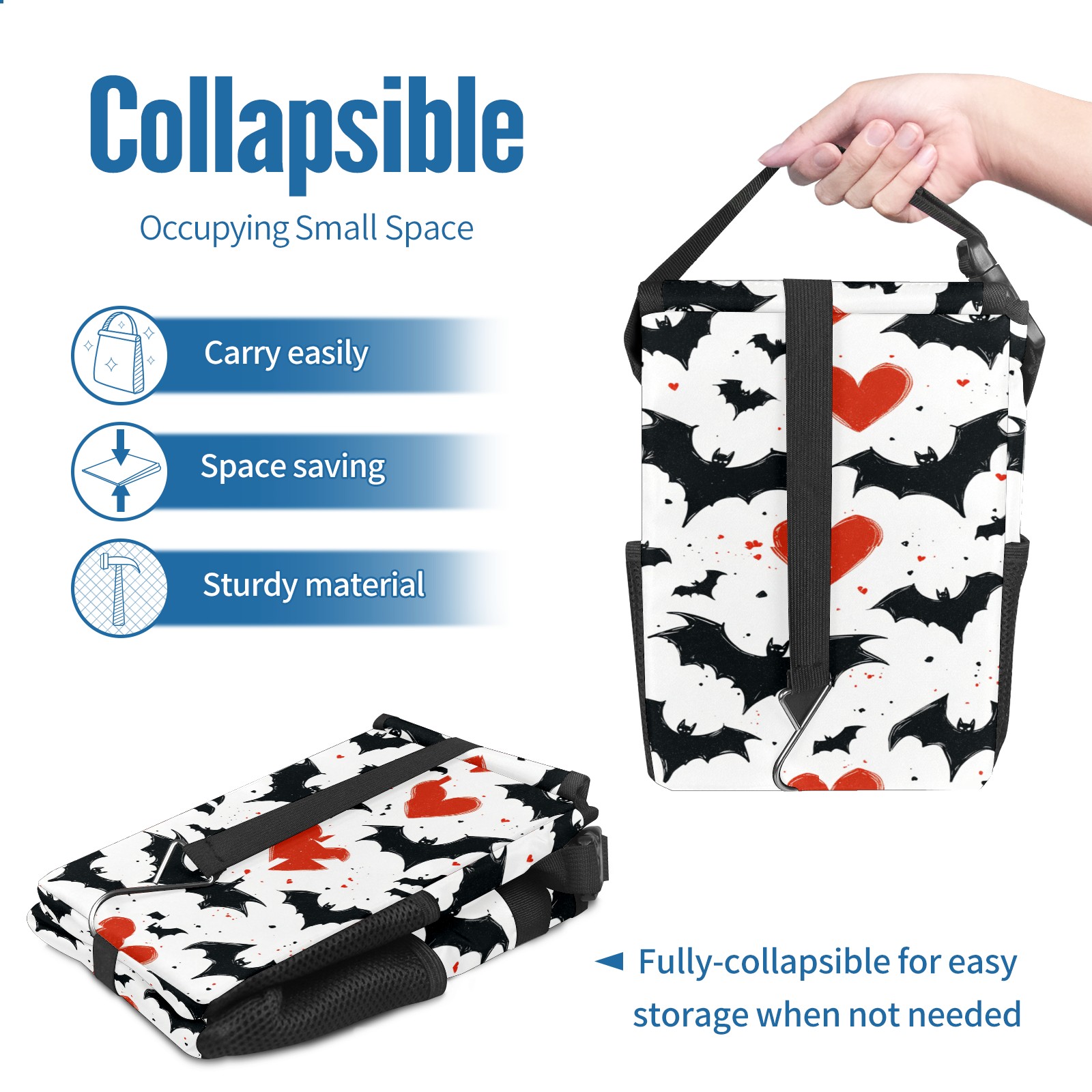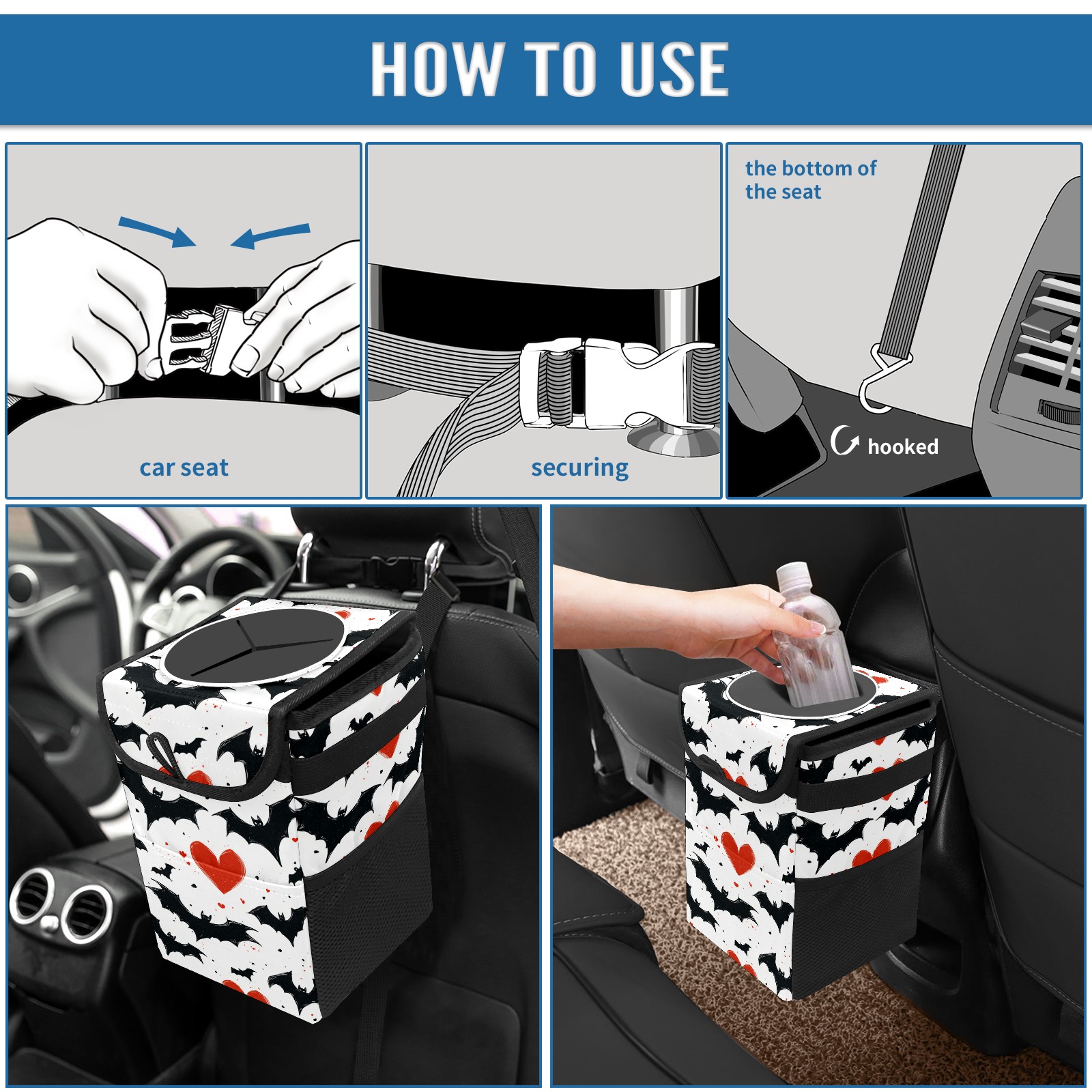 Car Garbage Can — Multi-functional, Lightweight Portable, Reusable Vehicle Trash Can, Waterproof with Sufficient Storage Capacity Hearts and Bats