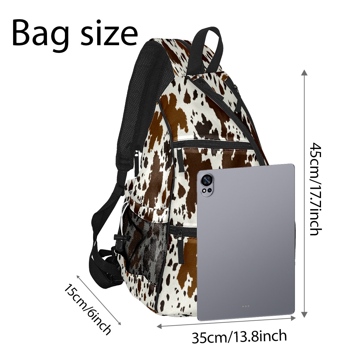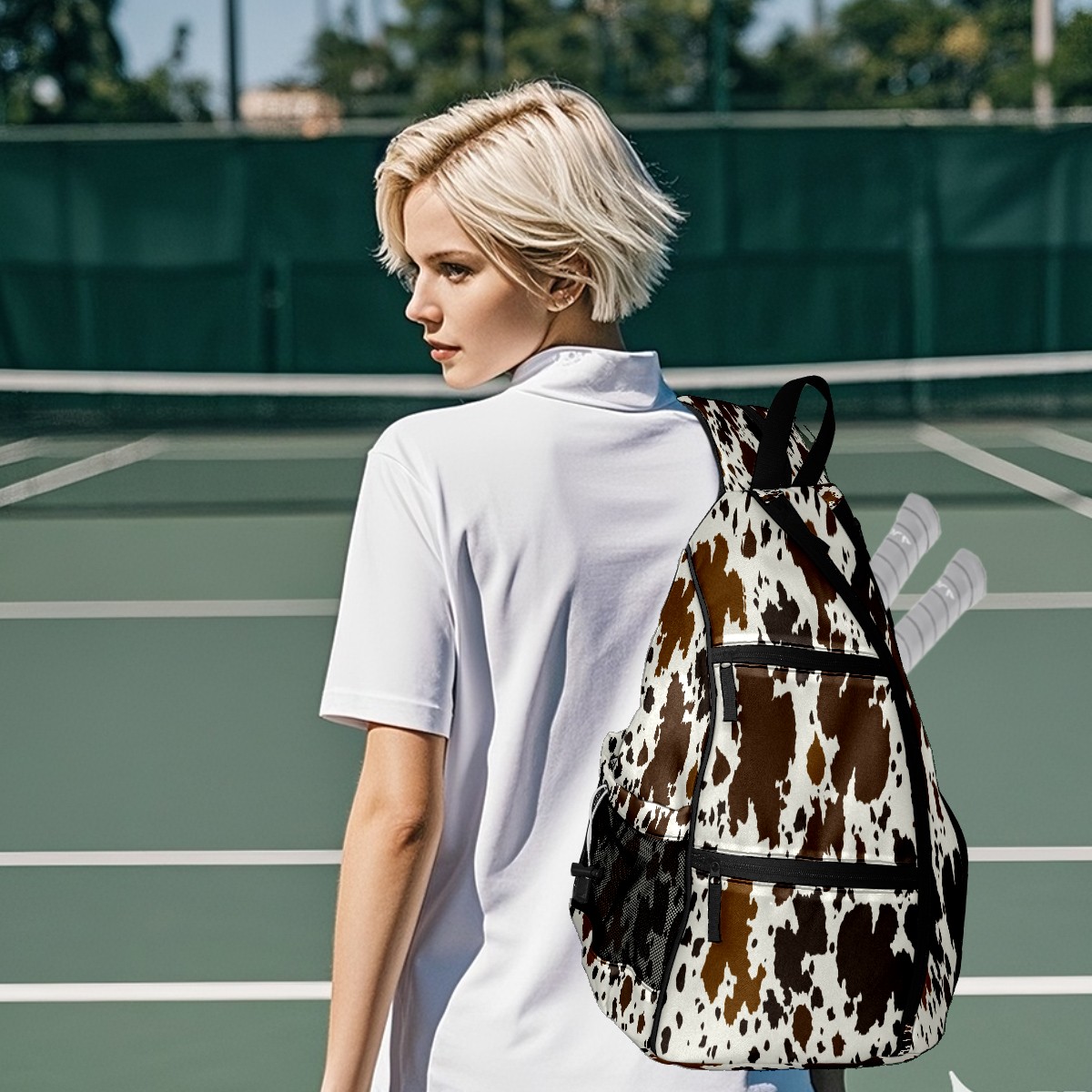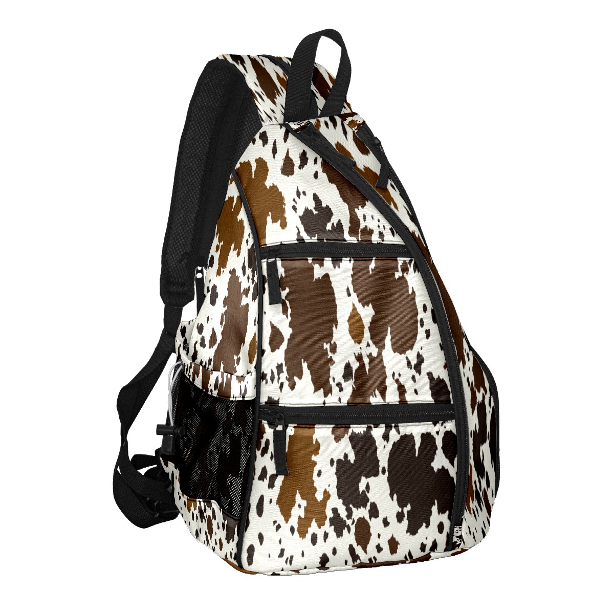 Print Pickleball Backpack Western Brown Black Cow Print | Padded 6-Paddle Compartment & Separate Shoe Bag | Multi-Pocket Sports & Gym Backpack for Tennis, Travel, Commute