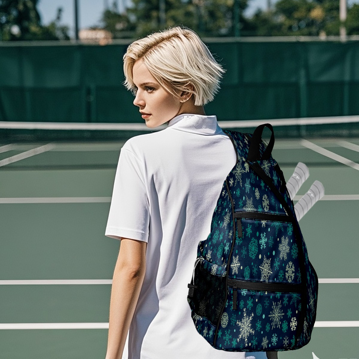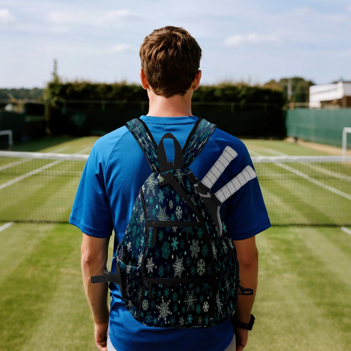 Print Pickleball Backpack Snowflakes | Padded 6-Paddle Compartment & Separate Shoe Bag | Multi-Pocket Sports & Gym Backpack for Tennis, Travel, Commute