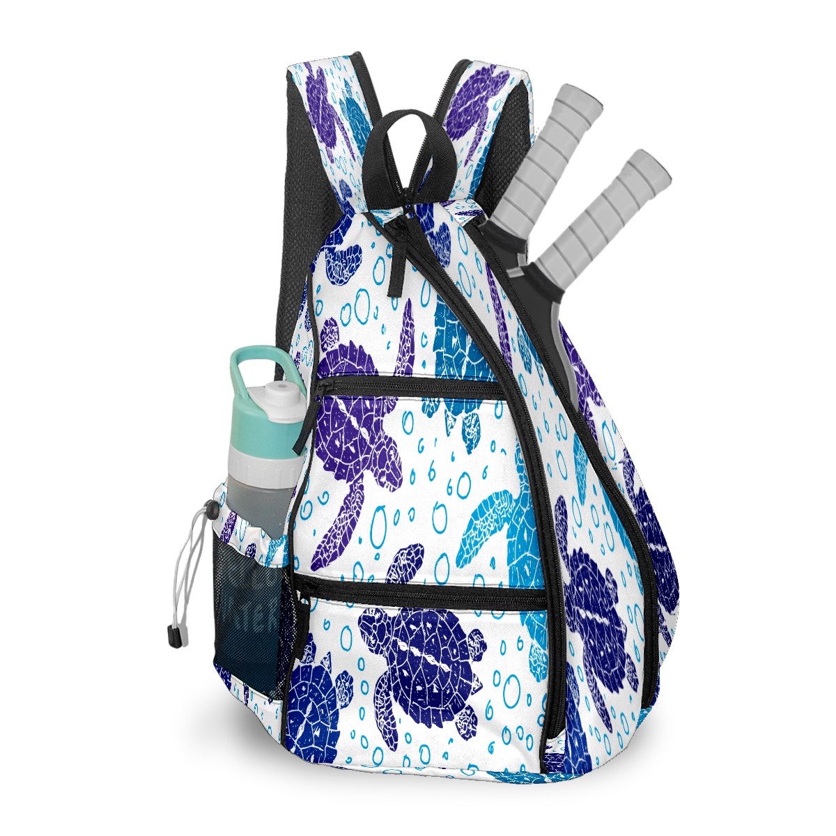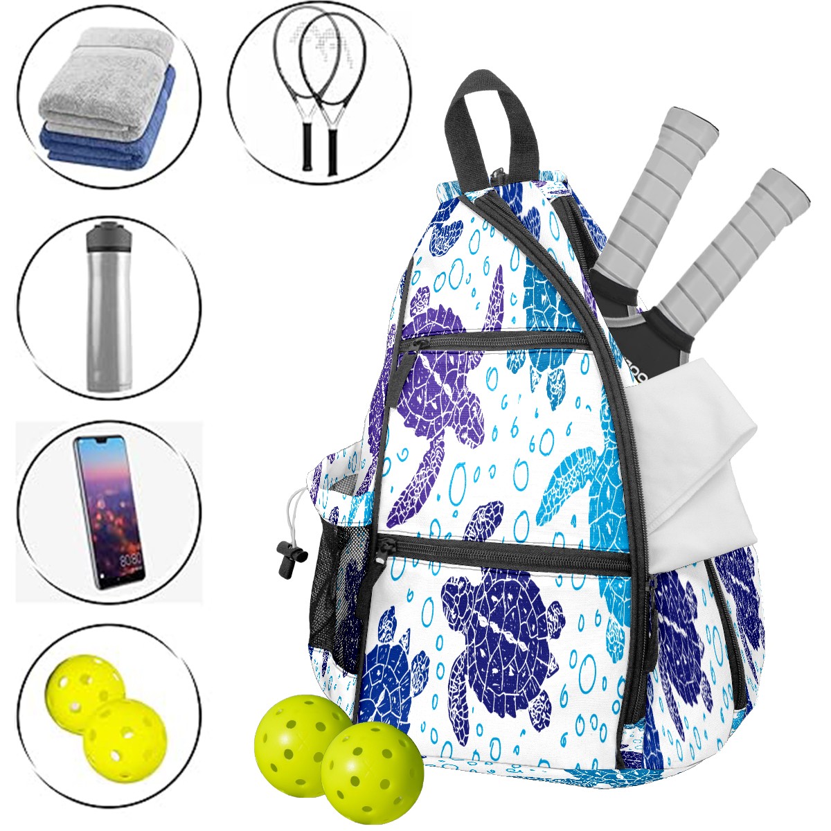 Print Pickleball Backpack Cute Hand Drawn Turtles | Padded 6-Paddle Compartment & Separate Shoe Bag | Multi-Pocket Sports & Gym Backpack for Tennis, Travel, Commute