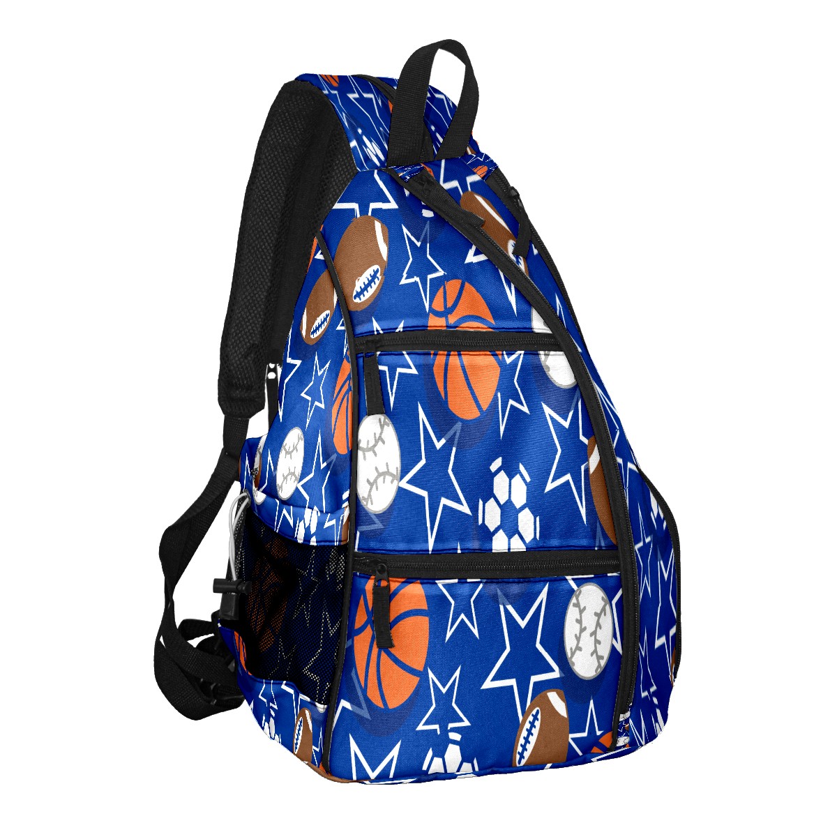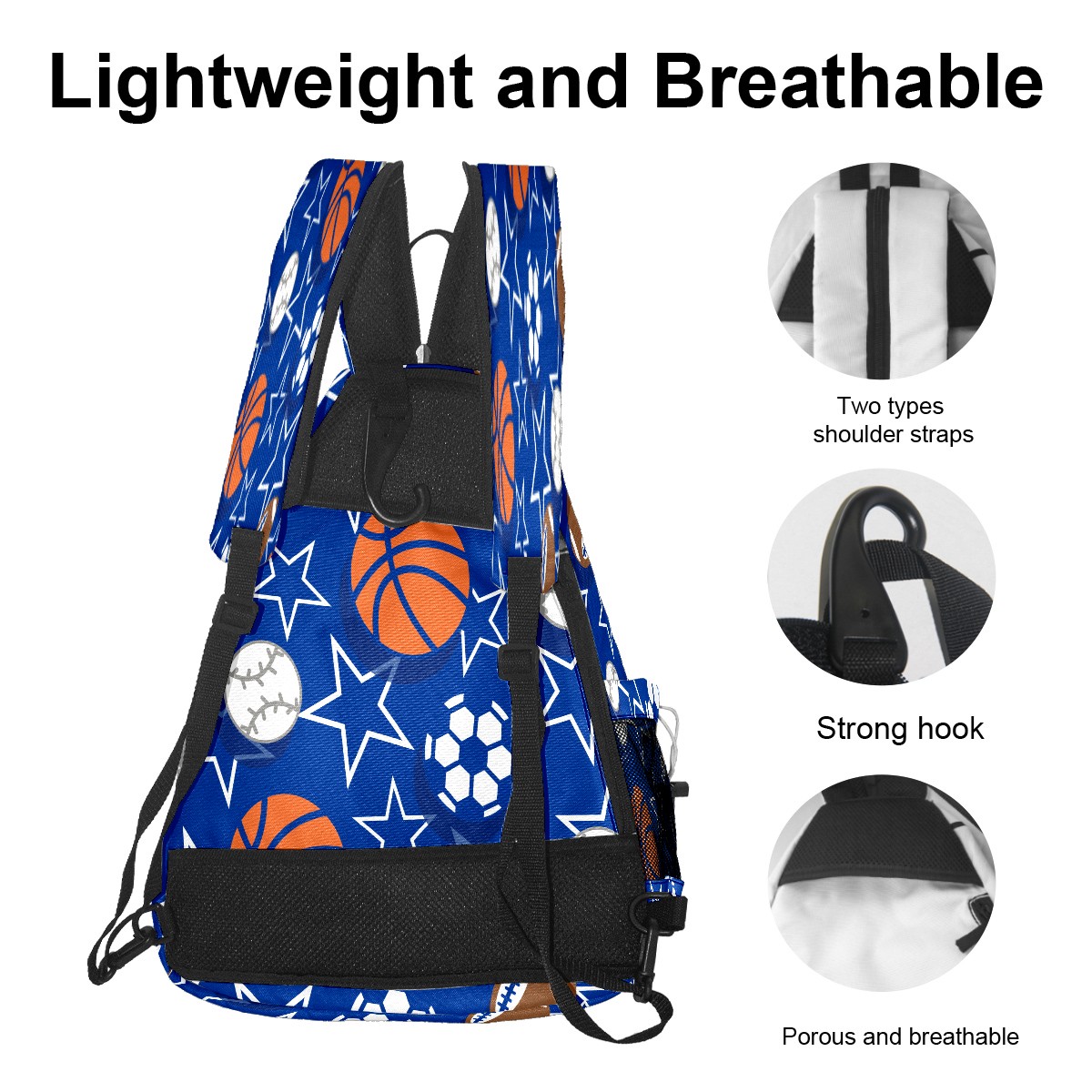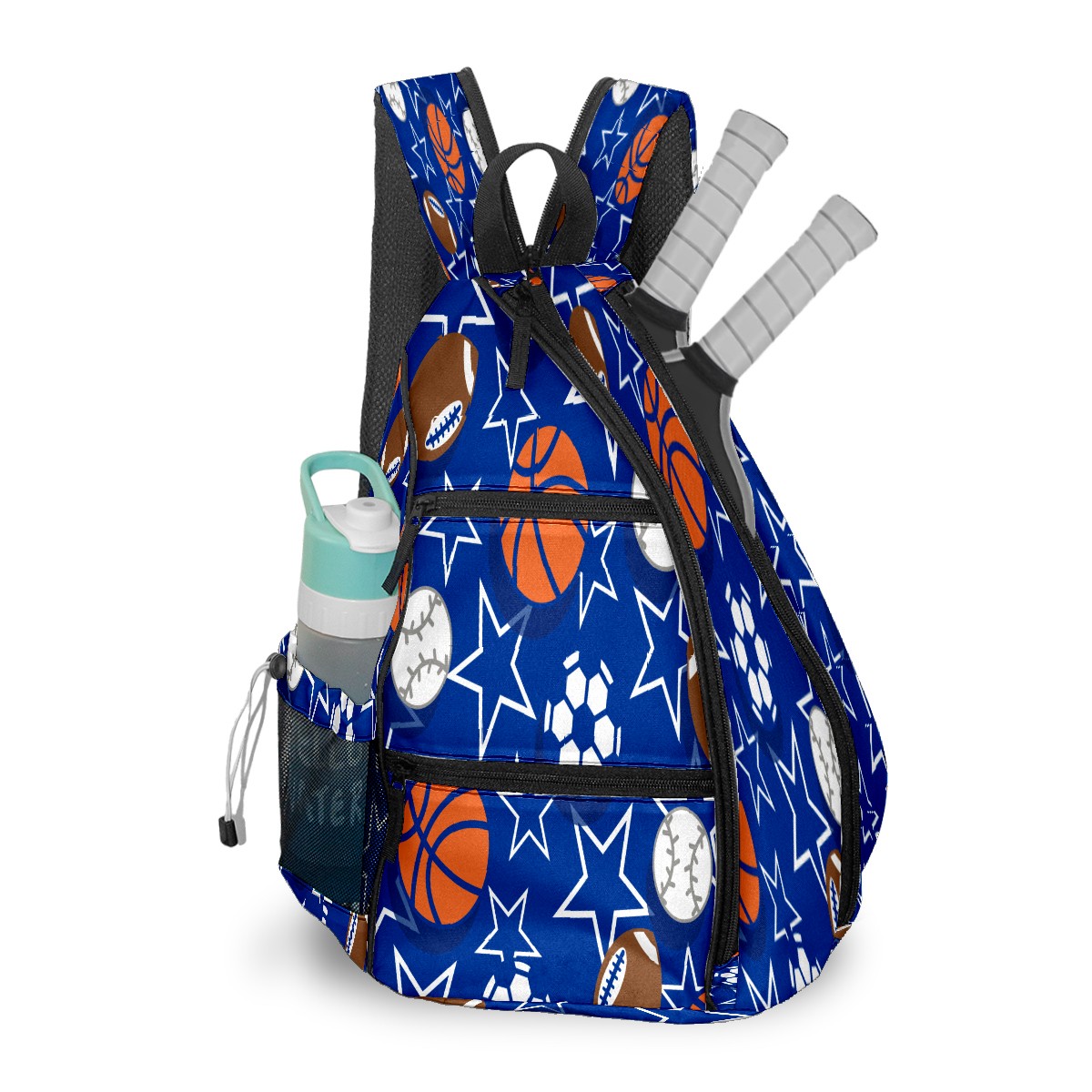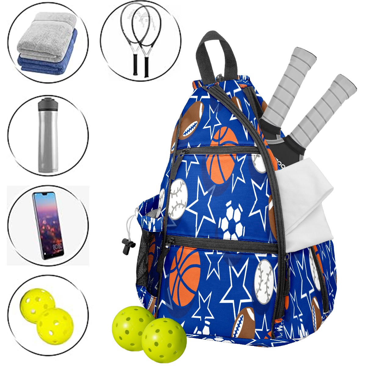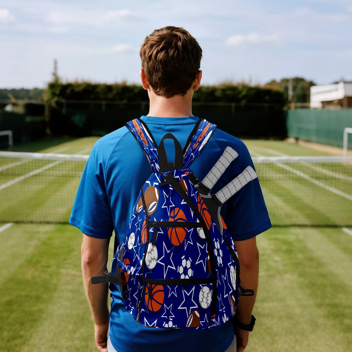 Print Pickleball Backpack Sport Basketball Baseball Soccer Star Blue | Padded 6-Paddle Compartment & Separate Shoe Bag | Multi-Pocket Sports & Gym Backpack for Tennis, Travel, Commute