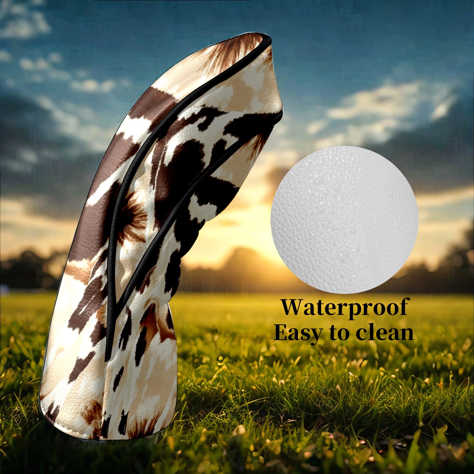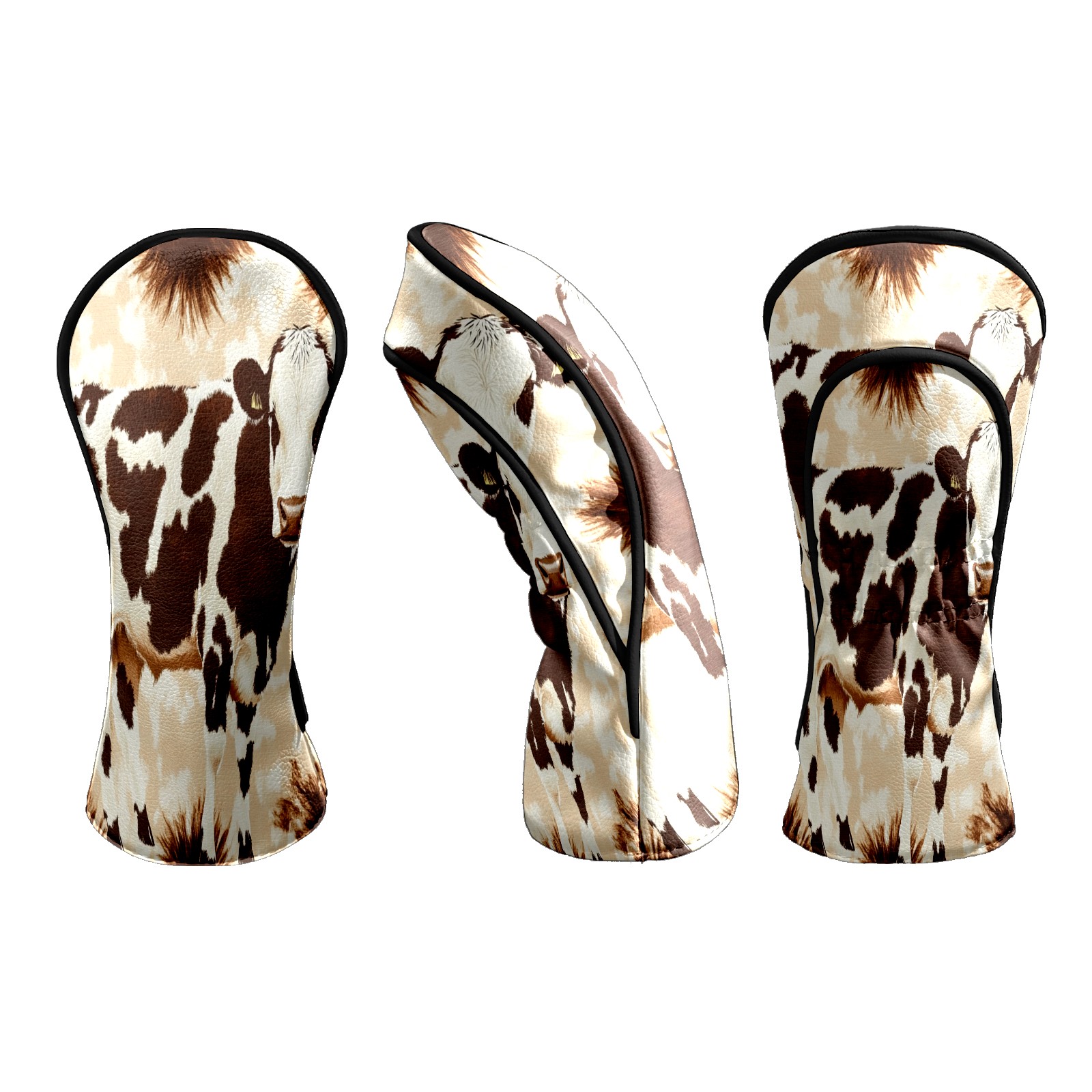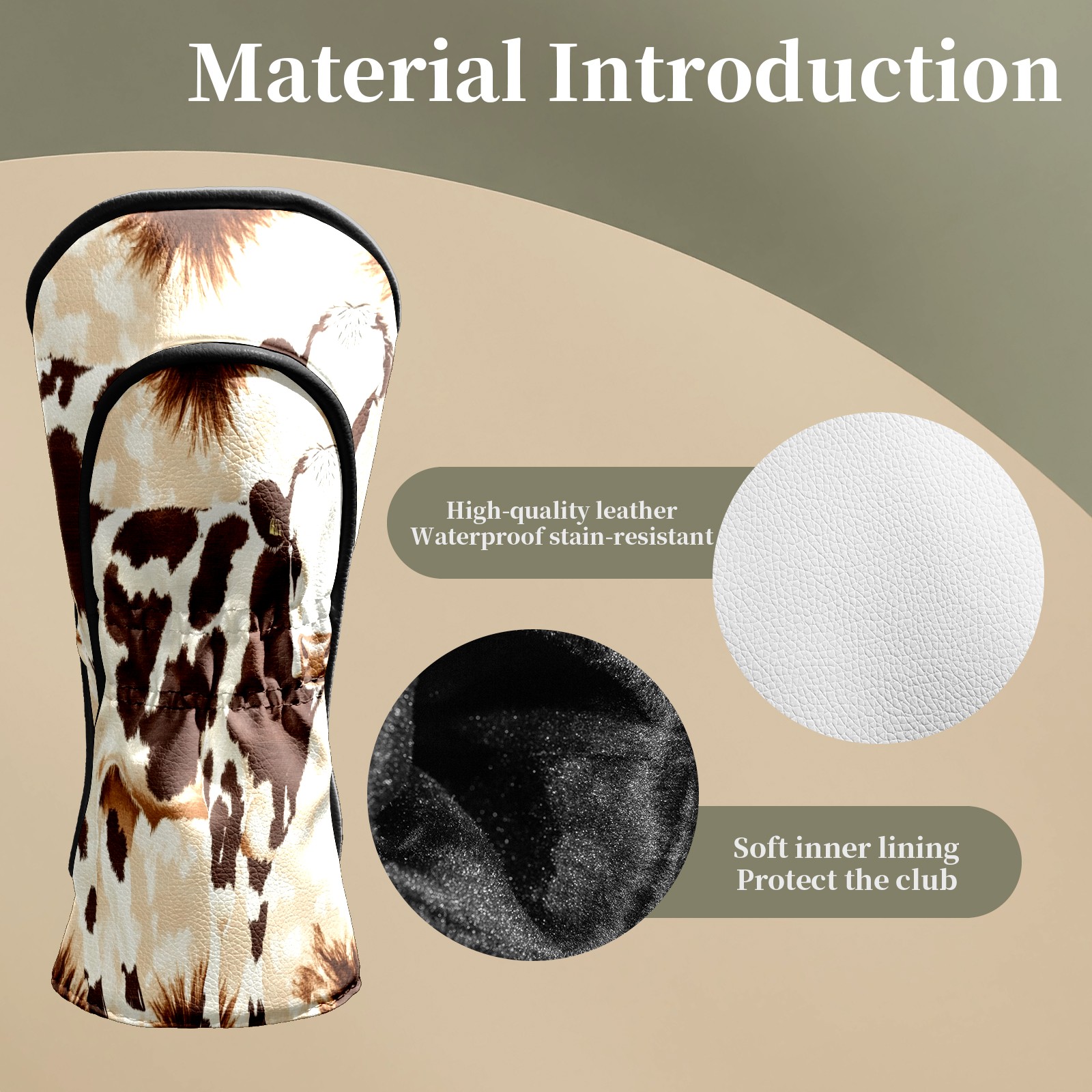 Golf Club Head Covers Cow Pattern Waterproof Leather Golf Head Covers for Men Women Driver Head Cover Fairway Headcover for Golf Lovers