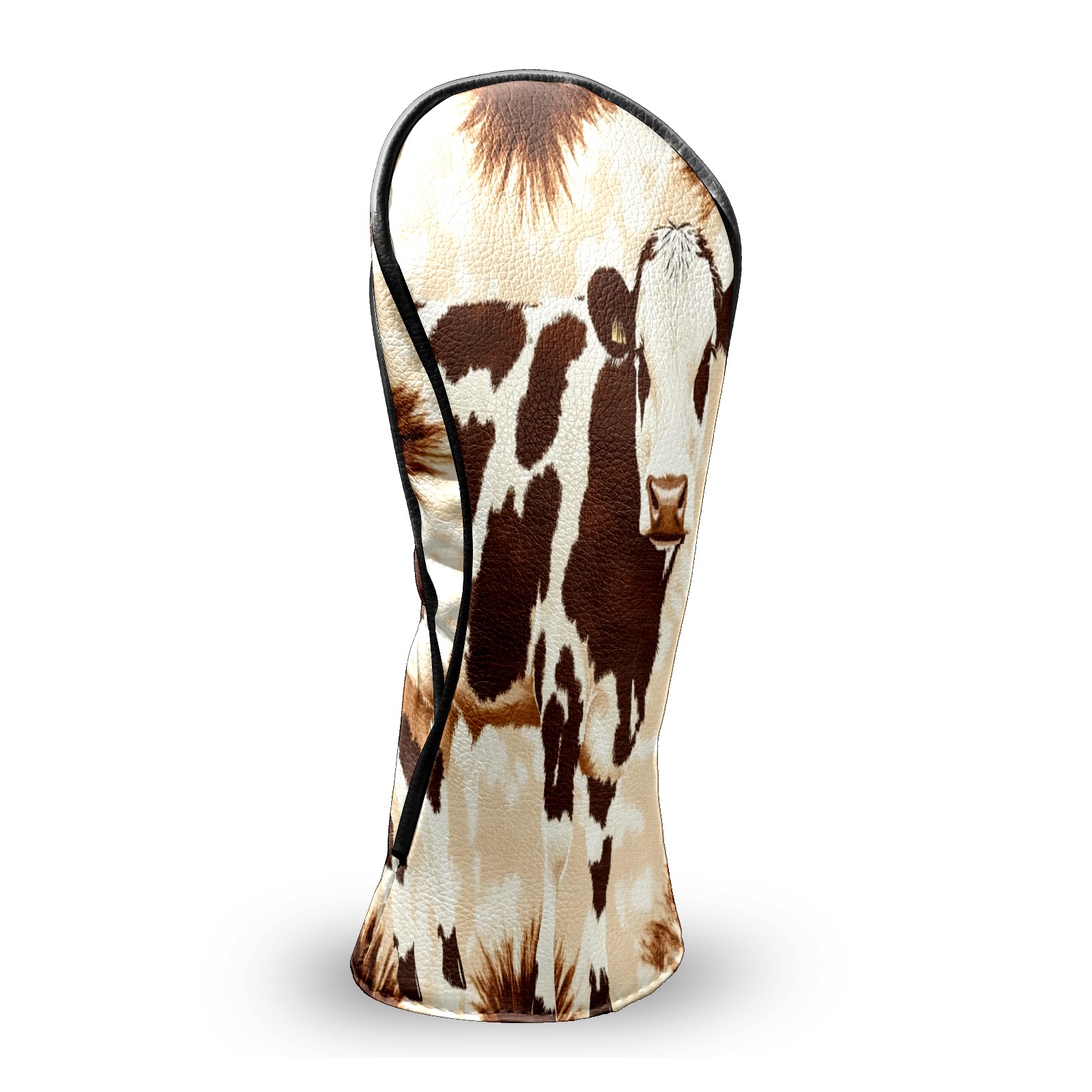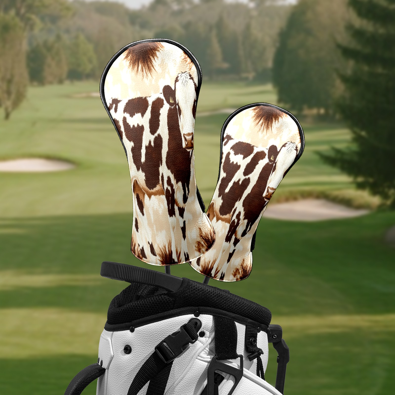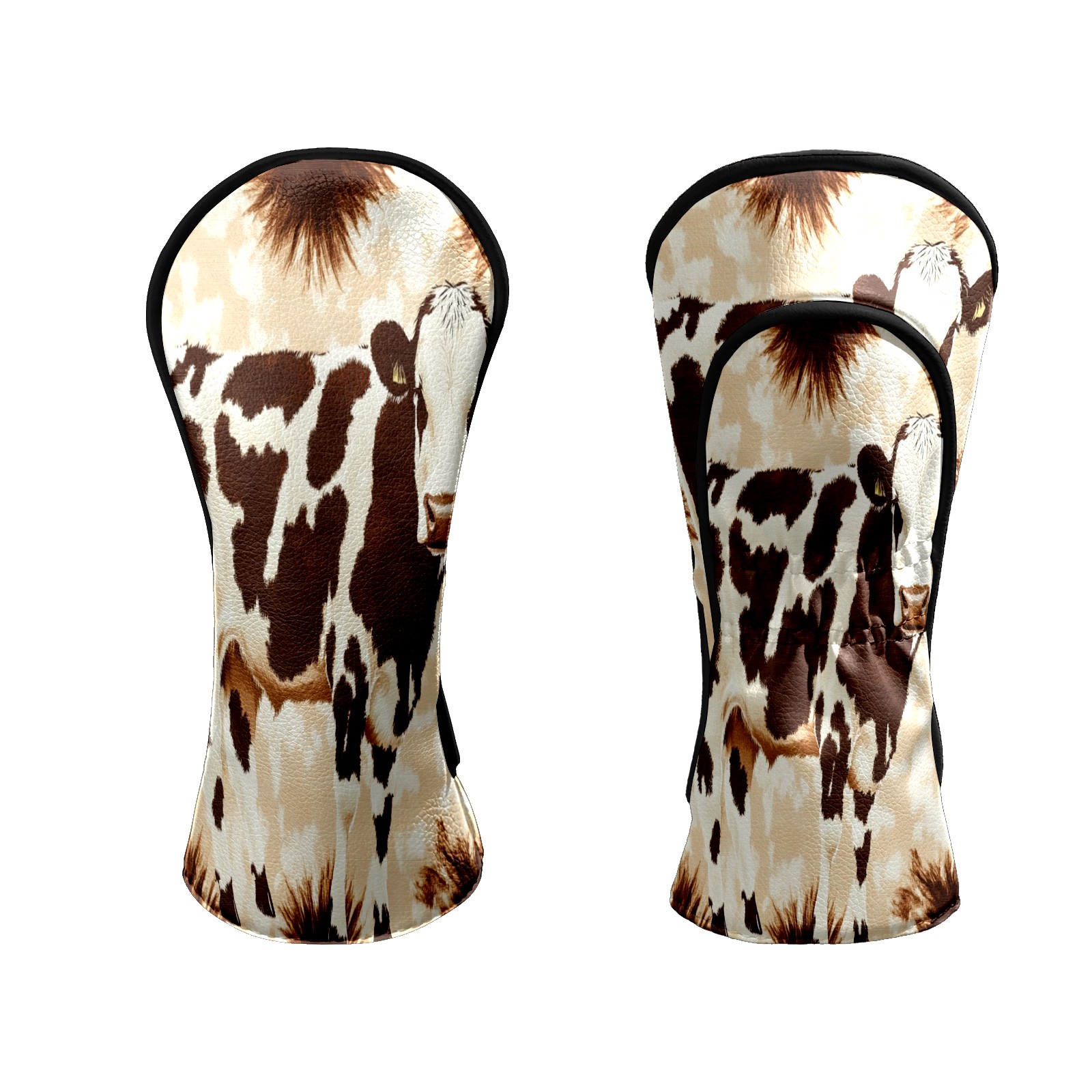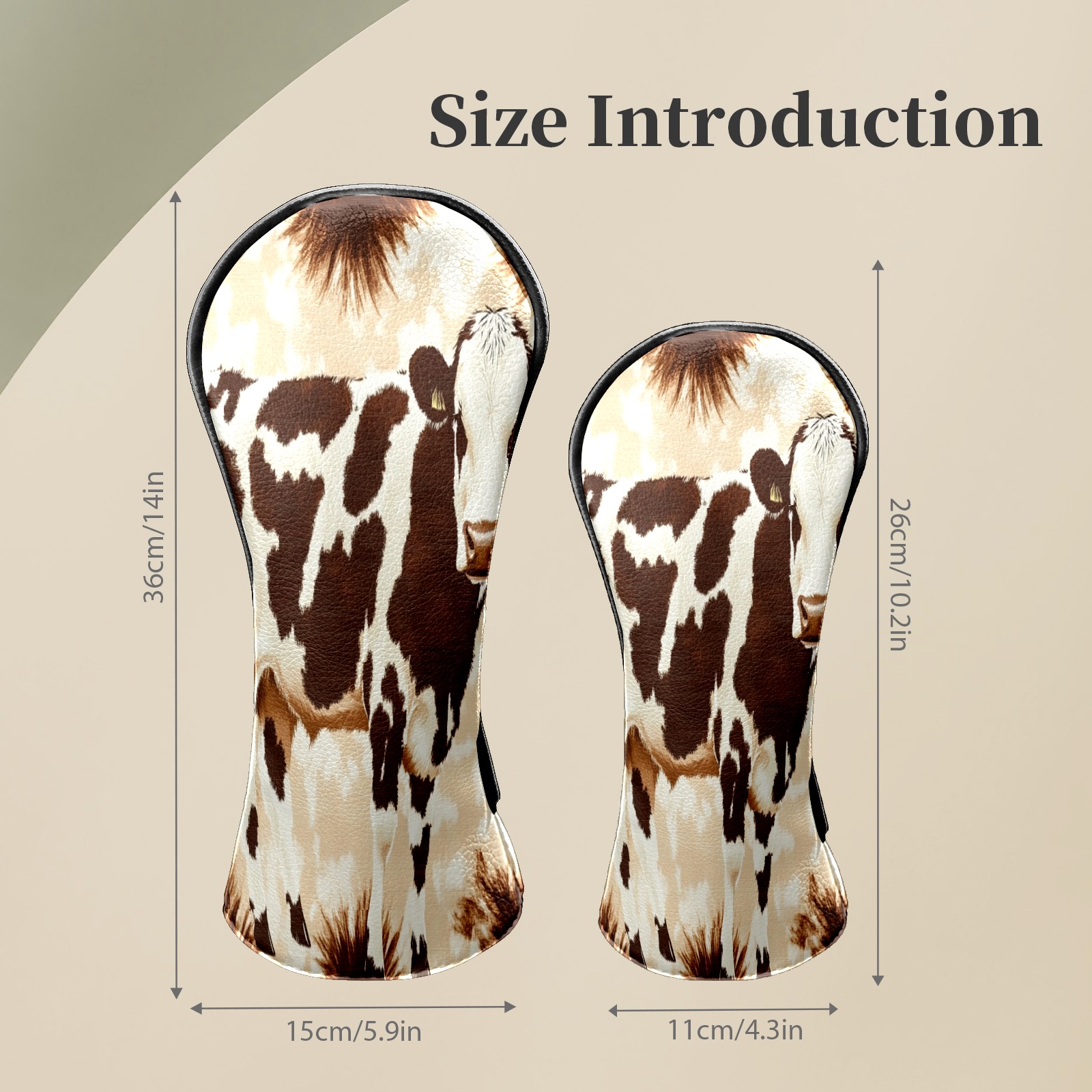 Golf Club Head Covers Cow Pattern Waterproof Leather Golf Head Covers for Men Women Driver Head Cover Fairway Headcover for Golf Lovers