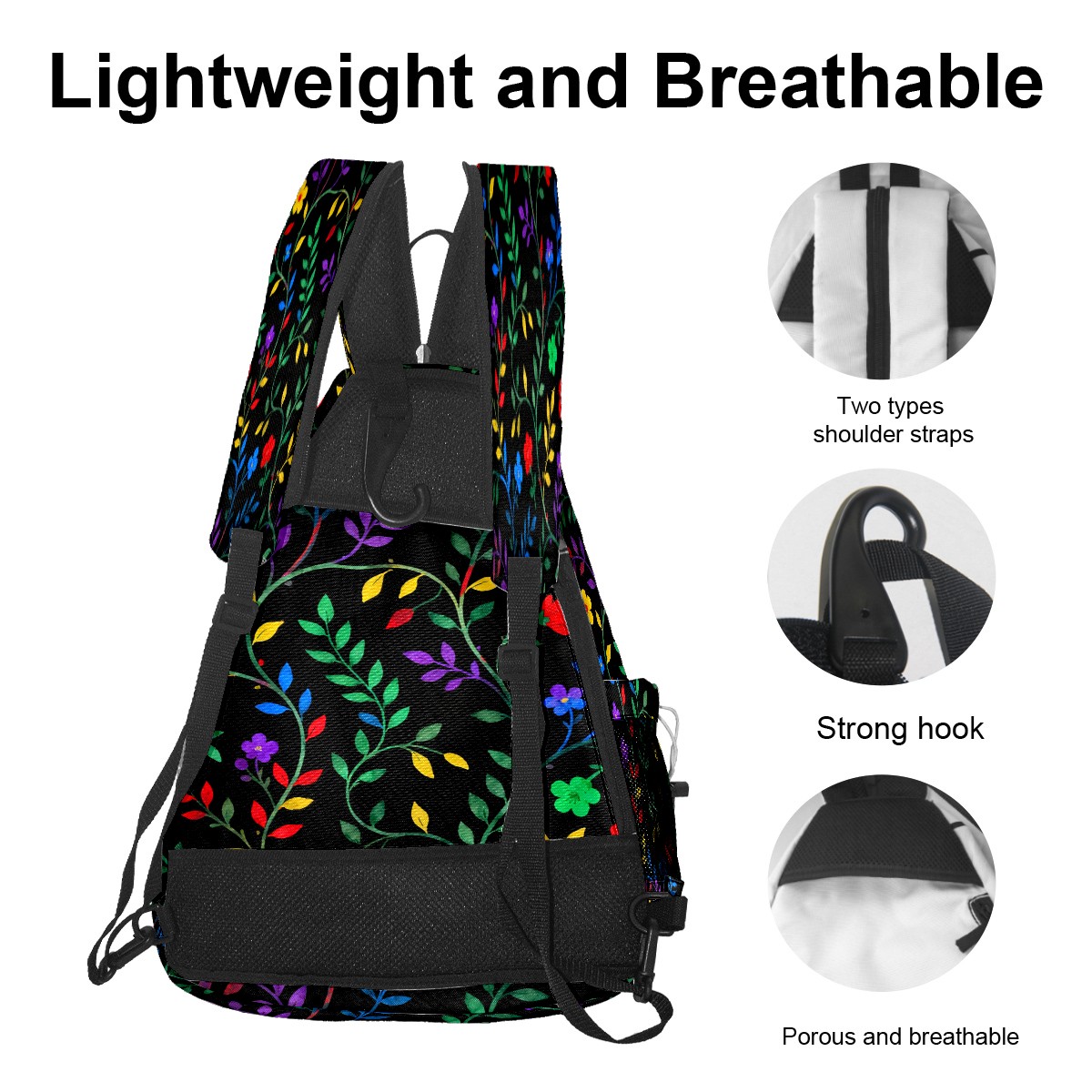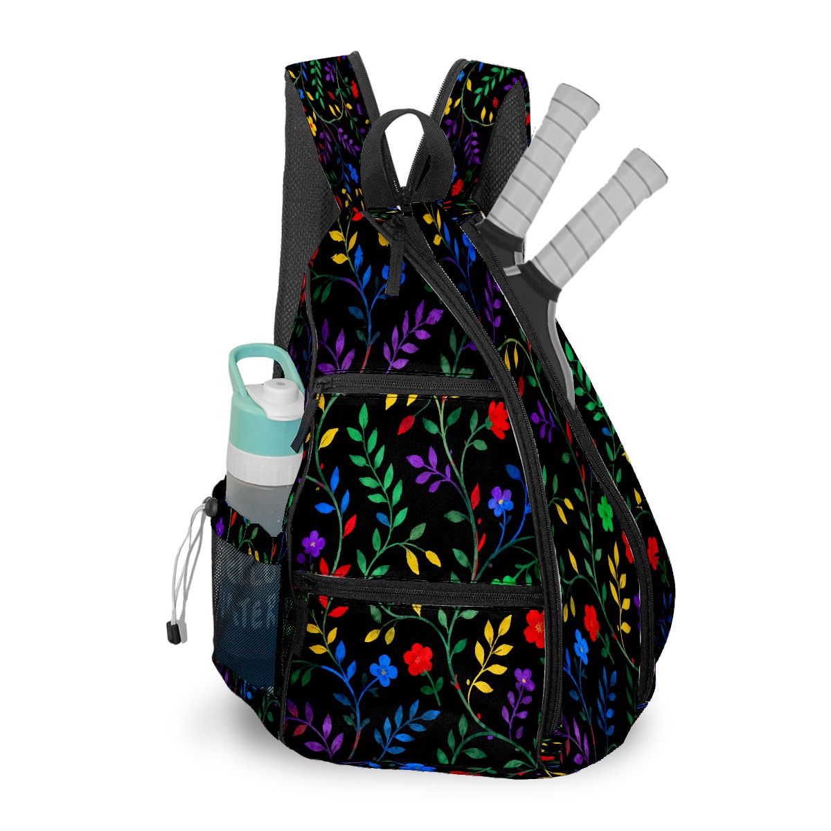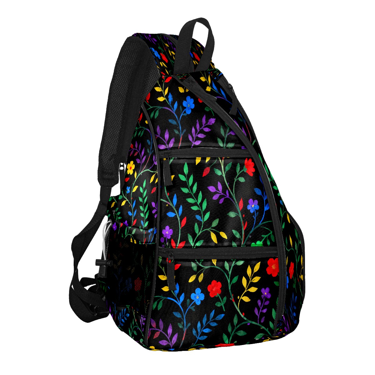 Pickleball Sling Bag for Women and Men - Backpack with Nylon Fabric/Woven Strap/Mesh Pocket/Fence Hook/Small Capacity/Adjustable Sling Bag Branch And Leaf Floral Pattern