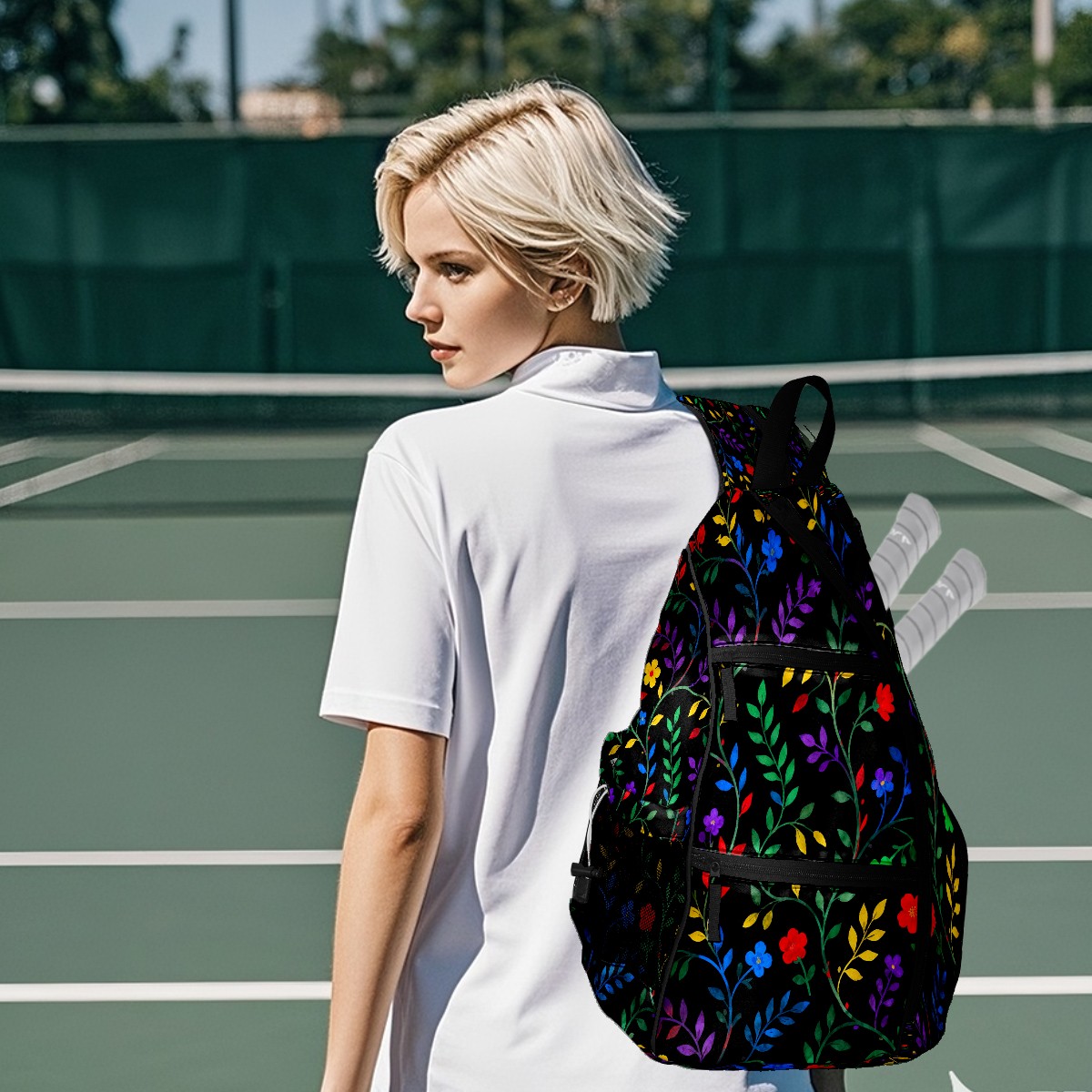 • <p>Pickleball Bag | From “Equipment Chaos” to “One Bag to Rule Them All” — A Revolution on the Court</p> <p>The Origin: Every time we bent down to pick up scattered rackets, balls, and water bottles, we silently vowed — we had to create a pickleball bag that could “cure laziness”!</p> <p>✨ 5 Core Features, Designed for Pickleball Players</p> <p>✅ Durable Construction: Wear-resistant nylon + reinforced woven straps + breathable mesh pockets withstand the “brutal tests” of dropping rackets and dragging on the ground; the mesh pockets also allow wet towels to “breathe”;</p> <p>✅ Spacious storage: 15×35×45cm golden dimensions, easily accommodating 2 racquets + 10 balls + water bottle + spare clothes, saying goodbye to the awkwardness of “left hand holding the racquet, right hand chasing the ball”;</p> <p>✅ Cloud-like carrying experience: Padded back panel + air mesh shoulder straps, feel like you're being carried by a cloud while swinging your racket, no sweating even after prolonged use, no soreness after playing, keep your energy for what you love;</p> <p>✅ Transformable magic: Shoulder straps hide a “zipper mechanism,” unzip to instantly transform into a daily crossbody bag — take it straight to the mall after work, seamless transition from commuting to playing;</p> <p>✅ Bag Recognition Tool: Exclusive contrasting patterns act like a “signal flare” on the court, making your bag stand out in a crowd. No more worries about grabbing the wrong one!</p> <p>Starting with solving your own problems, we hope this bag will accompany you in swinging your racket with abandon, leaving all your energy for what you love!</p>