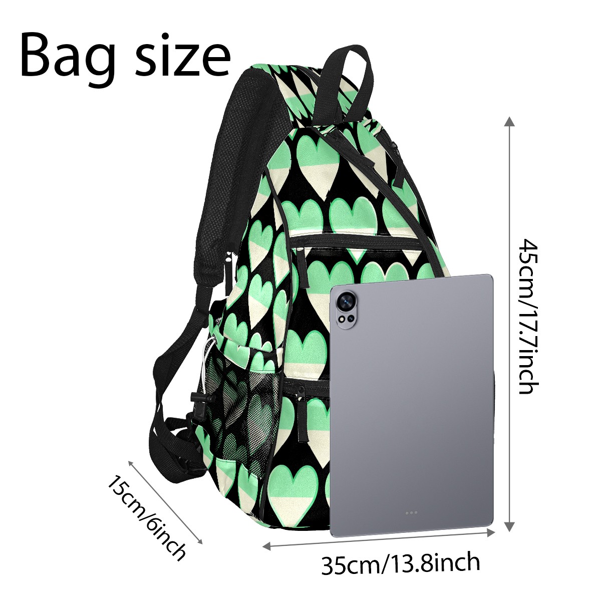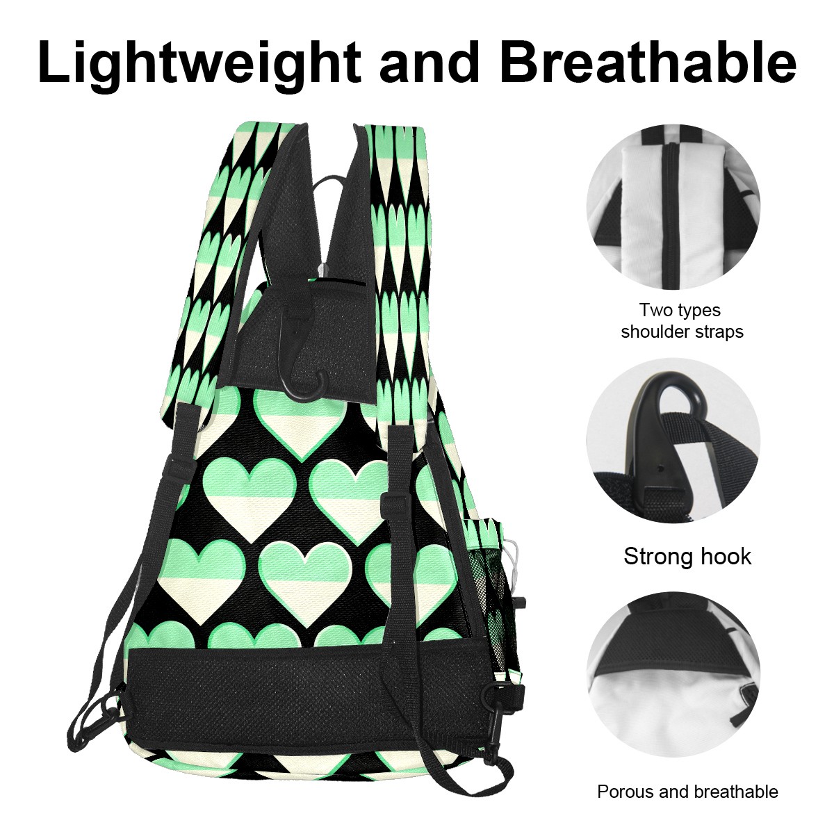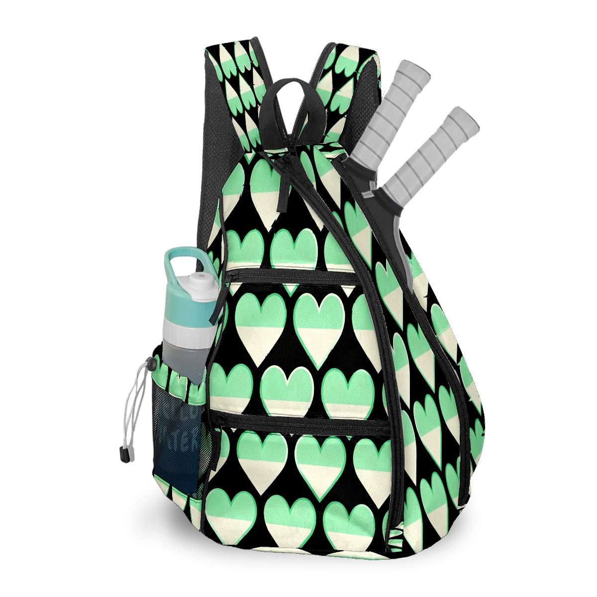 Pickleball Sling Bag for Women and Men - Backpack with Nylon Fabric/Woven Strap/Mesh Pocket/Fence Hook/Small Capacity/Adjustable Sling Bag Green Heart Pattern